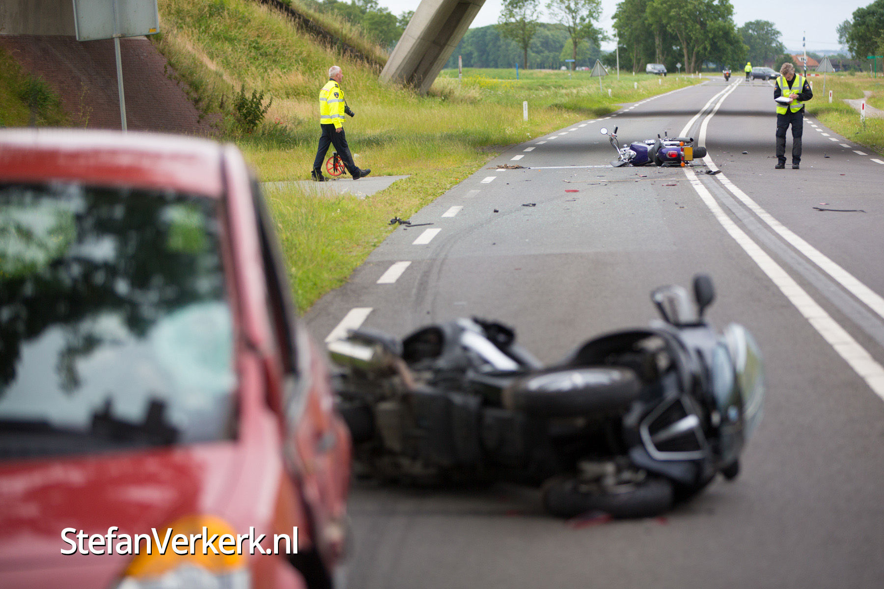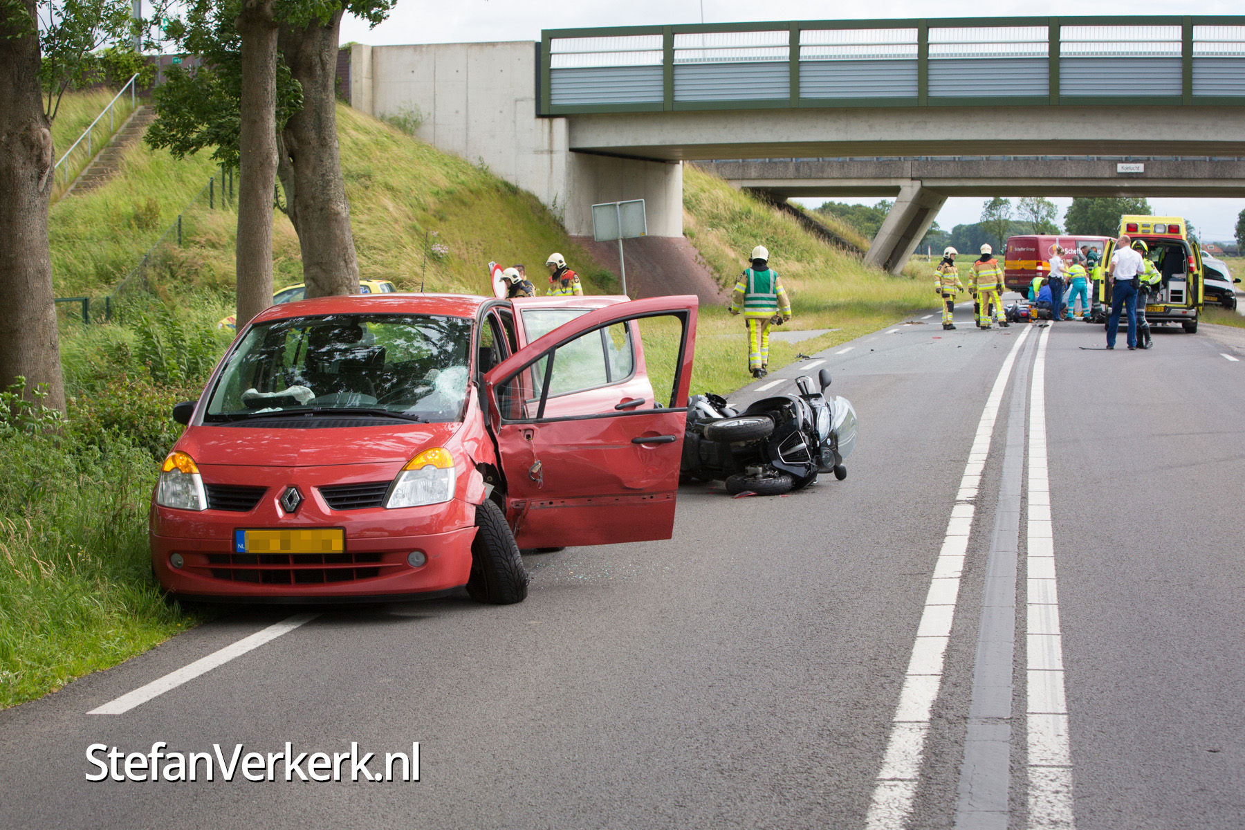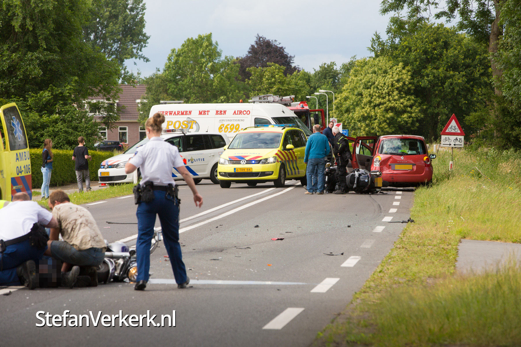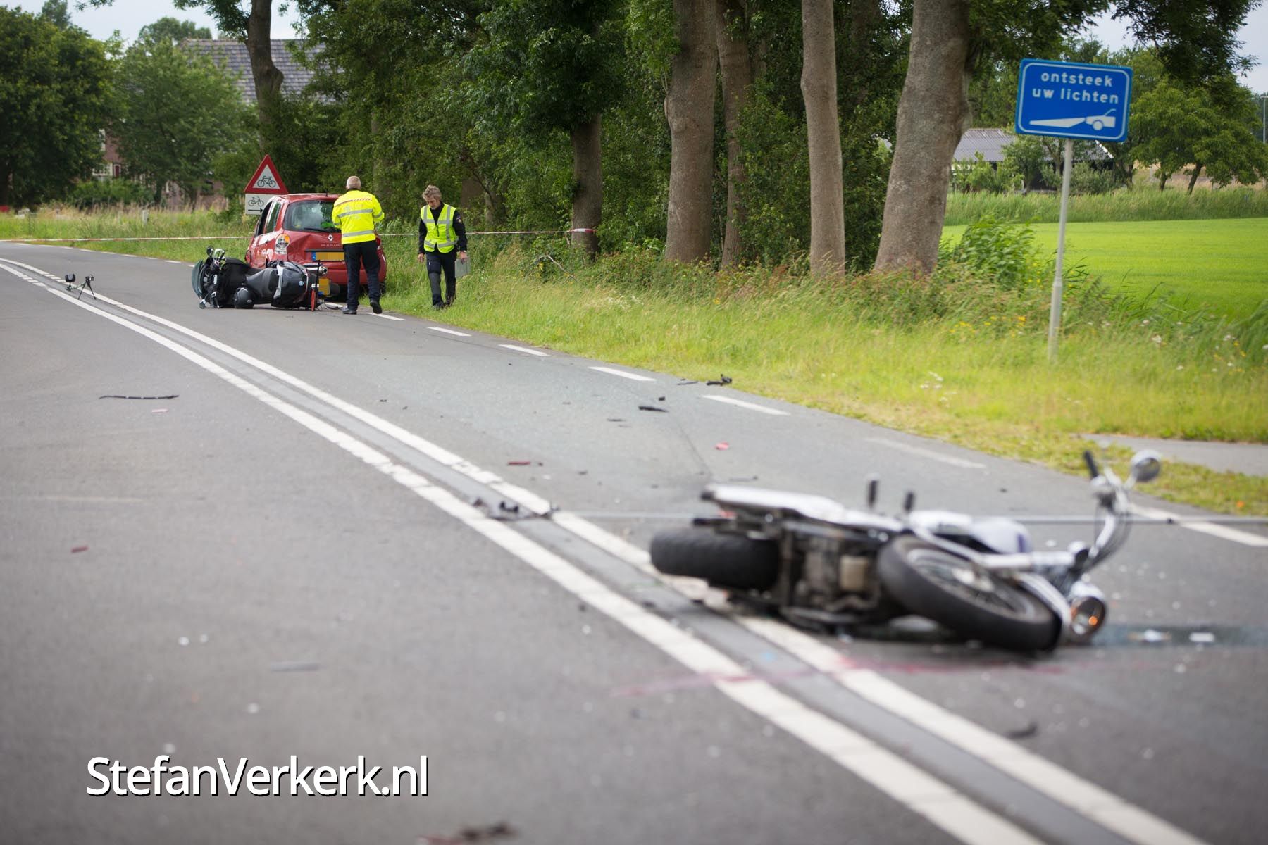 Foto's: Ernstig ongeval motoren en personenauto Kamperveen