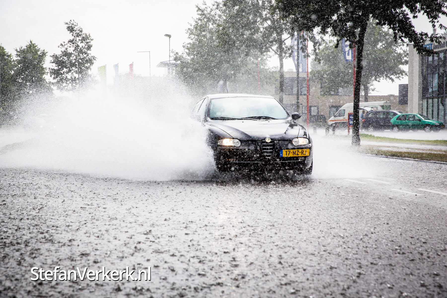 | Nieuwsbericht: | Ondergelopen straten door hoosbui boven Wezep |