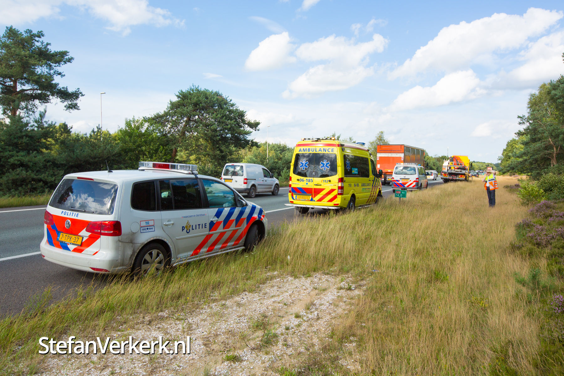 Foto's: Kopstaart aanrijding A28 R 74,0 Wezep