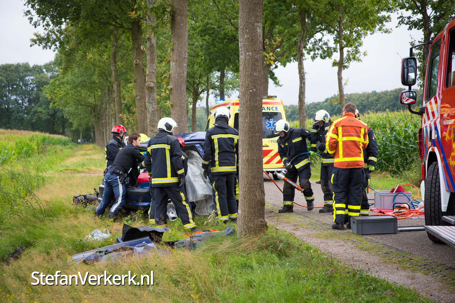 Foto's: Ernstig ongeval auto tegen boom Haerderweg Doornspijk