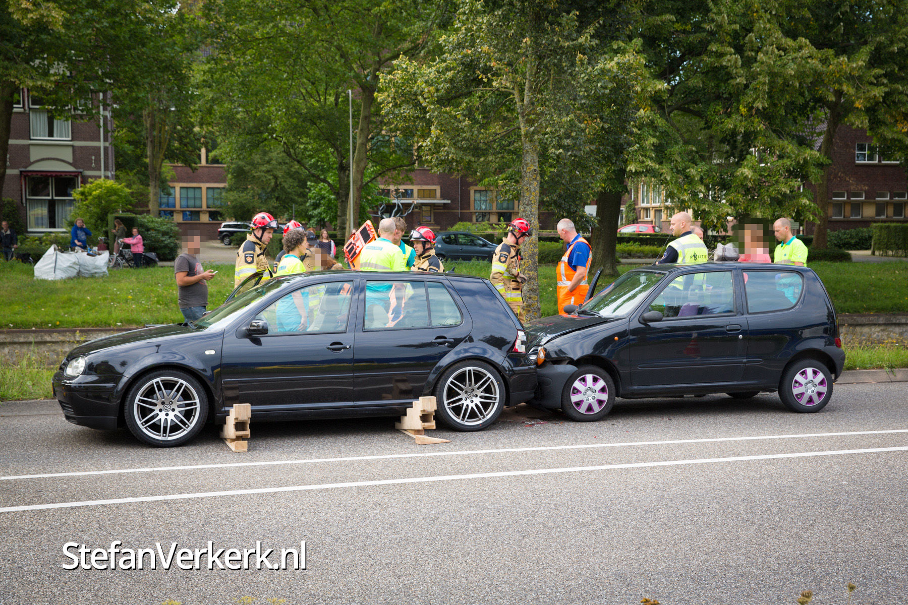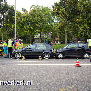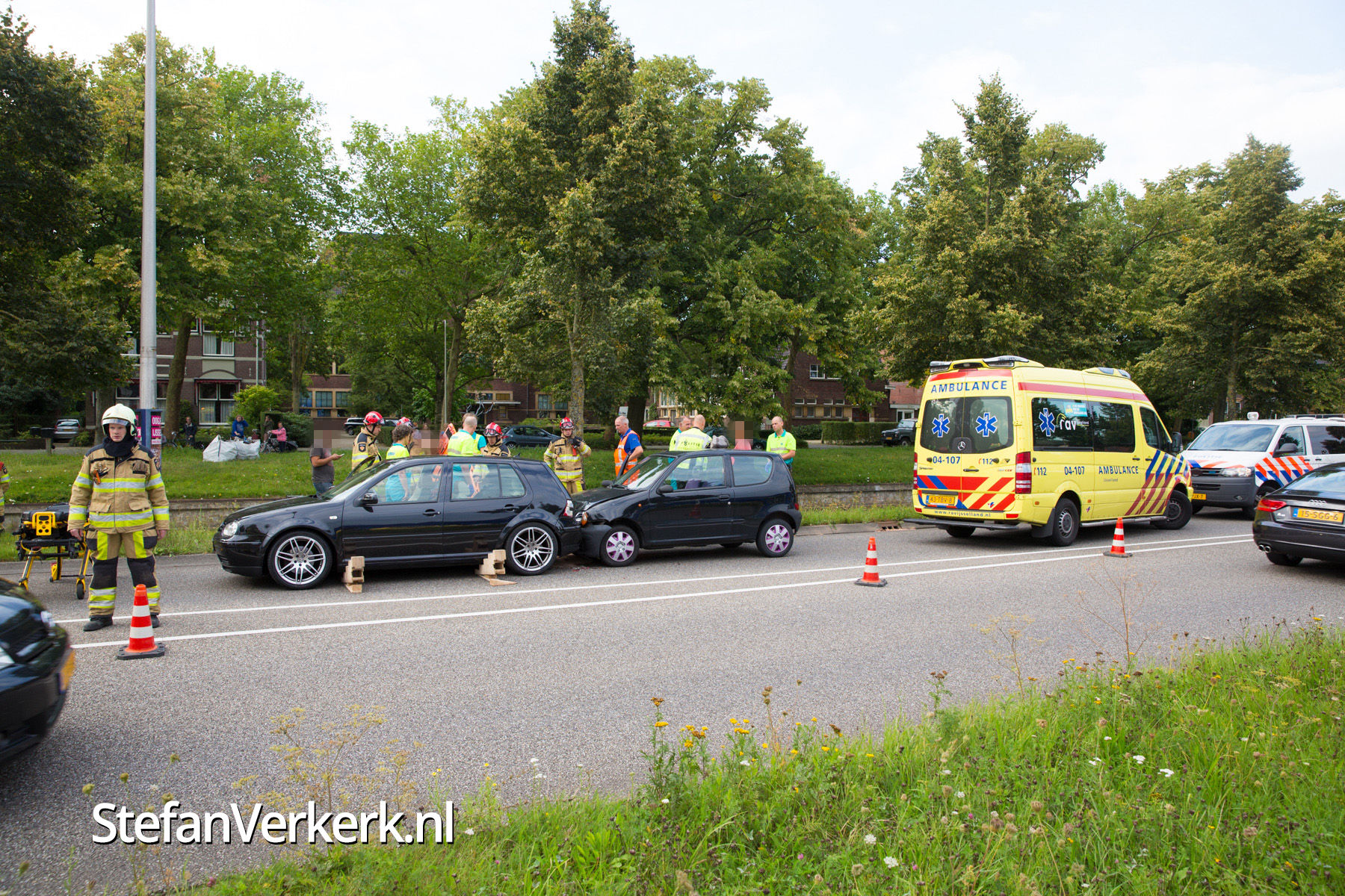Foto's: Twee gewonden bij kopstaart aanrijding Nieuwe Veerallee Zwolle