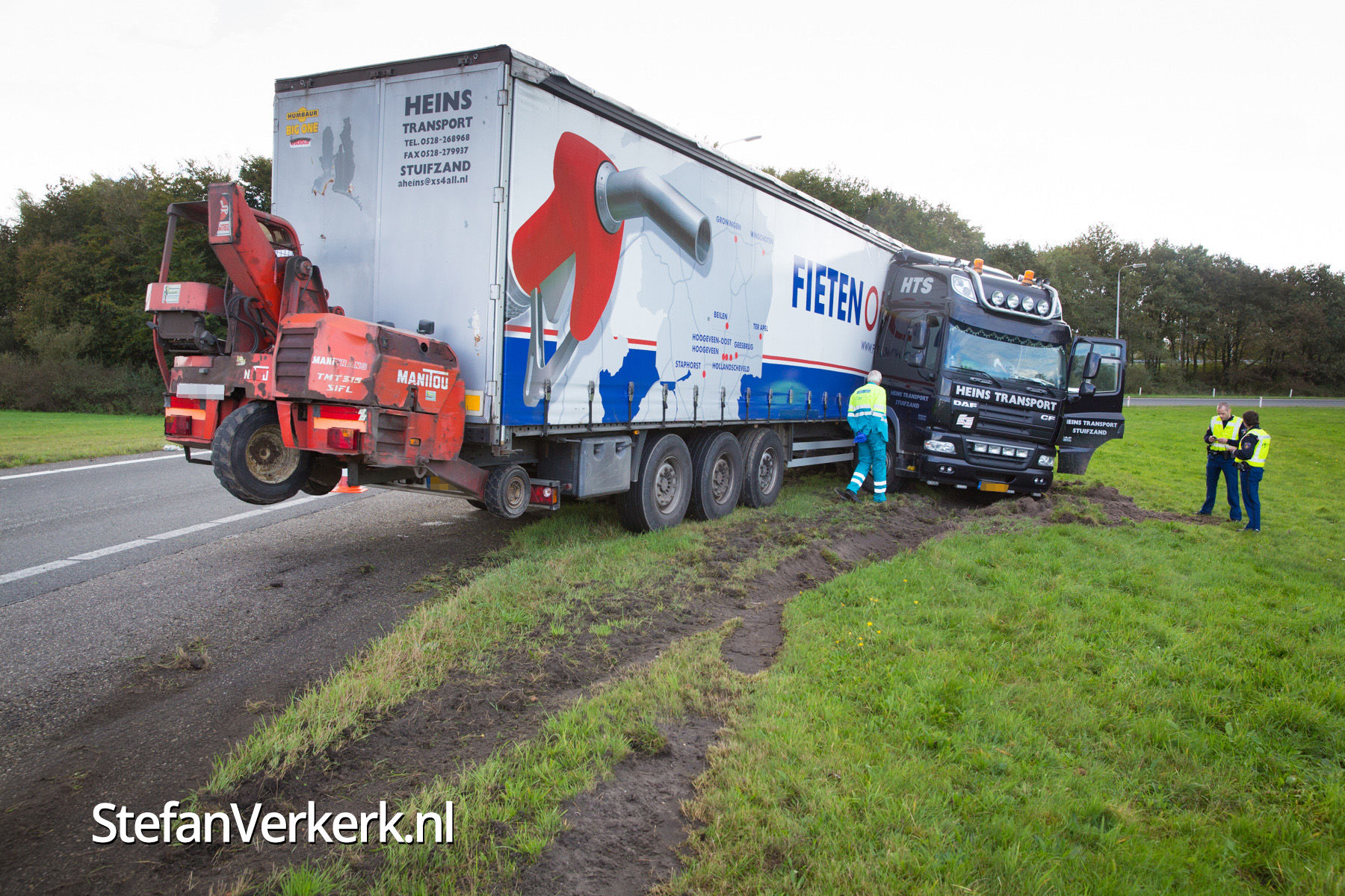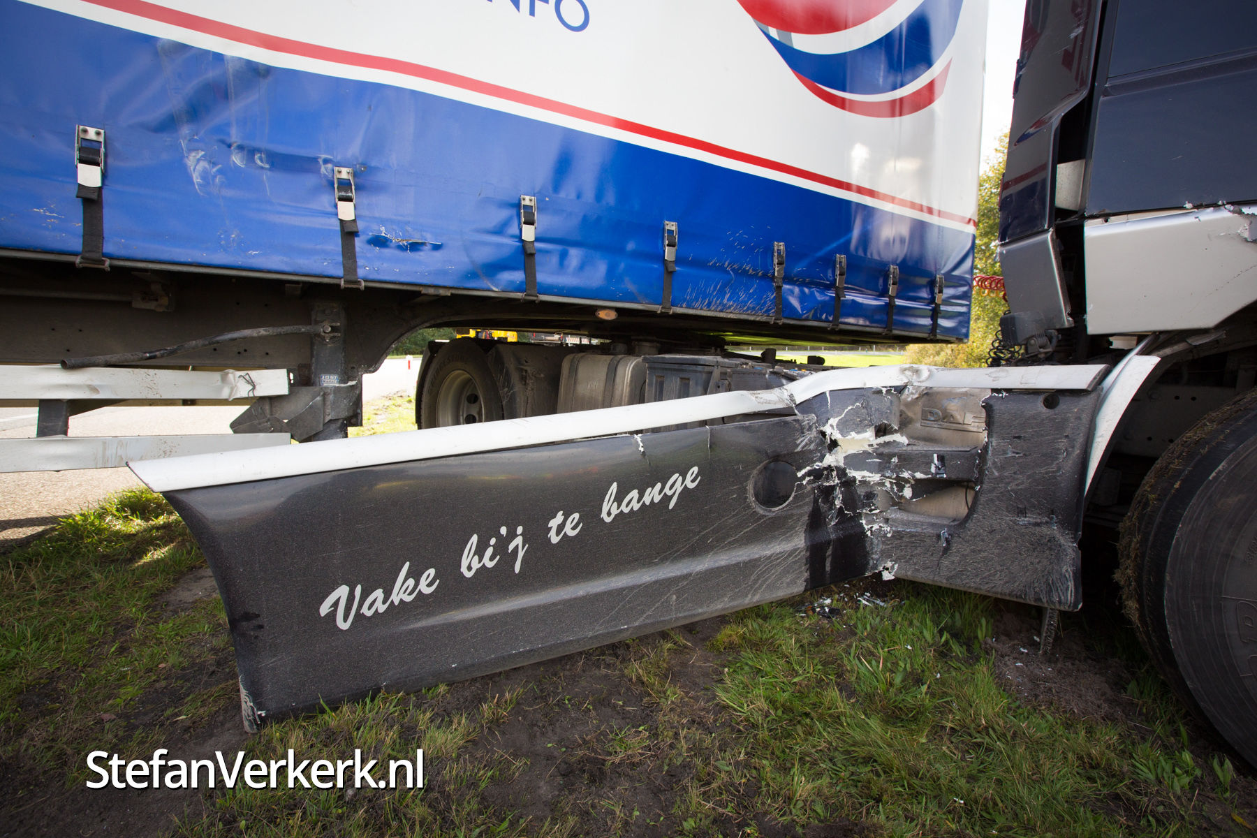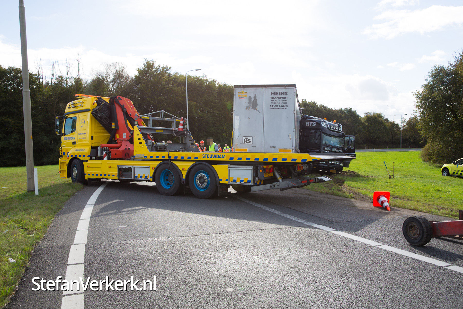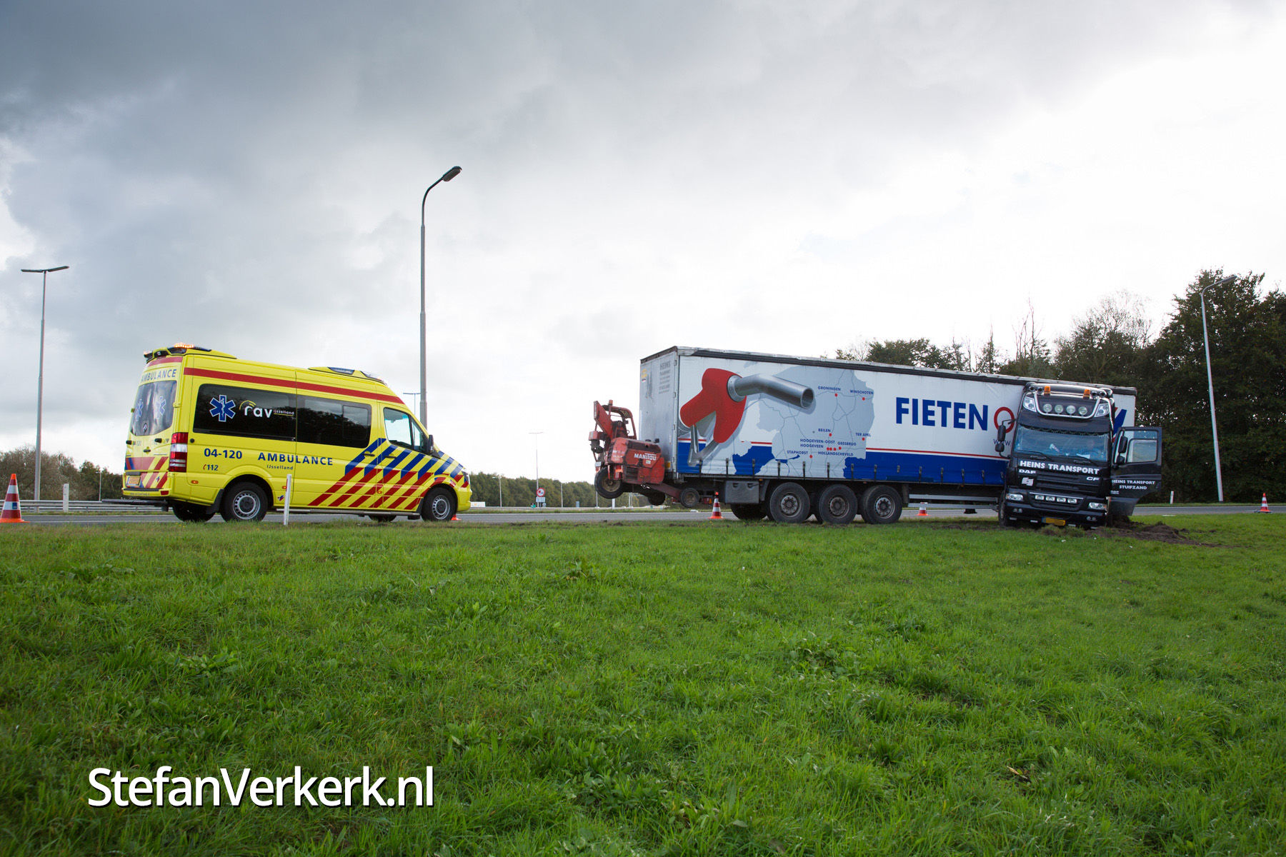 Foto's: Vrachtwagen geschaard op knooppunt Hattemerbroek