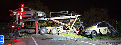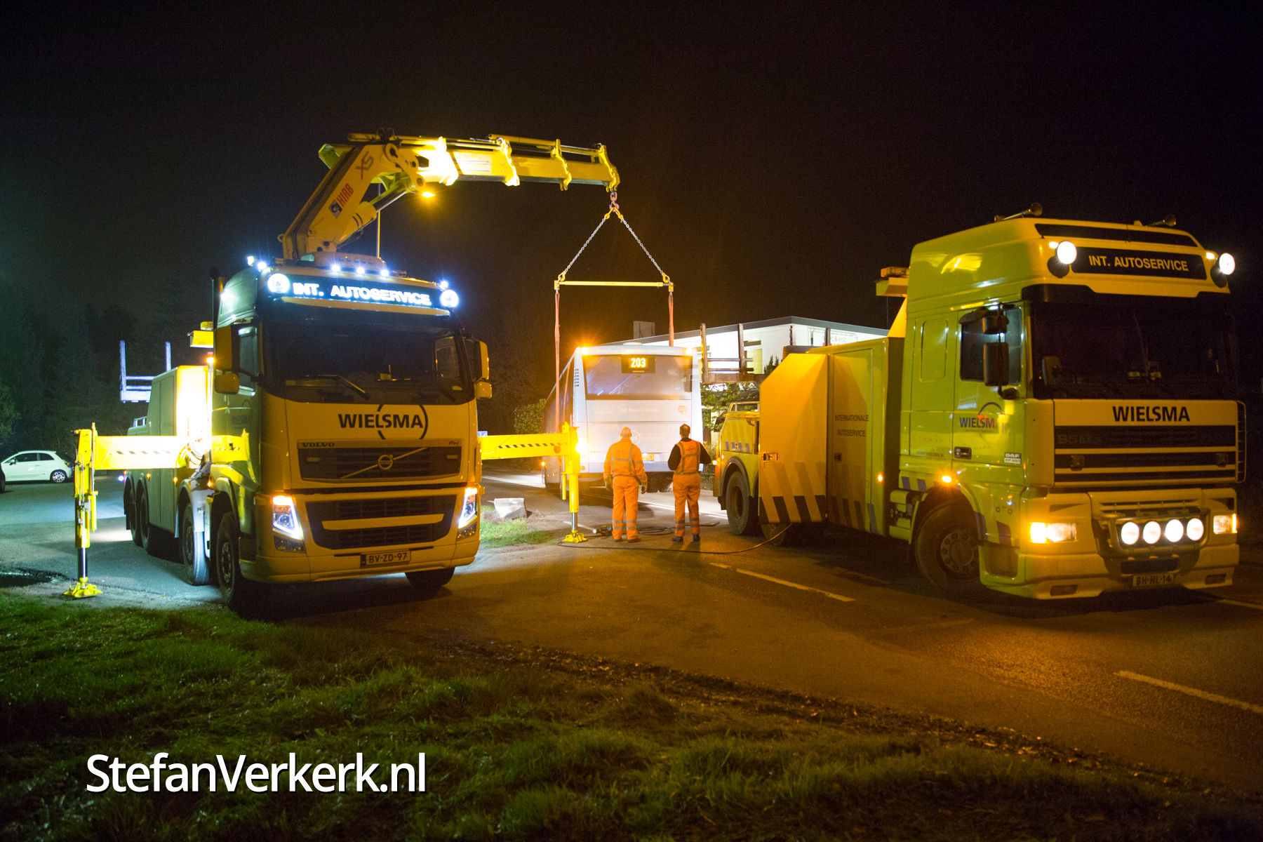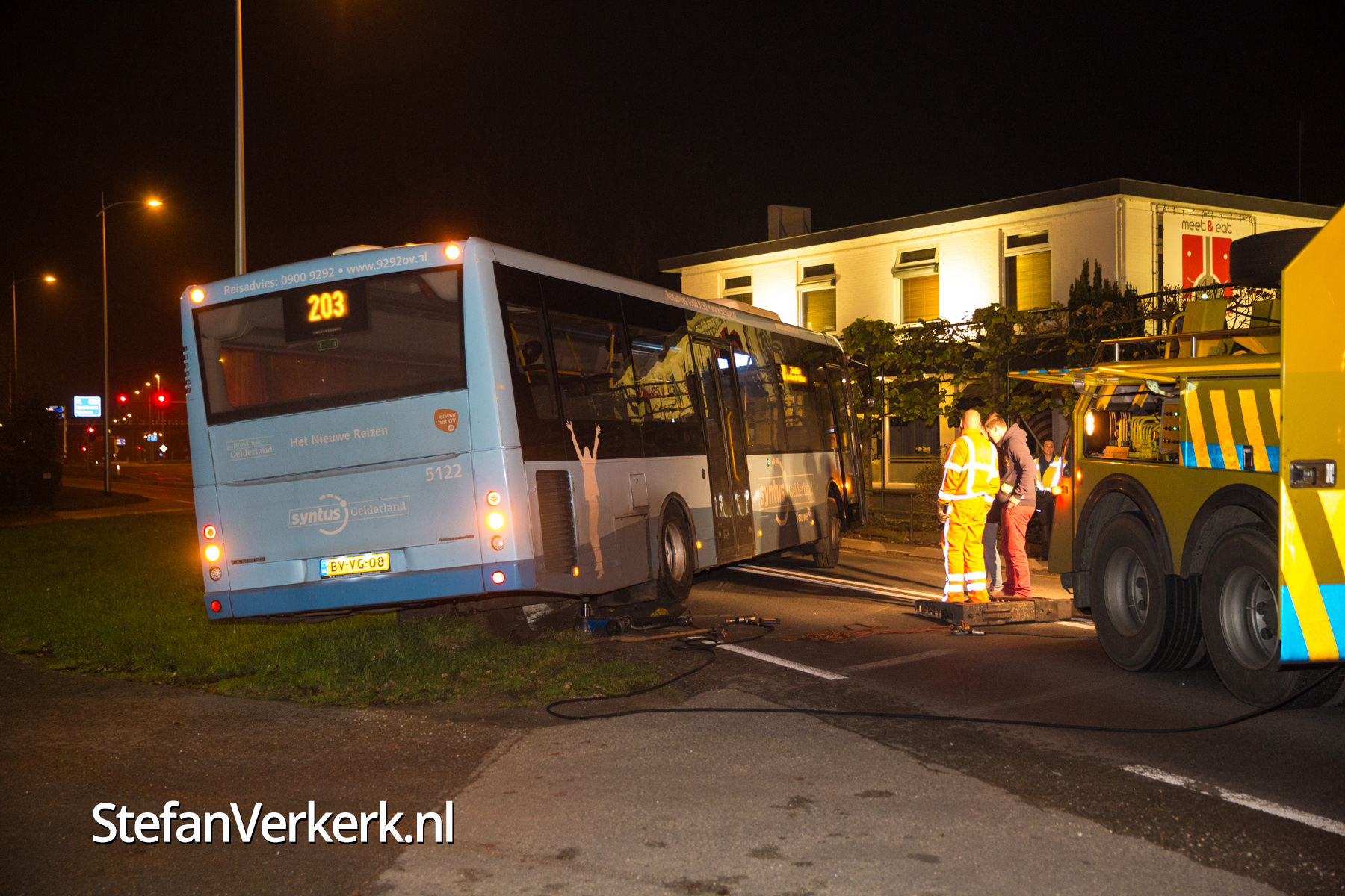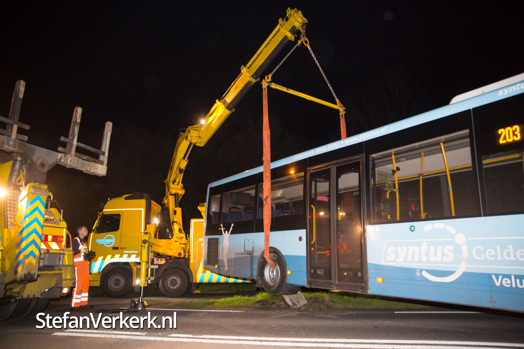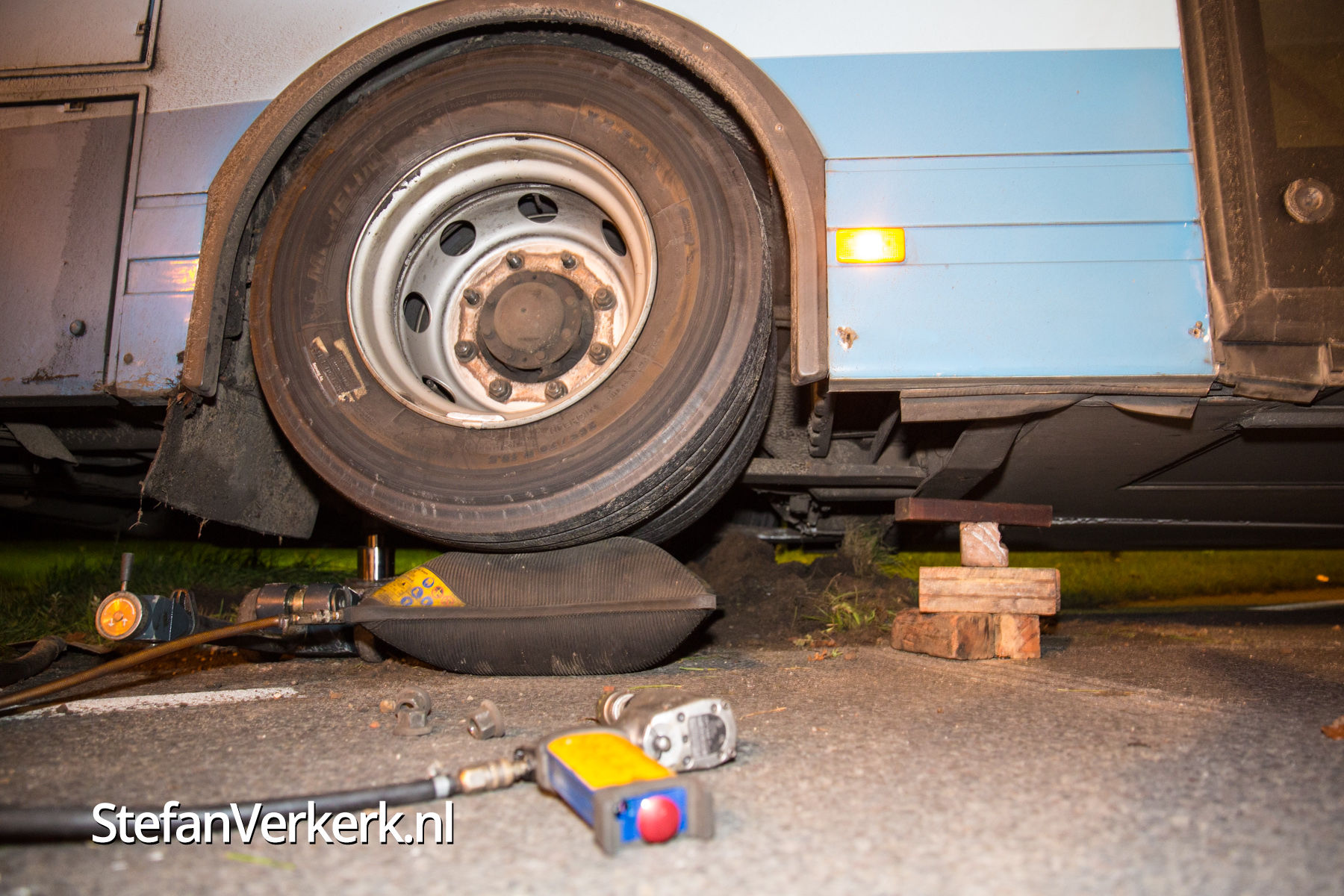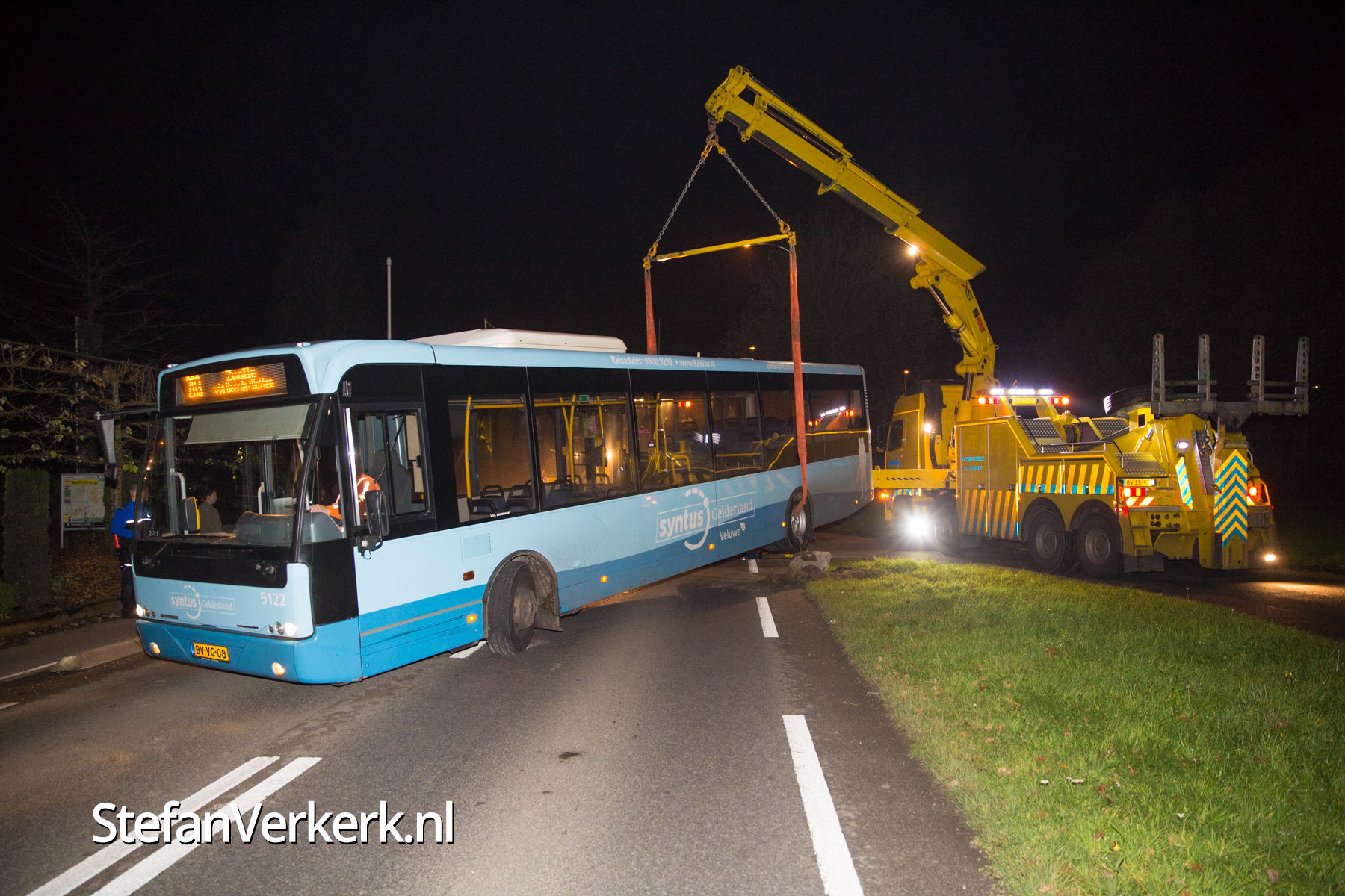 Foto's: Bus overdwars op de weg Eperweg Heerde