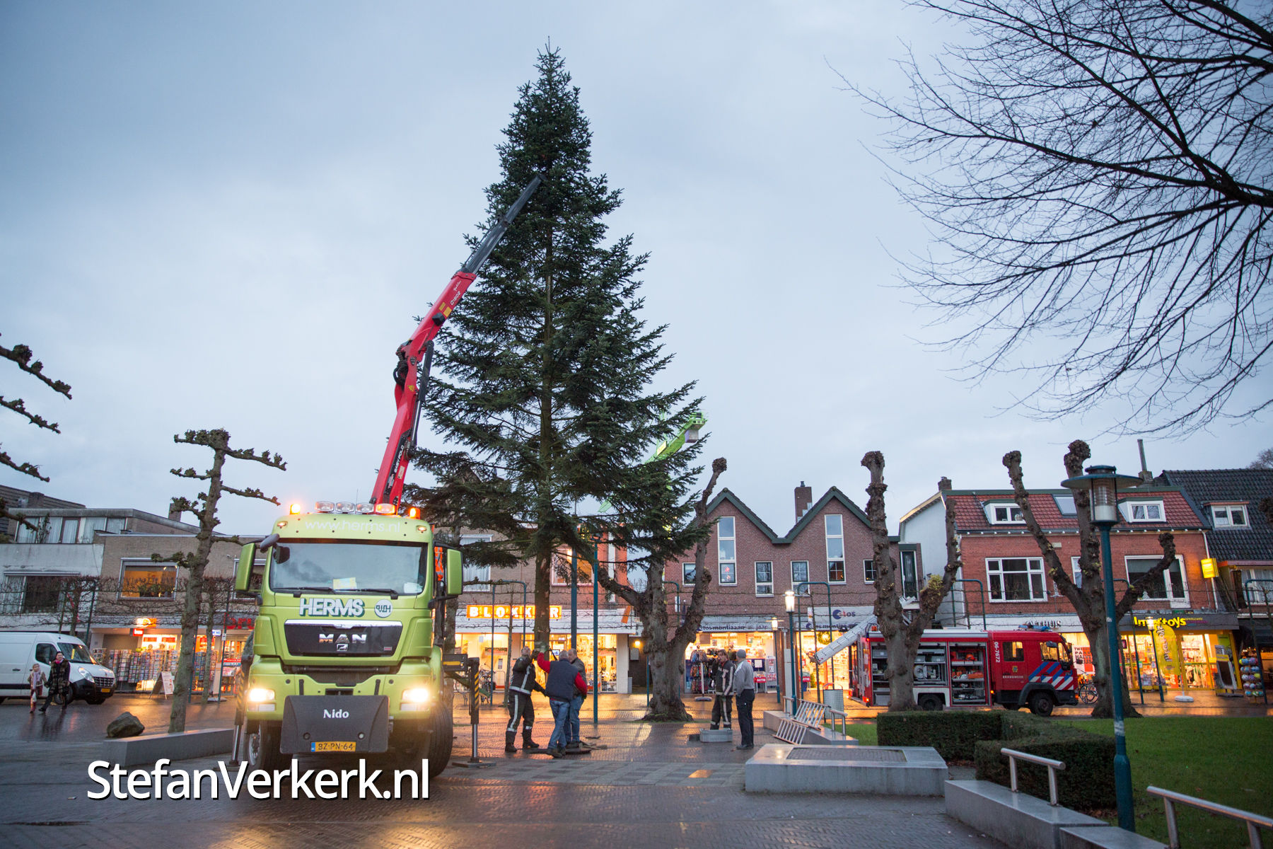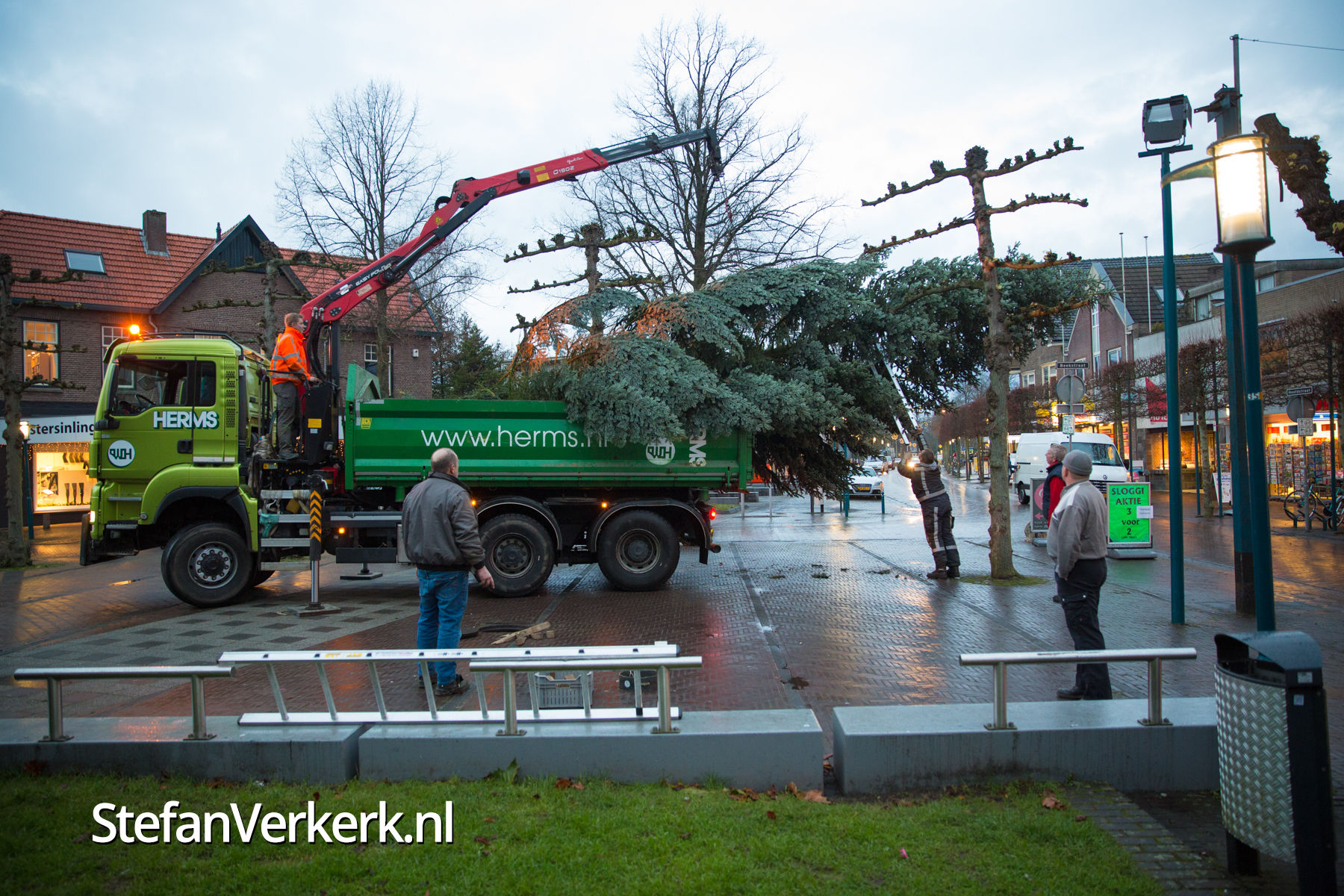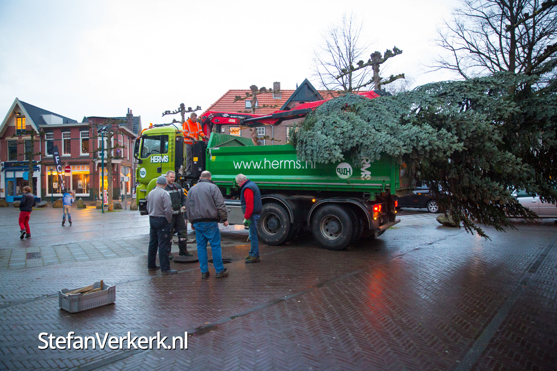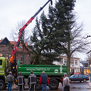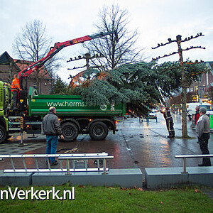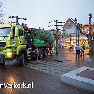 Foto's: Kerstboom plaatsen op marktplein Epe