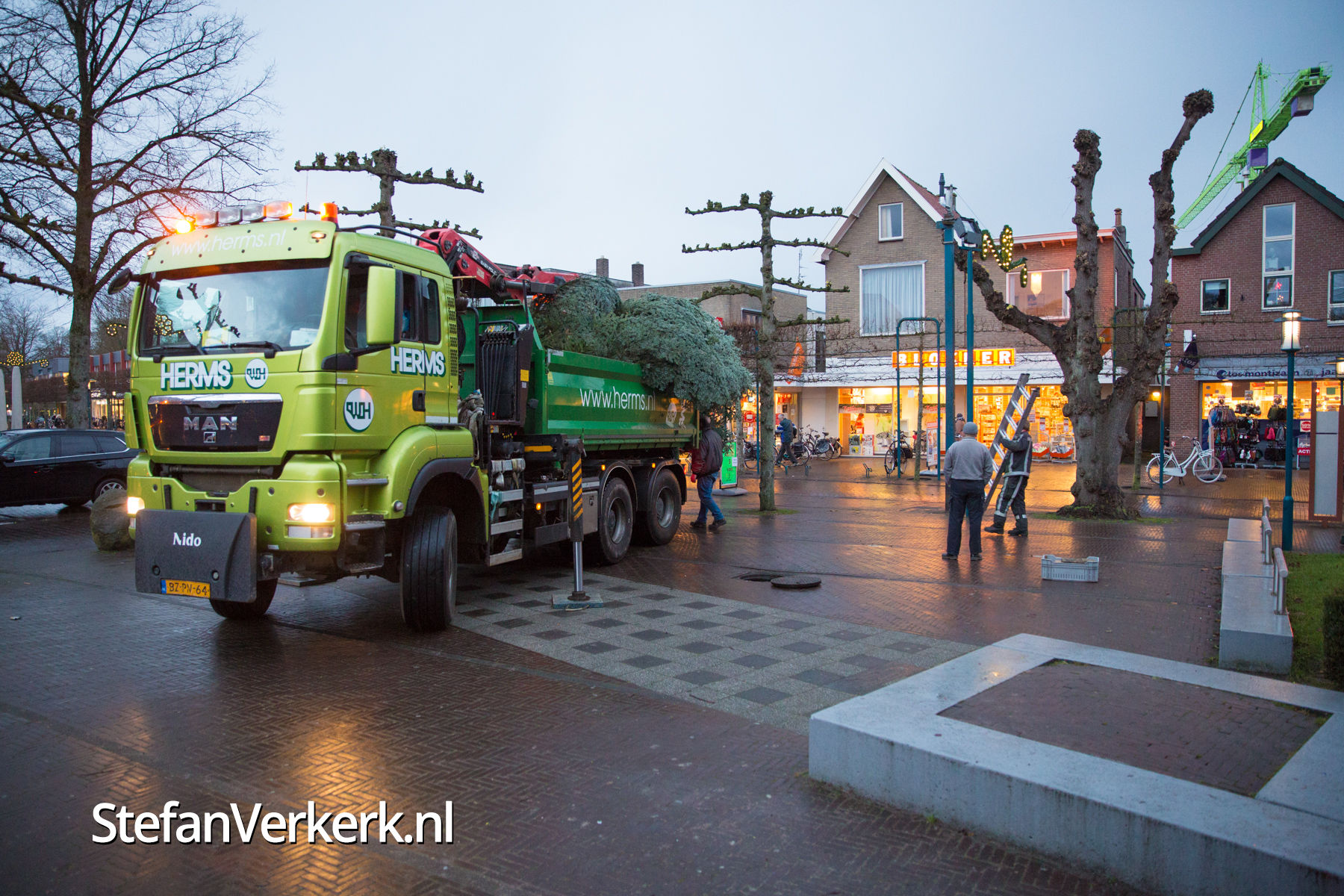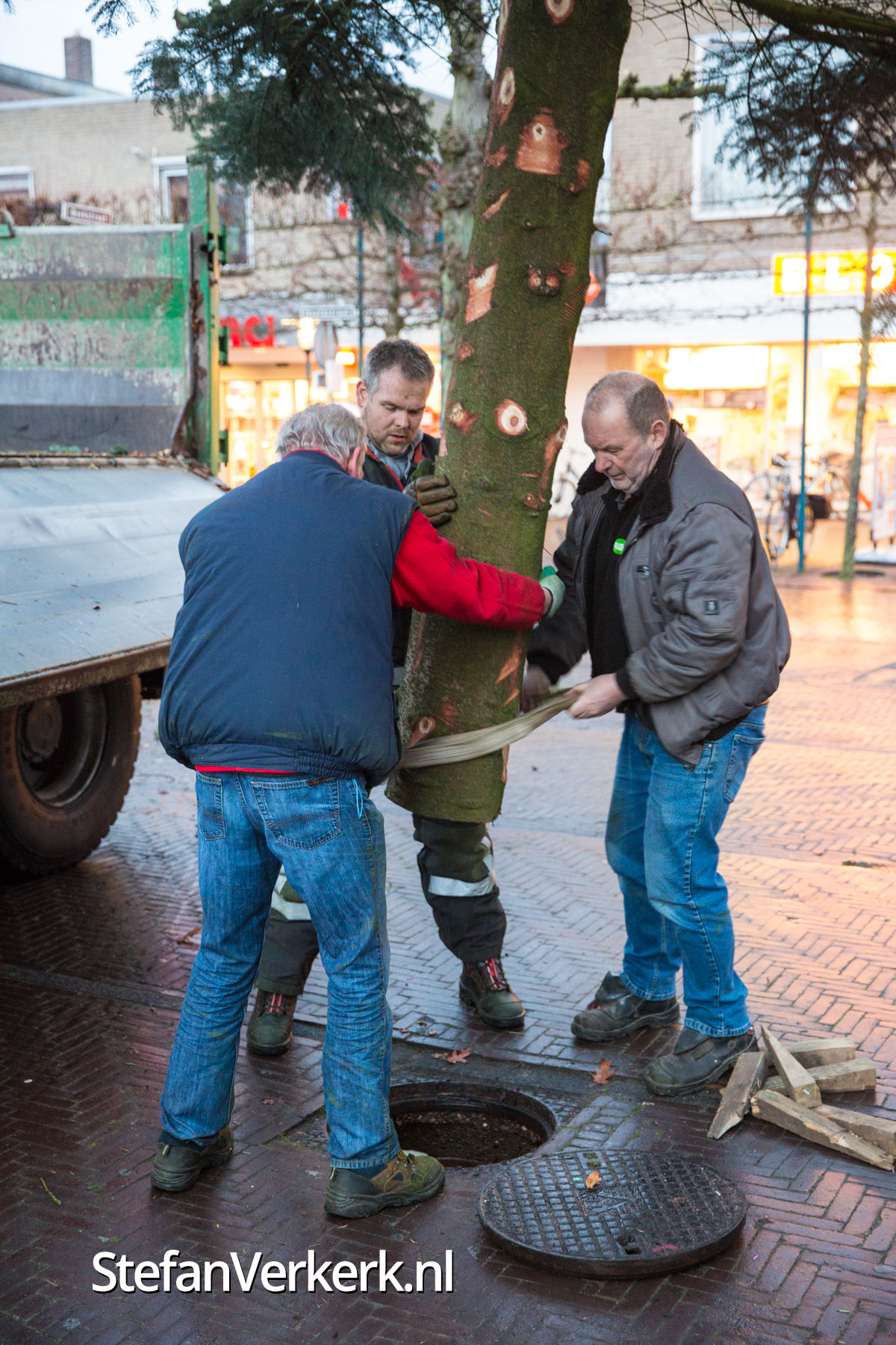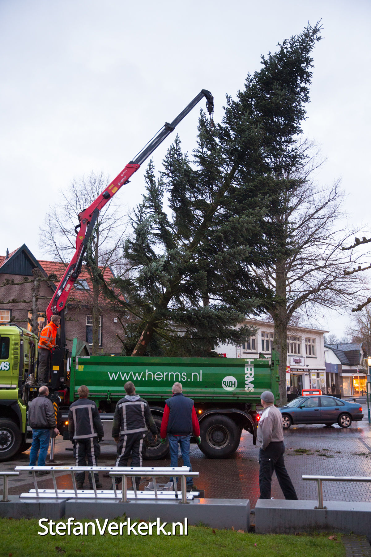 Foto's: Kerstboom plaatsen op marktplein Epe