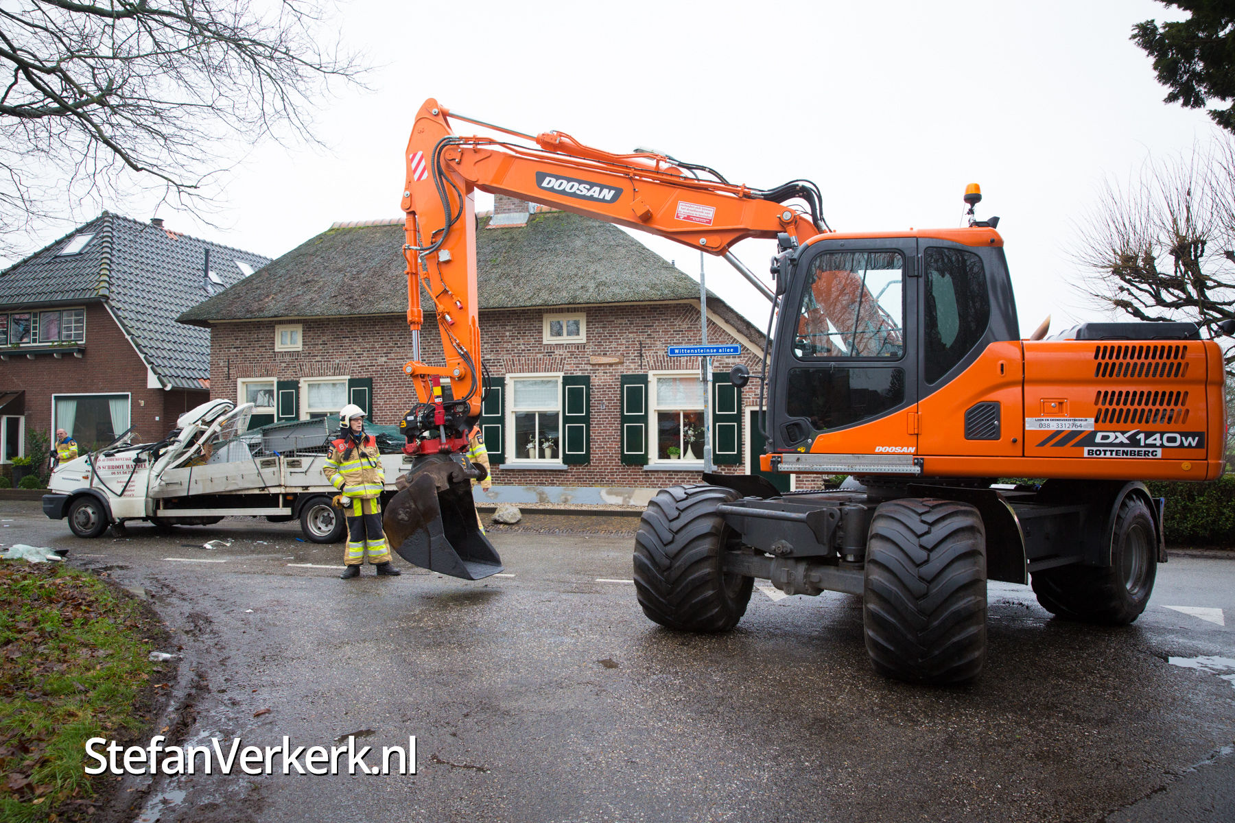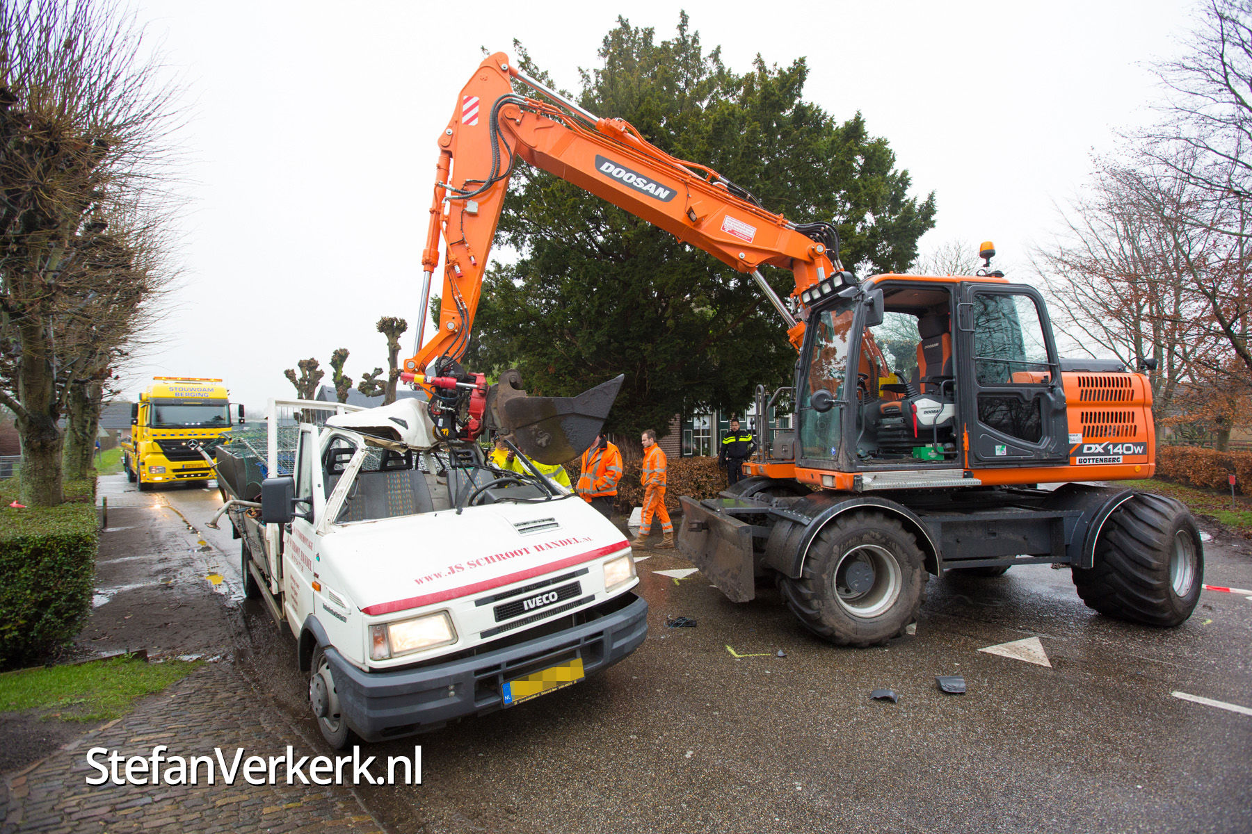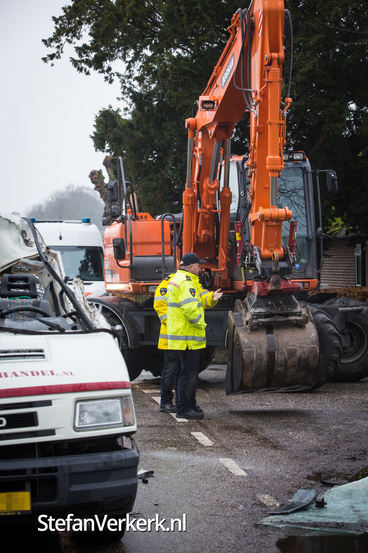 Foto's: Ongeval bestelwagen met graafmachine Wittensteinse Allee Zuideinde