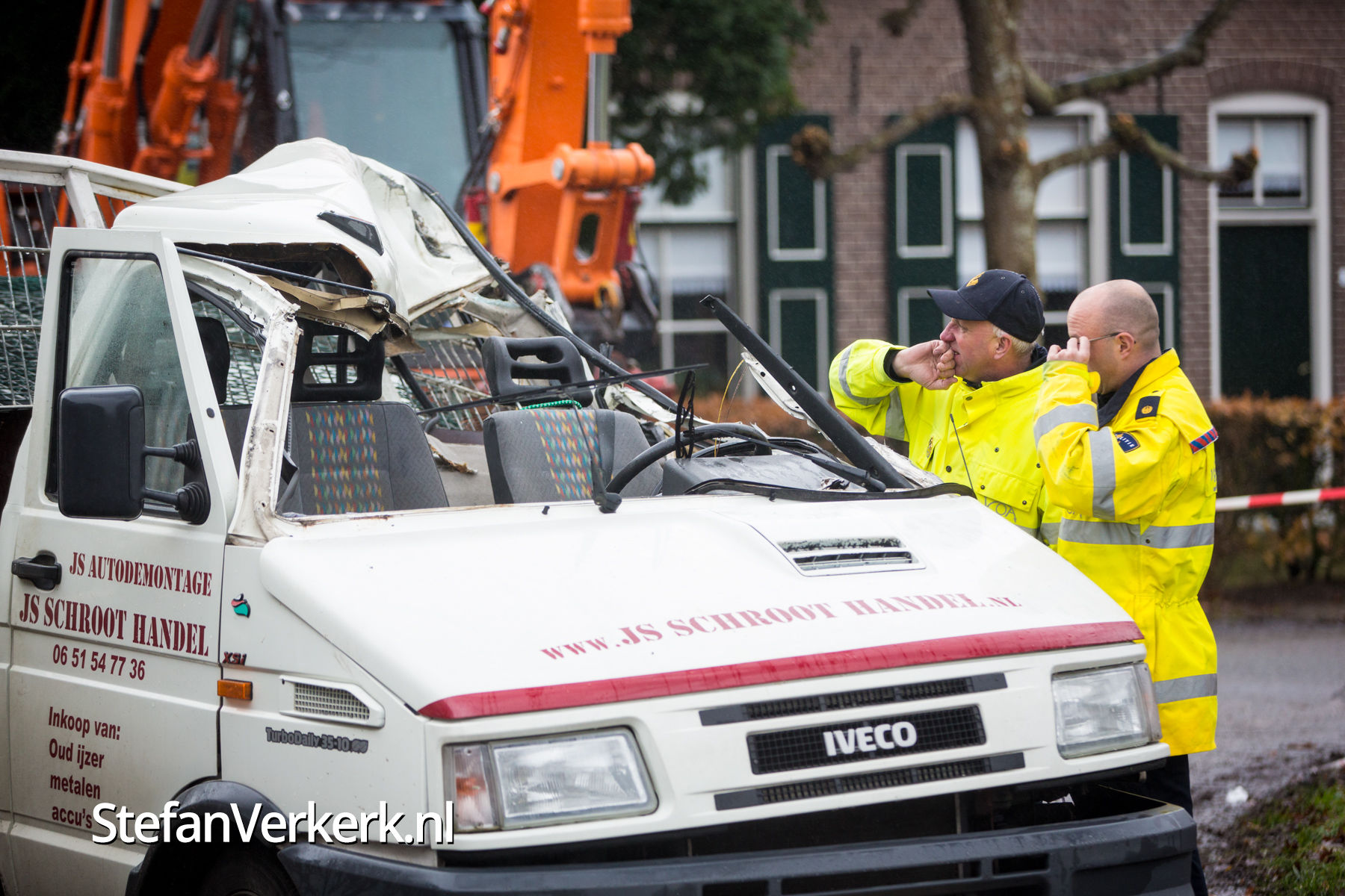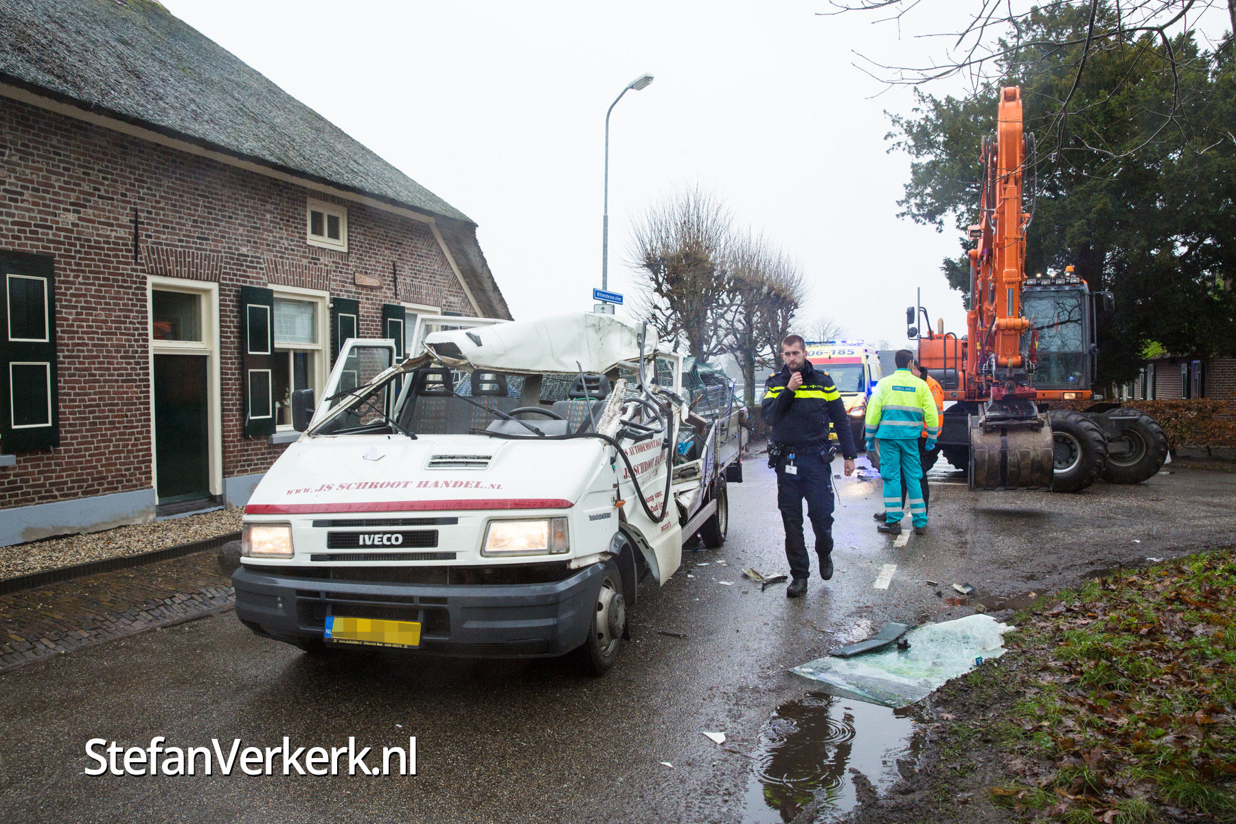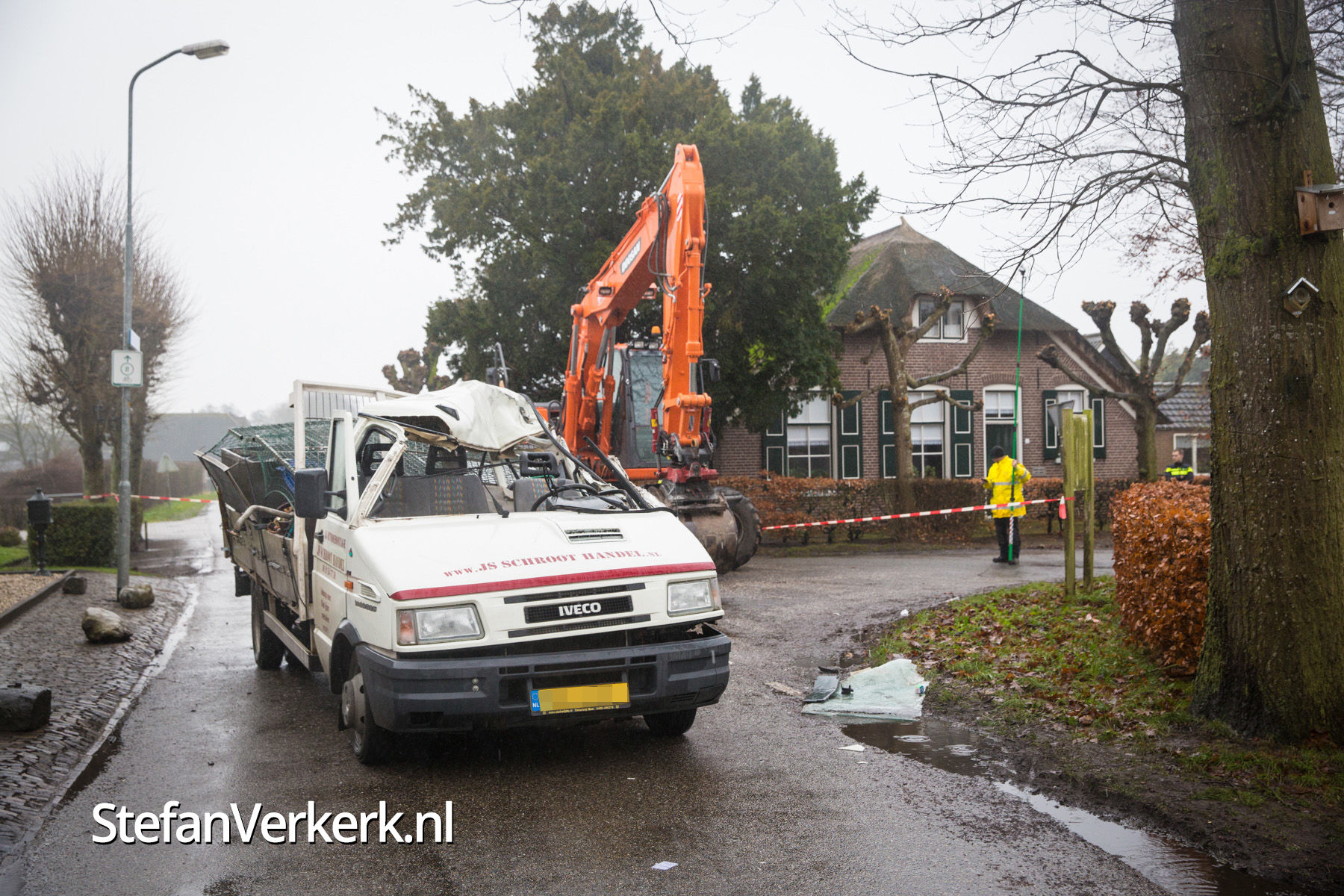 Foto's: Ongeval bestelwagen met graafmachine Wittensteinse Allee Zuideinde