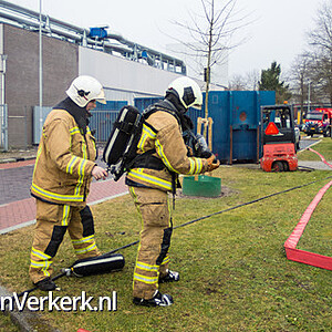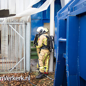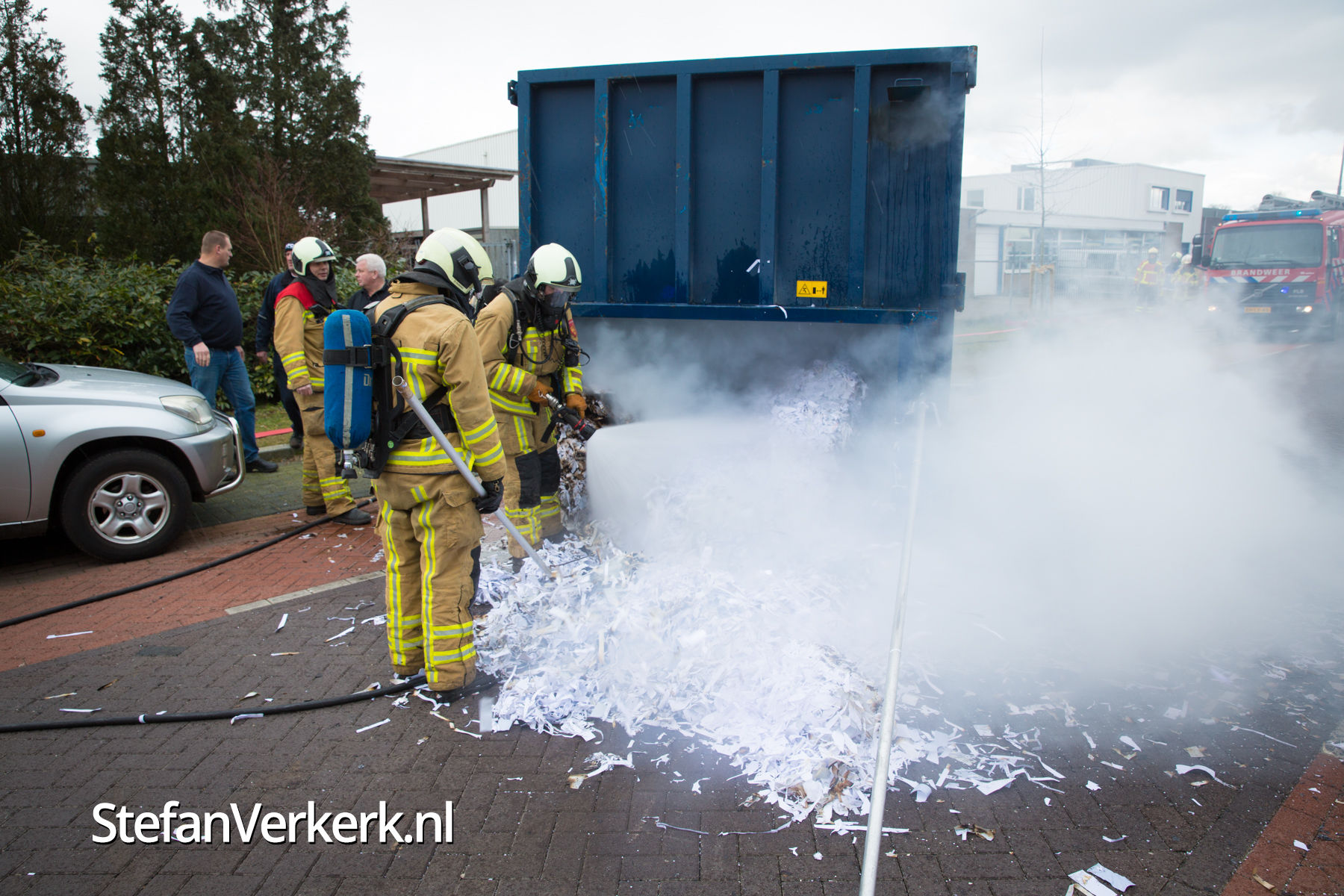 Foto's: Brand in papiercontainer bij bedrijf in Heerde