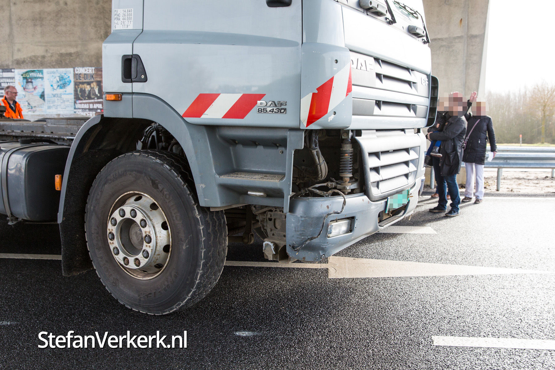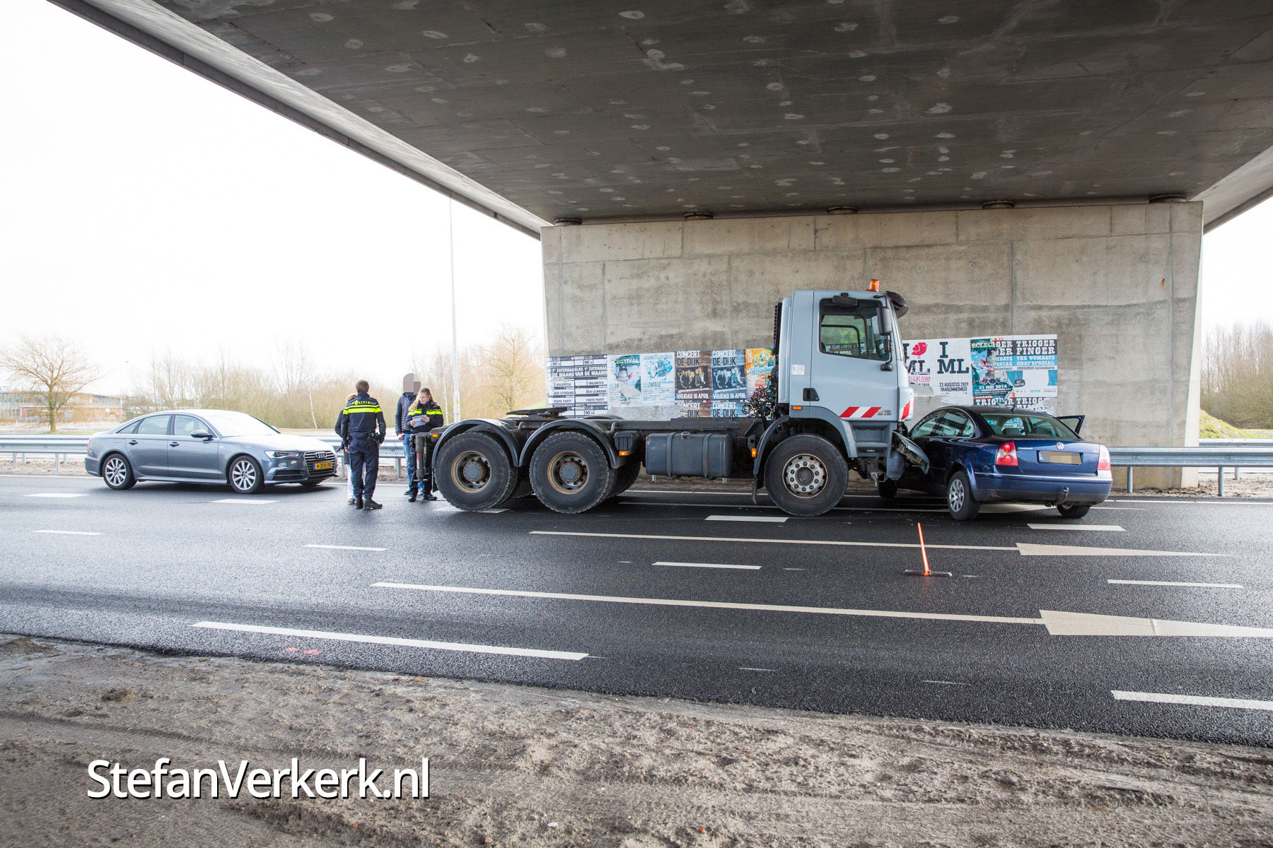 Forse schade aanrijding auto vrachtwagen A28 't Harde