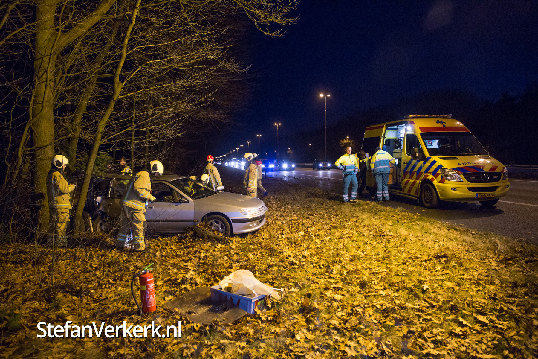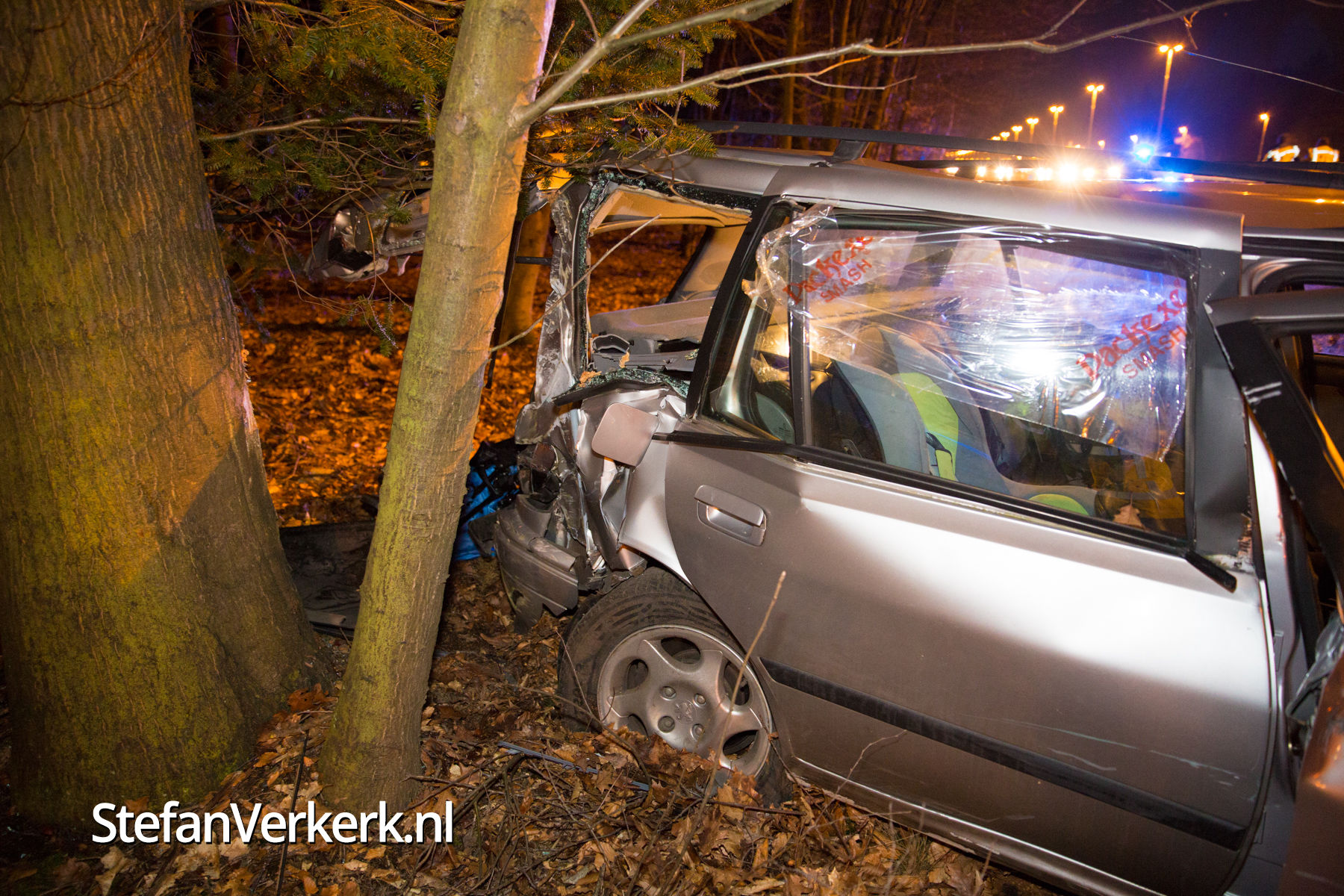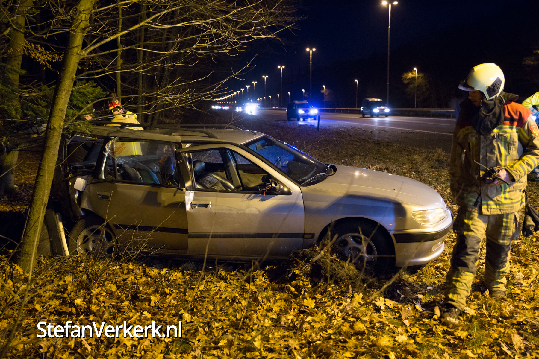 Foto's: Ongeval auto tegen boom A50 R 228,6 Heerde