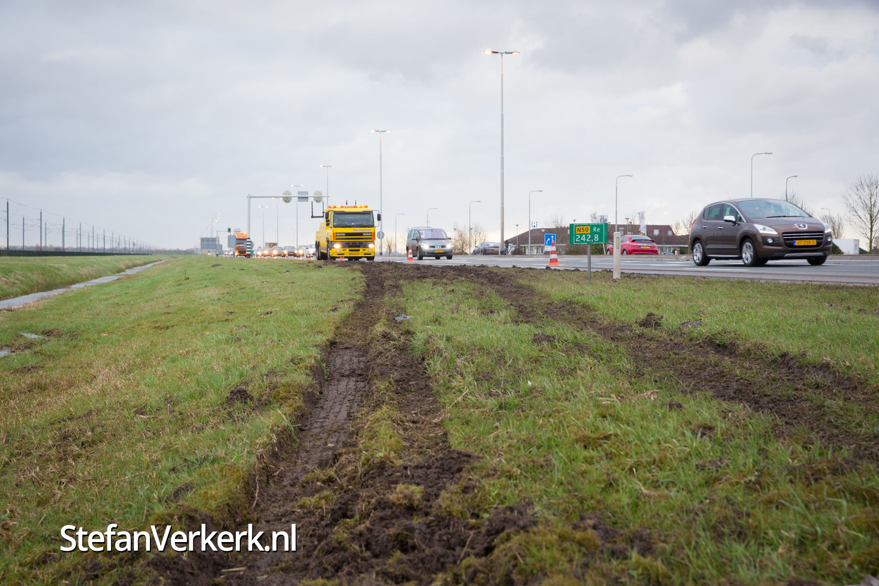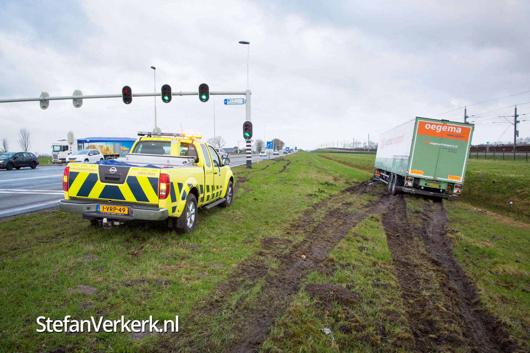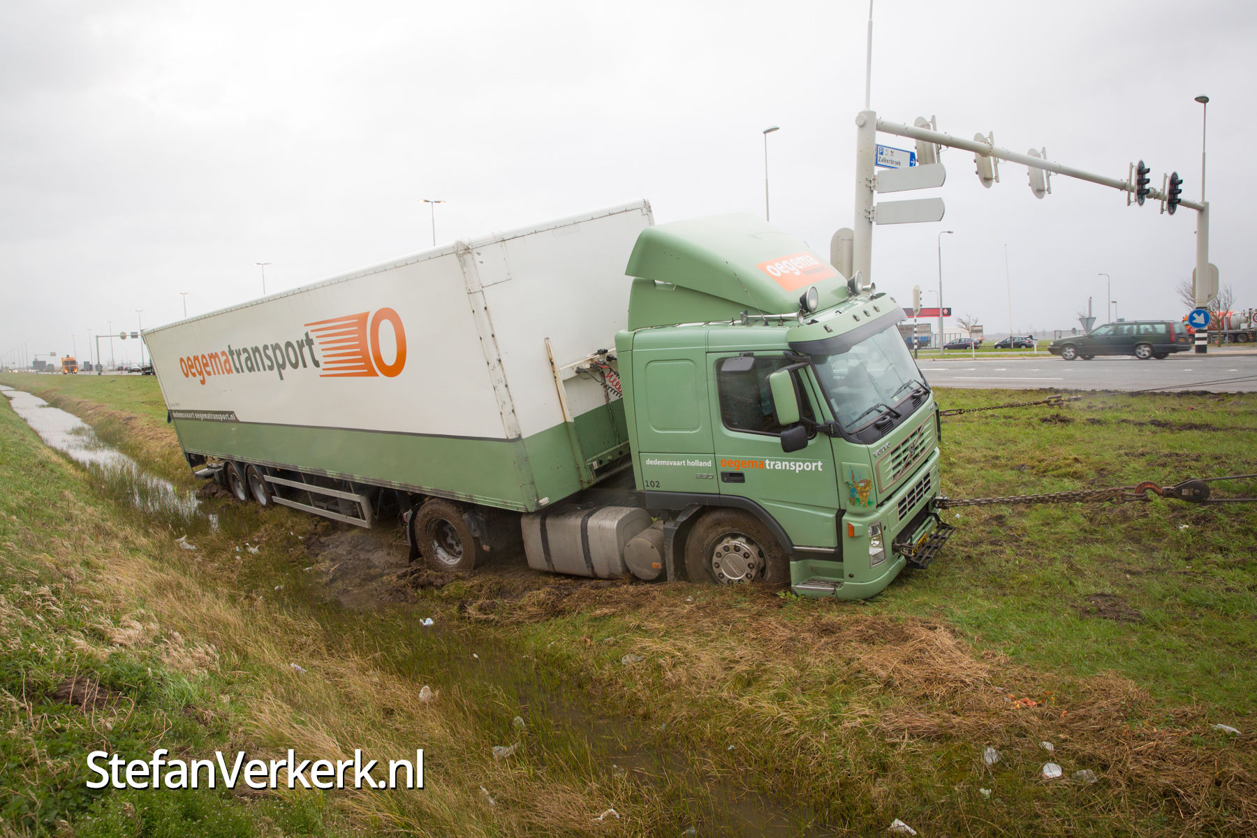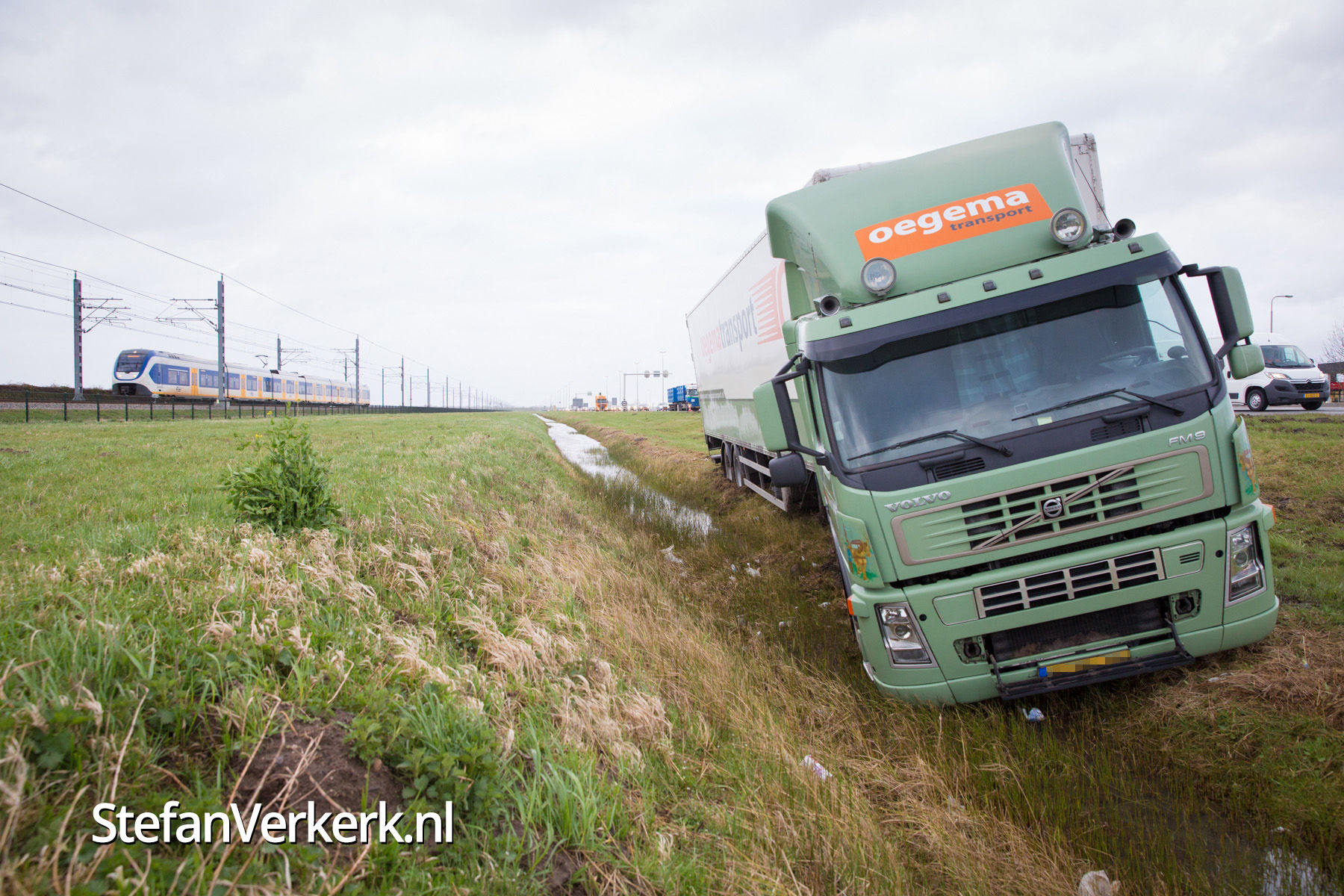 Foto's: Vrachtwagen in de sloot N50 R 242,8 Zalk