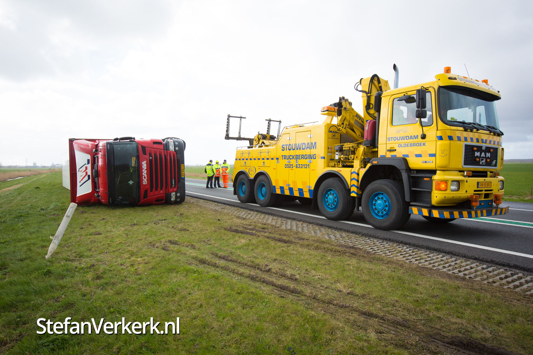 Foto's: Uitgestelde vrachtwagenberging N50 L 256,2 Kampen