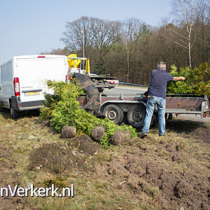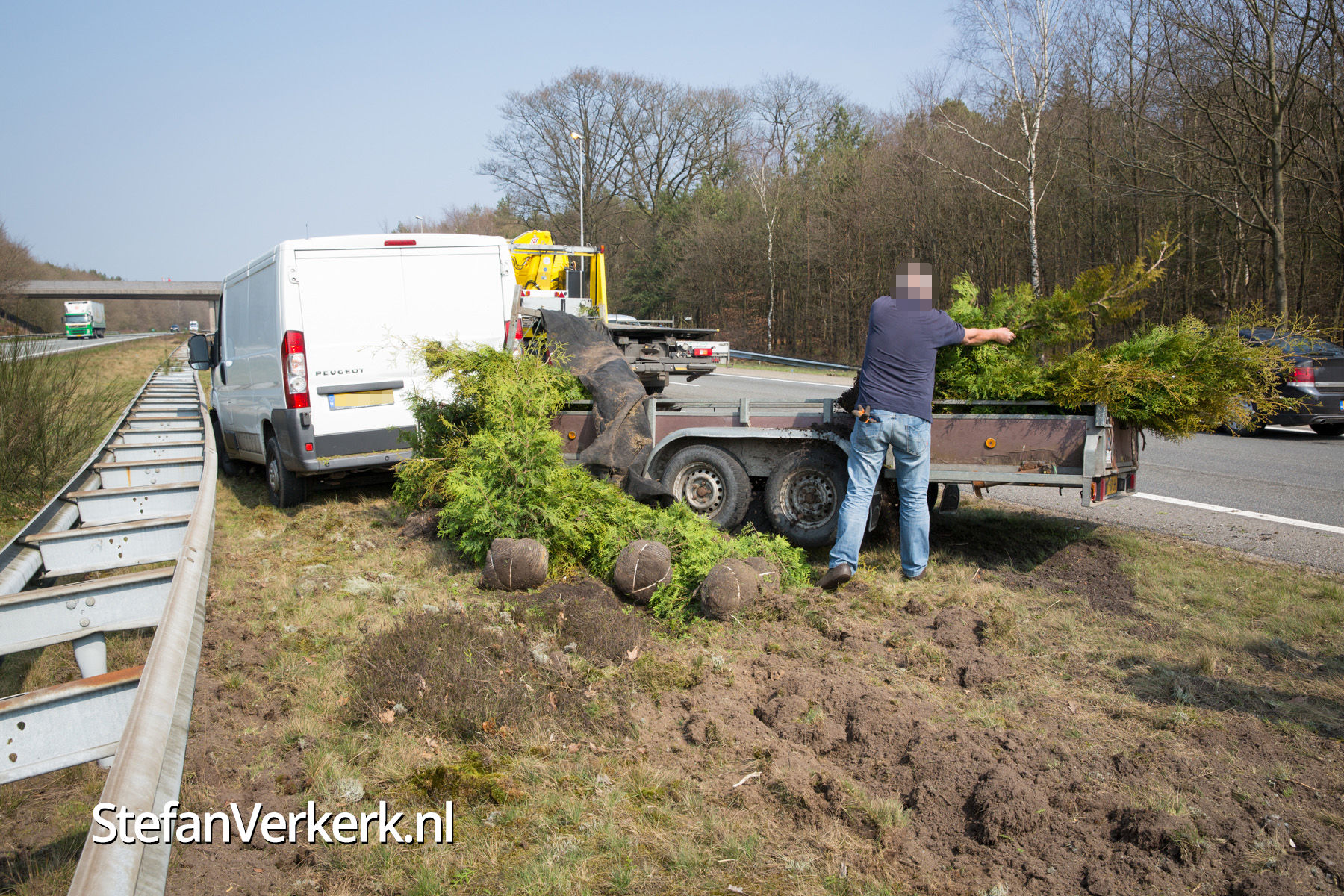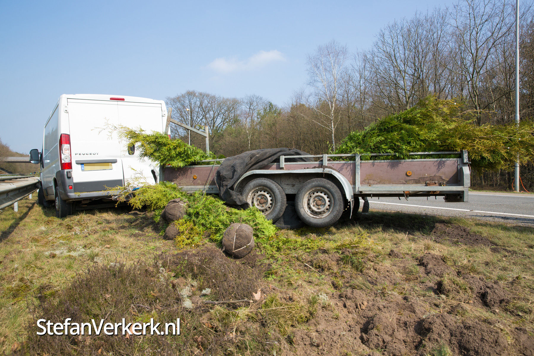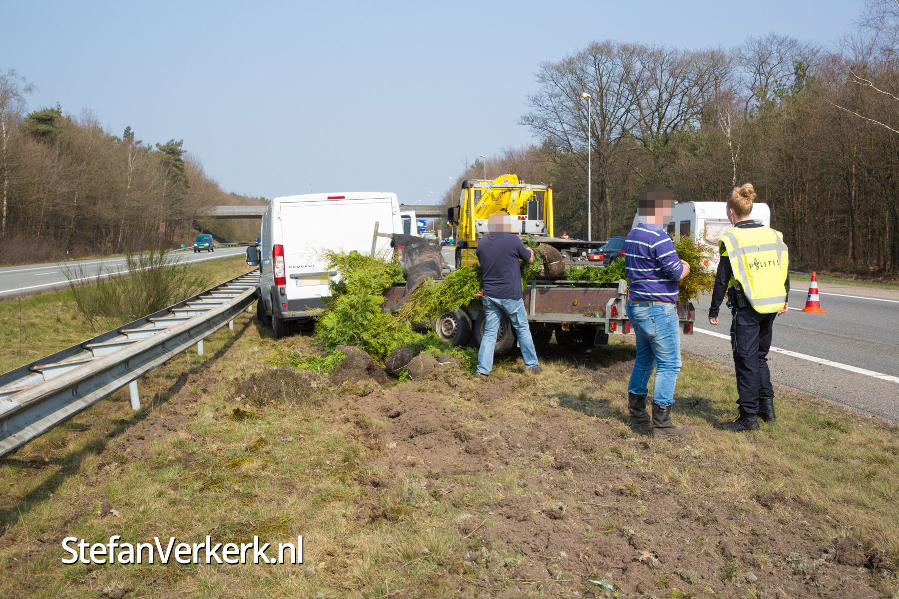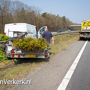 Foto's: Aanhanger met coniferen geschaard A50 Heerde