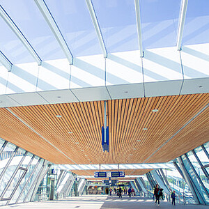 Foto's: Houten plafond passarelle station Arnhem
