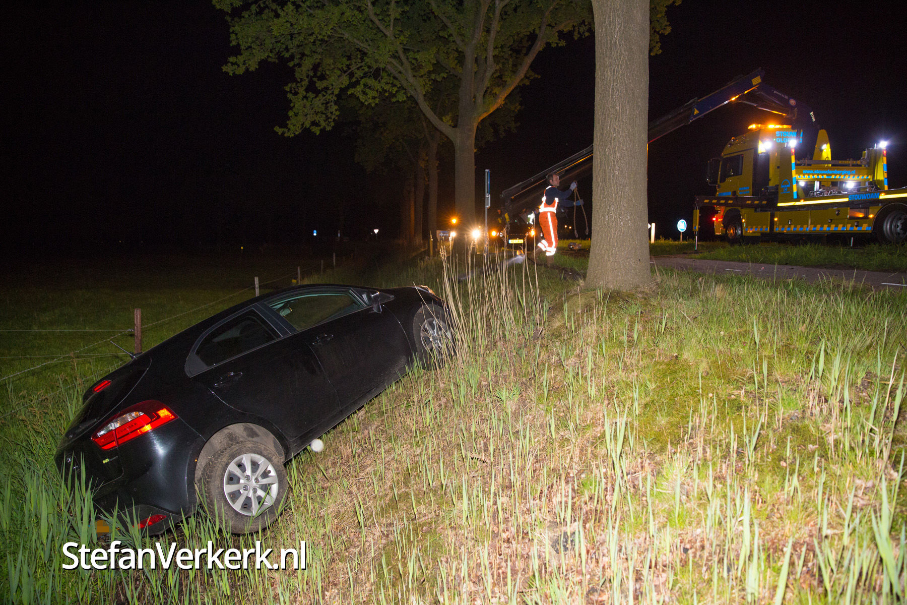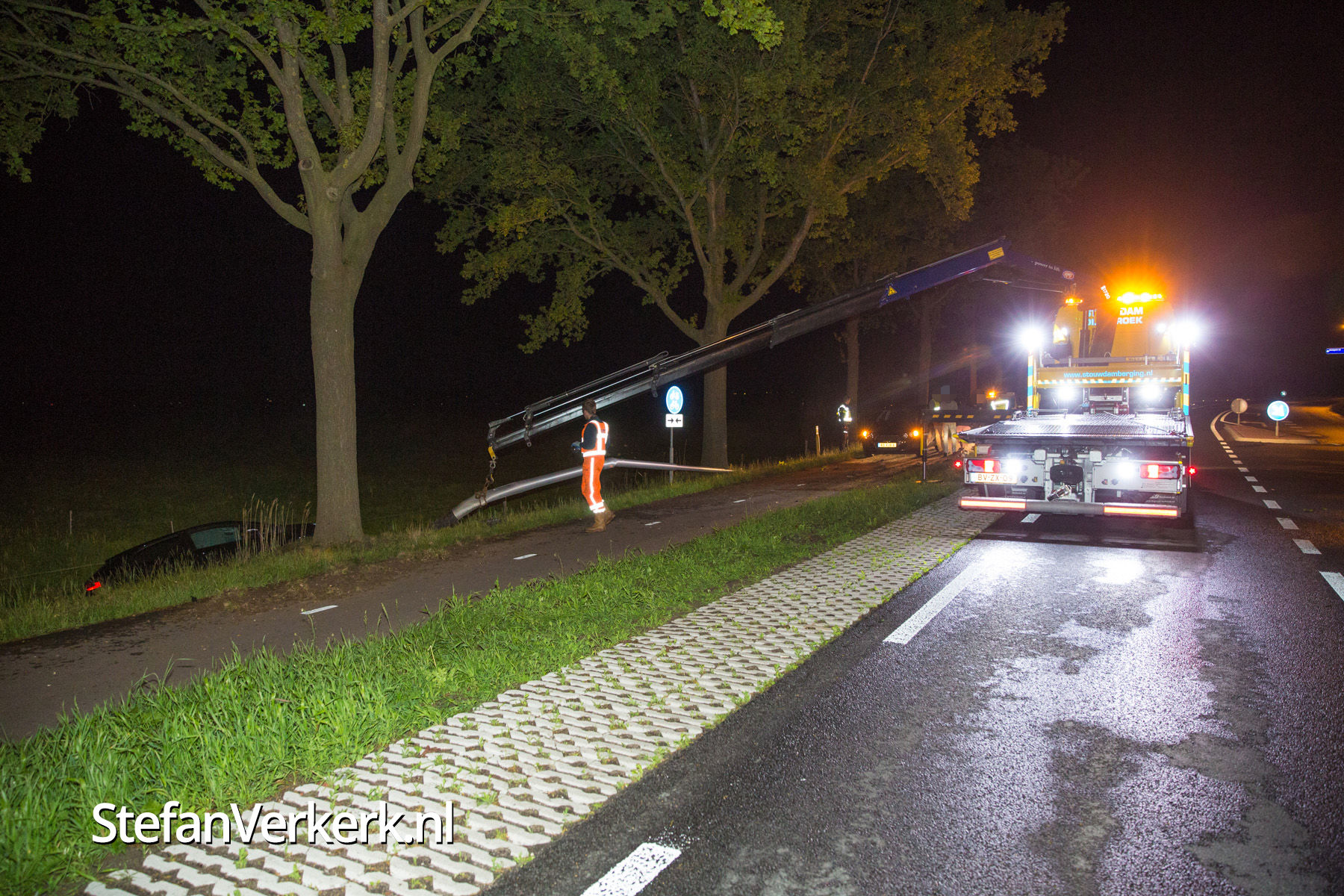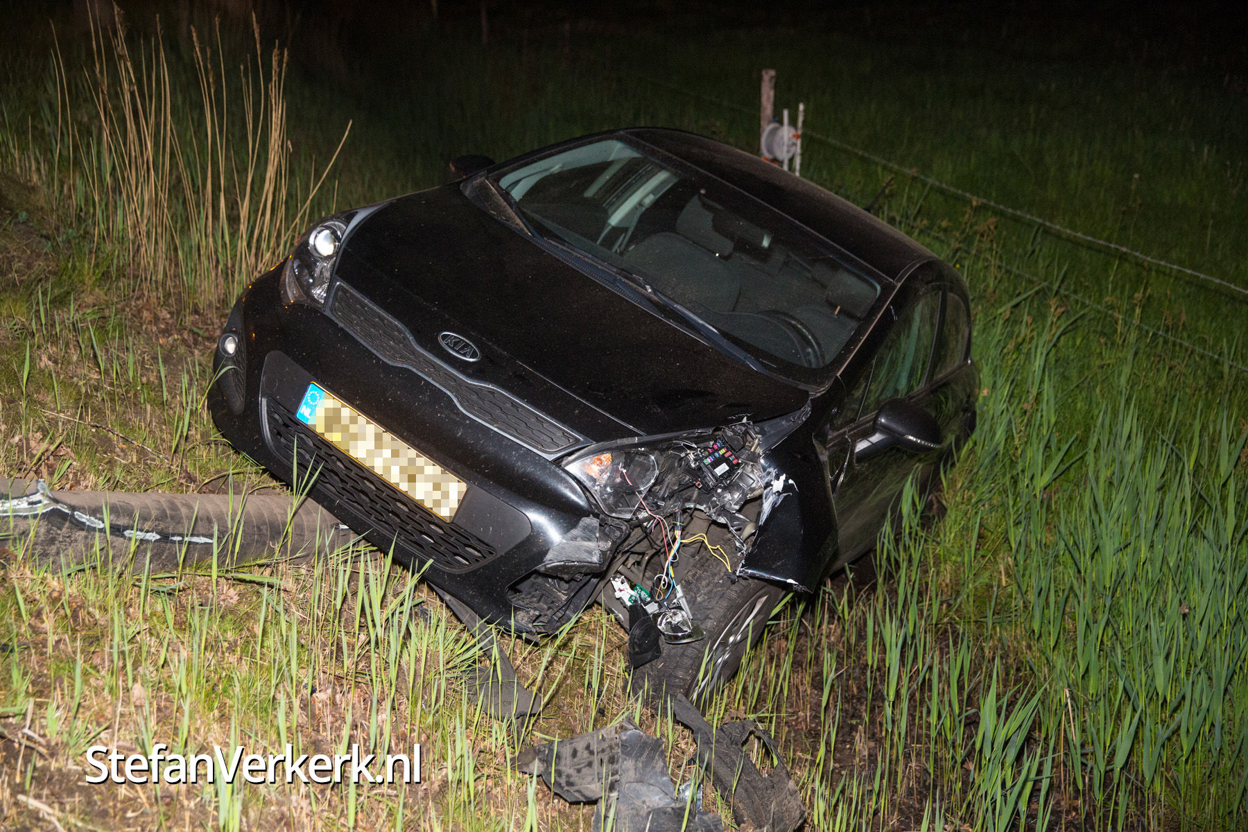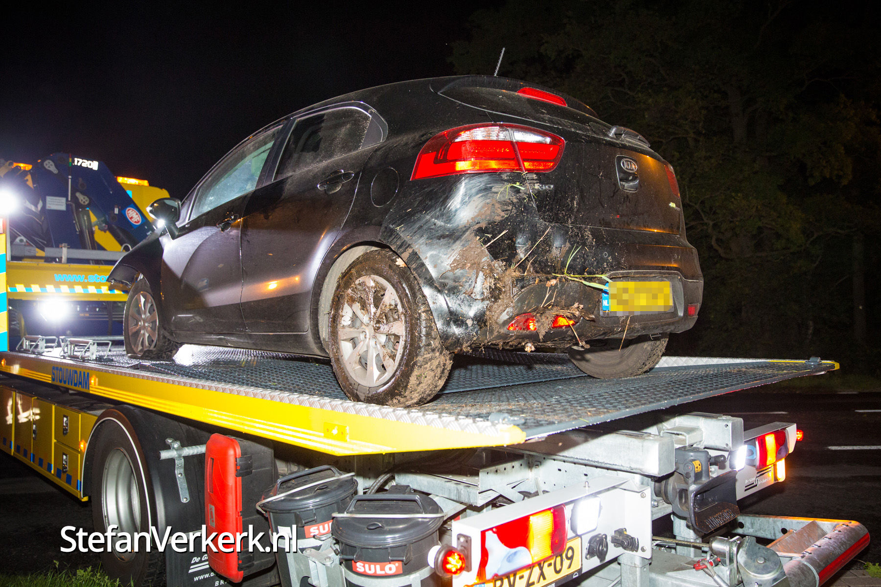 Foto's: Auto in droge sloot Zuiderzeestraatweg Wezep