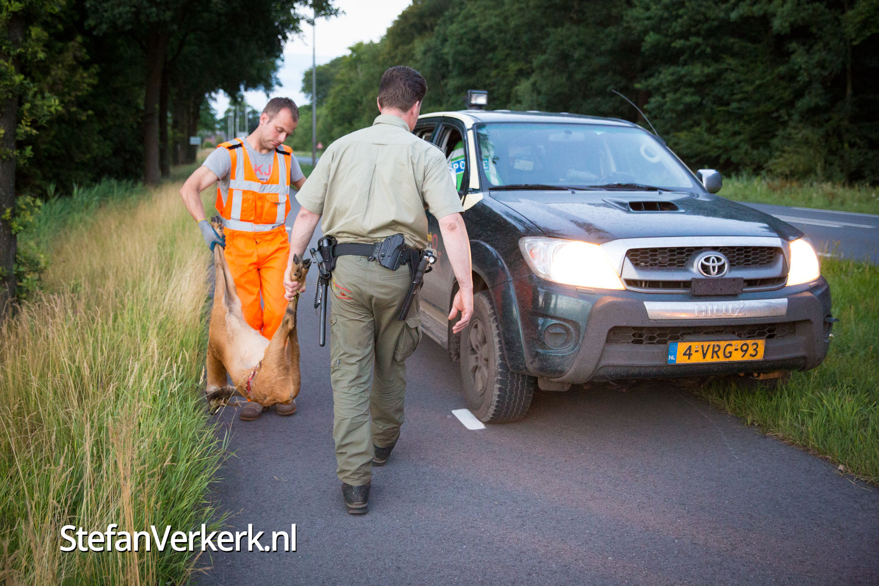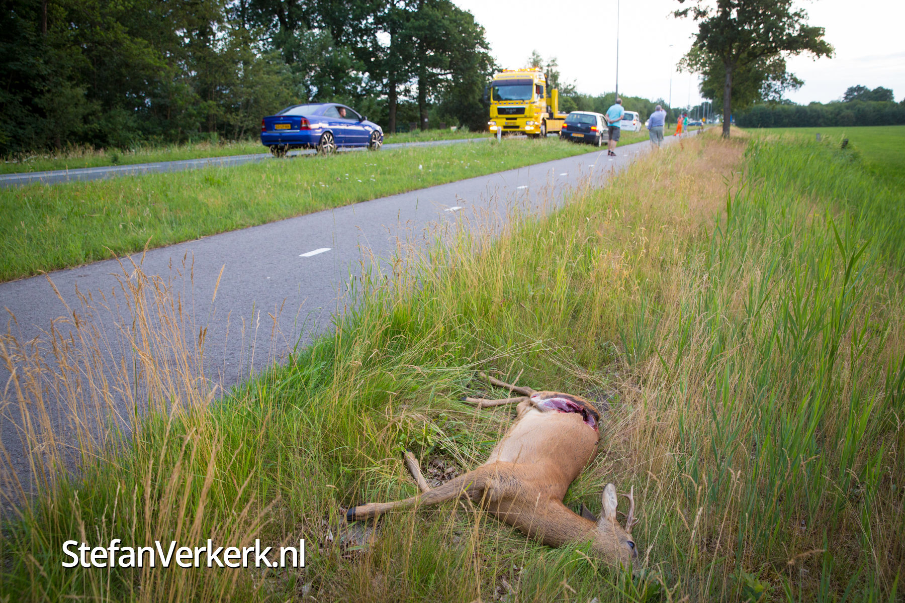 Foto's: Aanrijding auto met ree Zuiderzeestraatweg Wezep