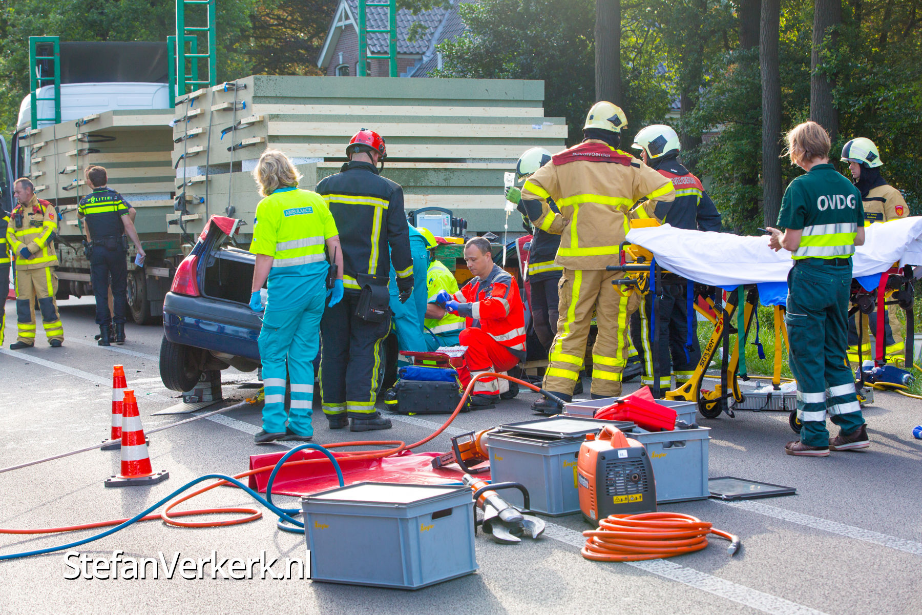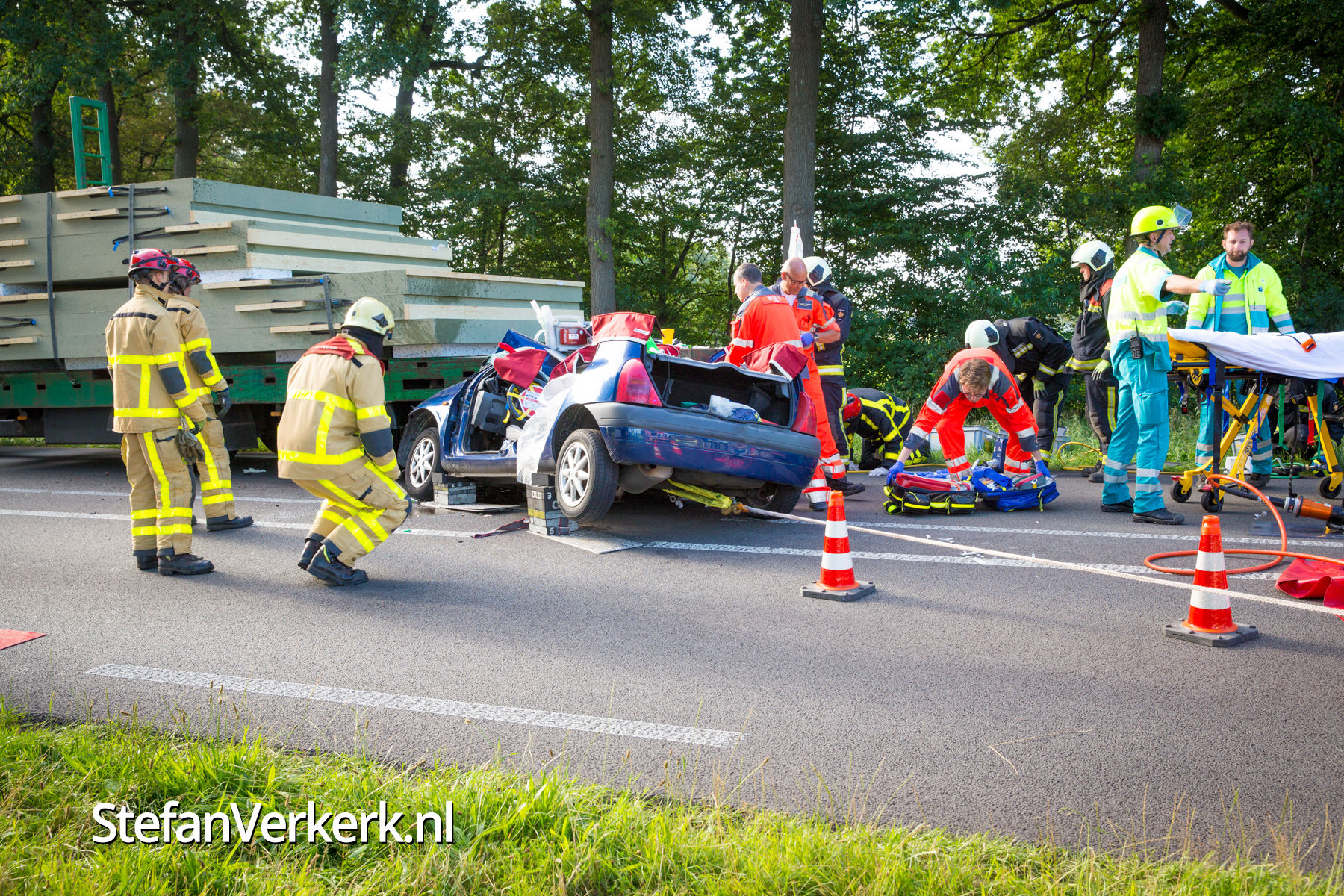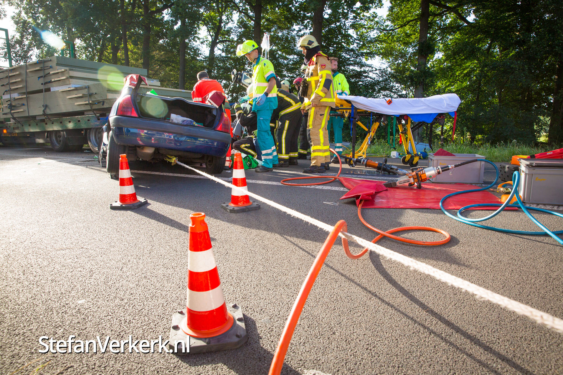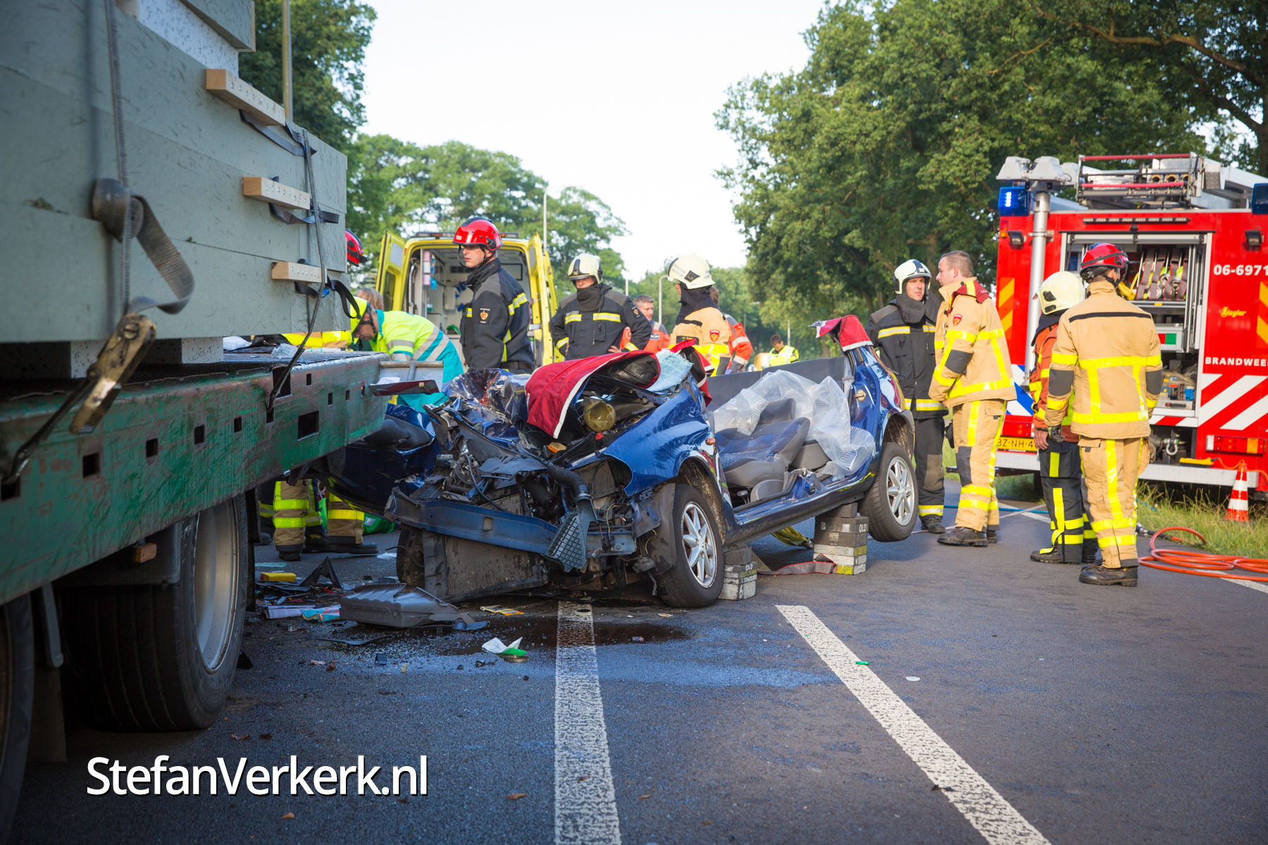 Foto's: Ongeval auto onder vrachtwagen Zuiderzeestraatweg Oldebroek