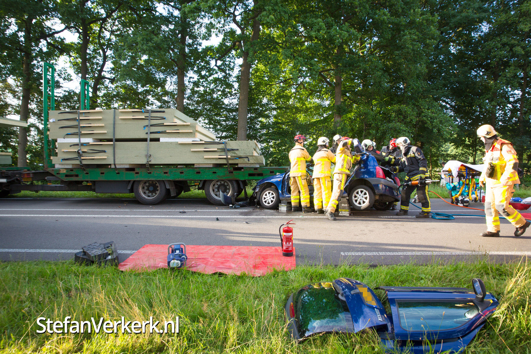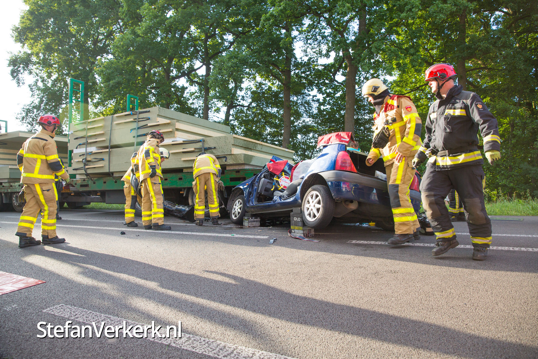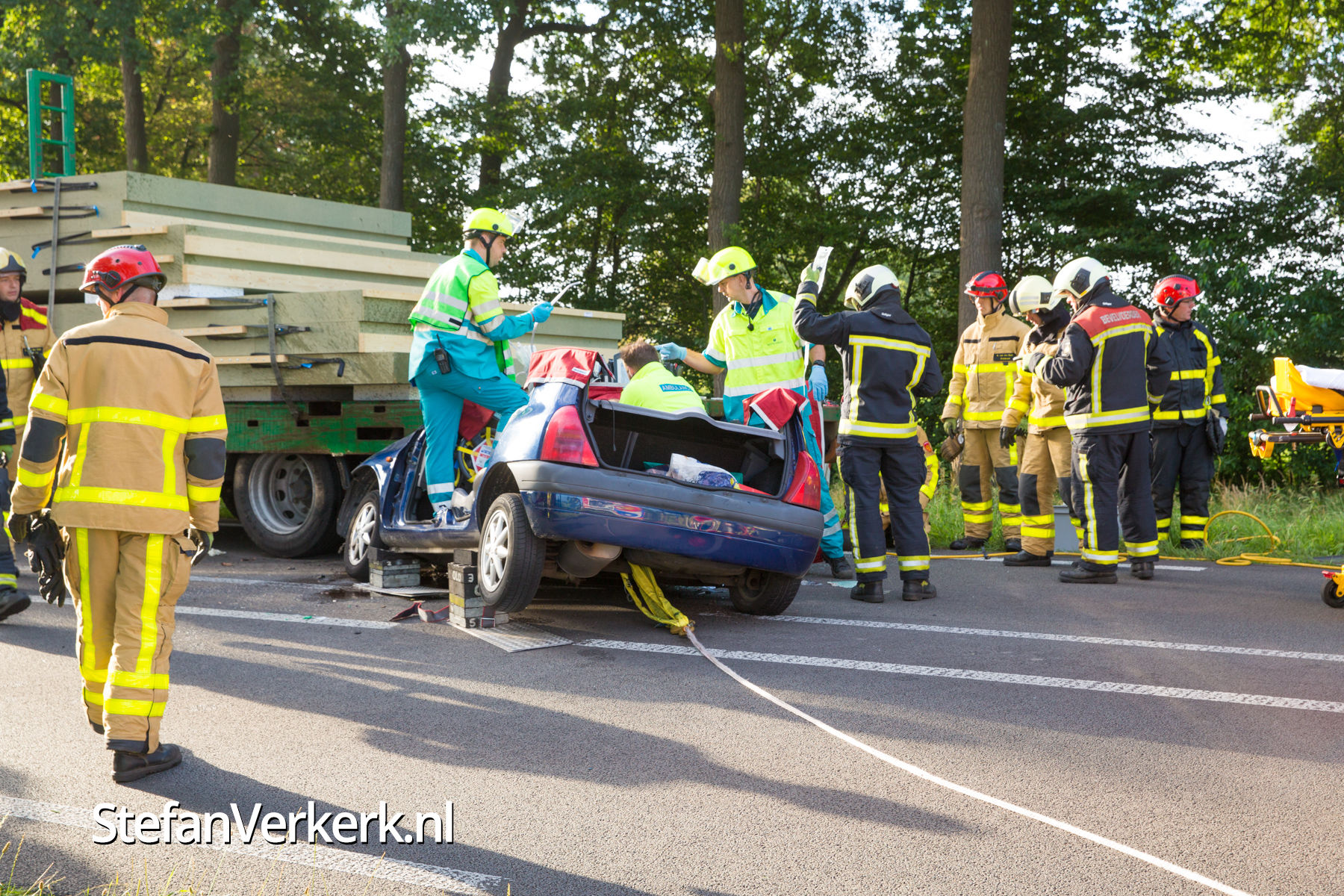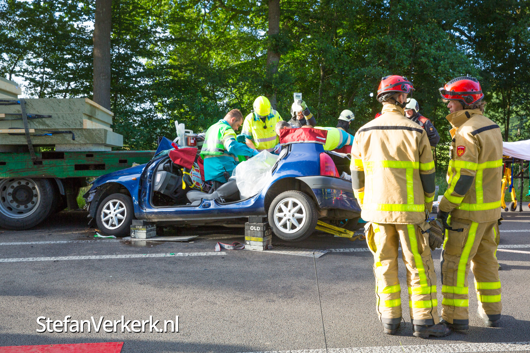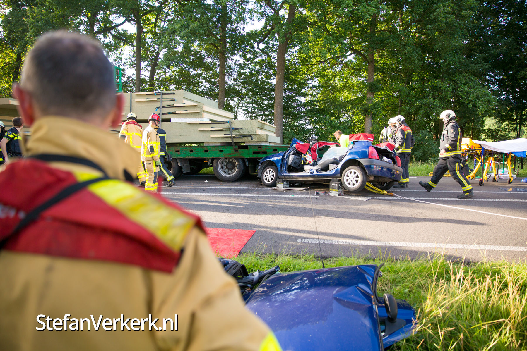 Foto's: Ongeval auto onder vrachtwagen Zuiderzeestraatweg Oldebroek