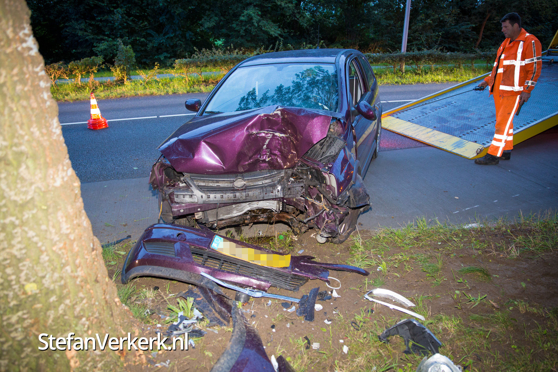 Foto's: Ongeval letsel auto tegen boom Marsweg Zwolle