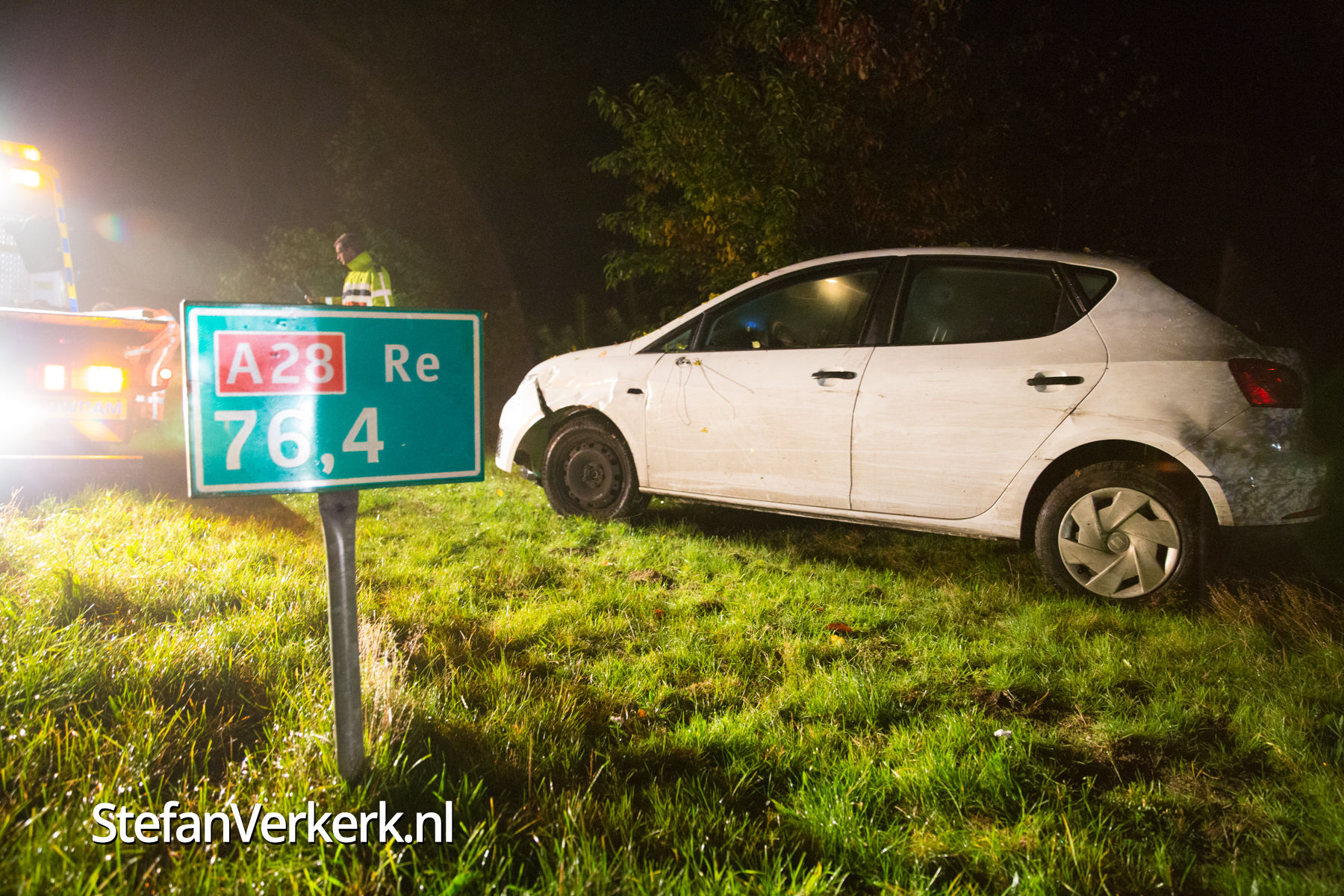 Foto's: Ongeval auto in de berm A28 R 76,4 Wezep