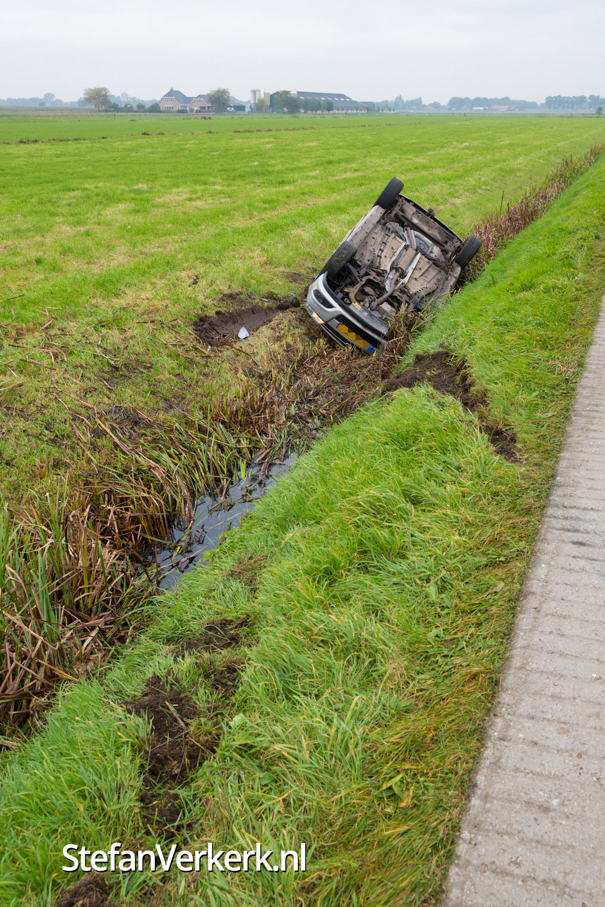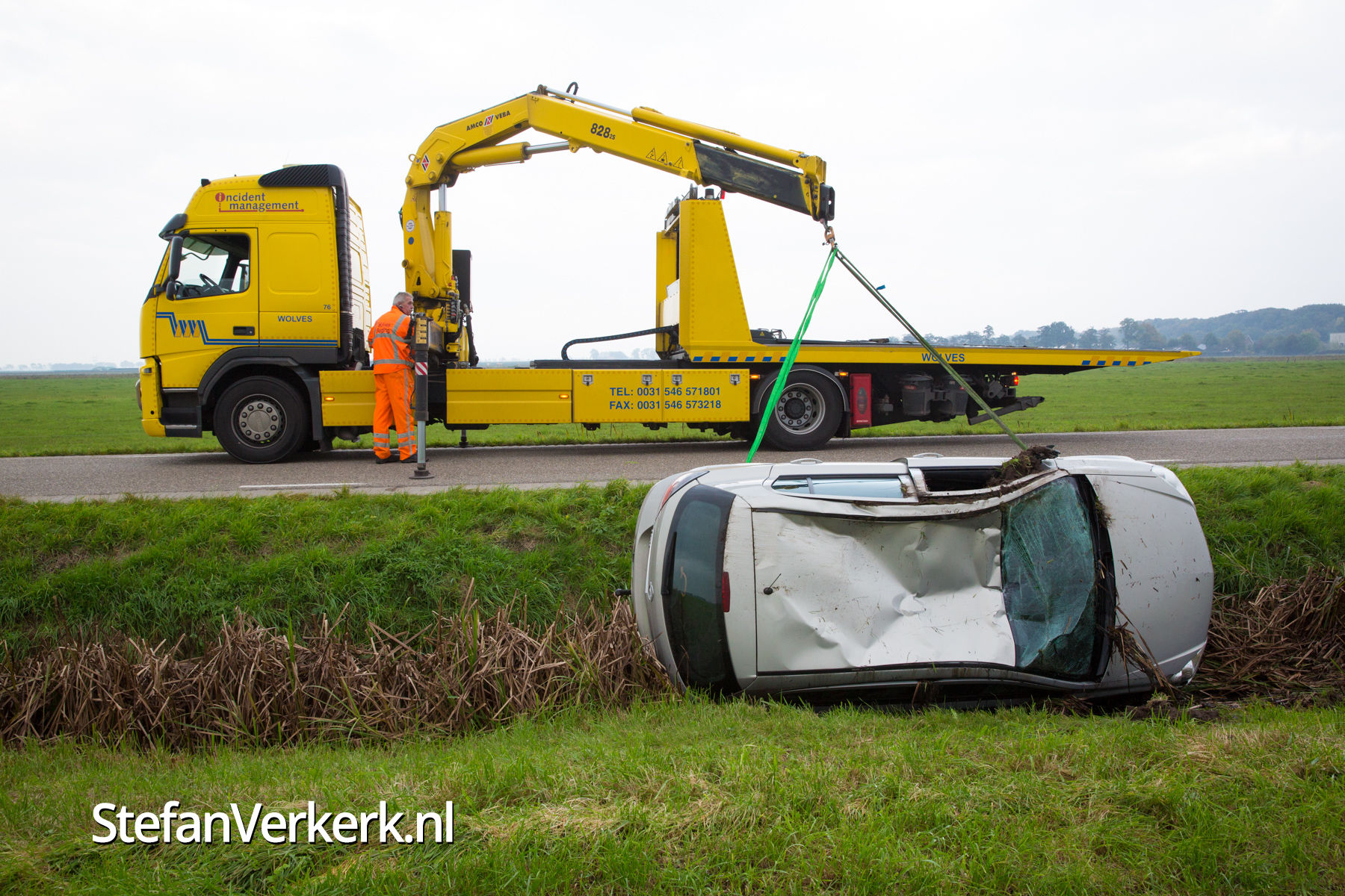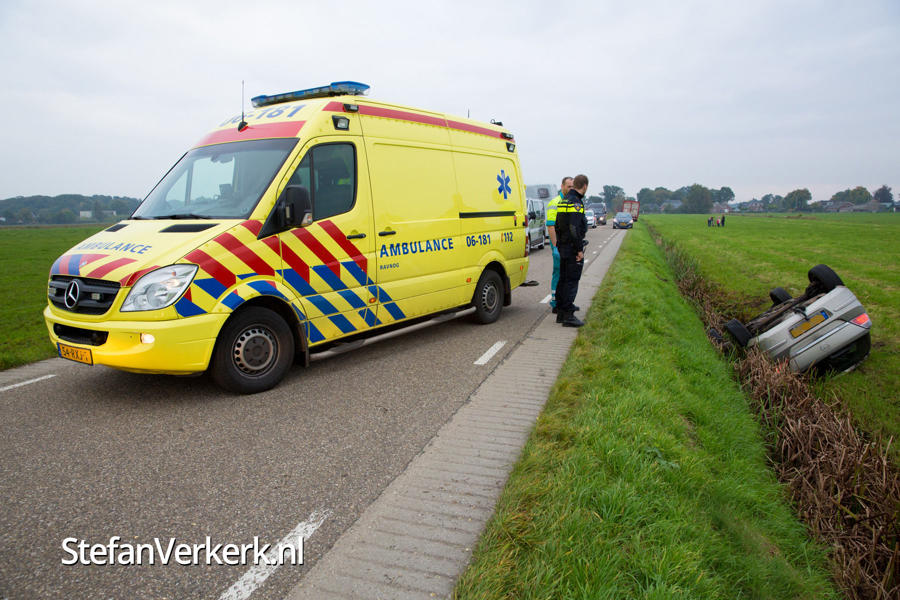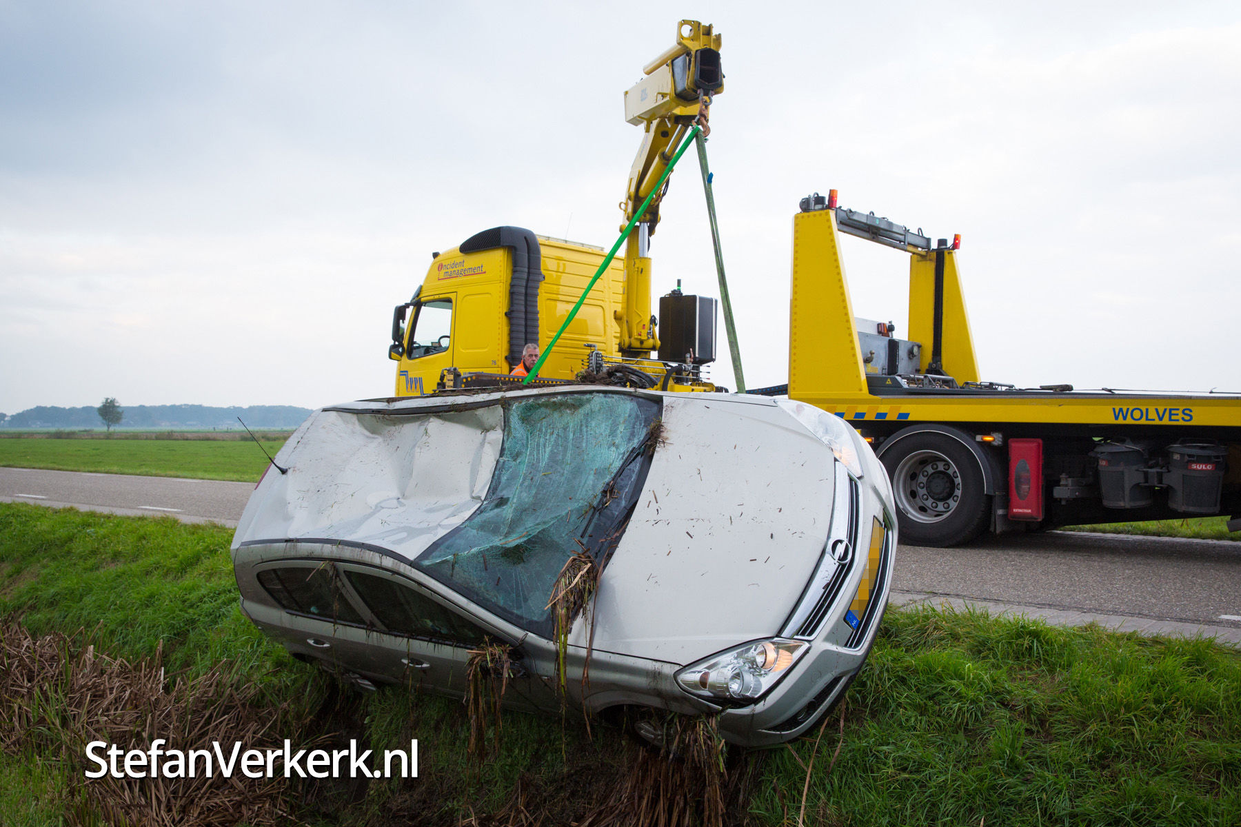 Foto's: Auto op de kop in de sloot Oosterweg Oldebroek