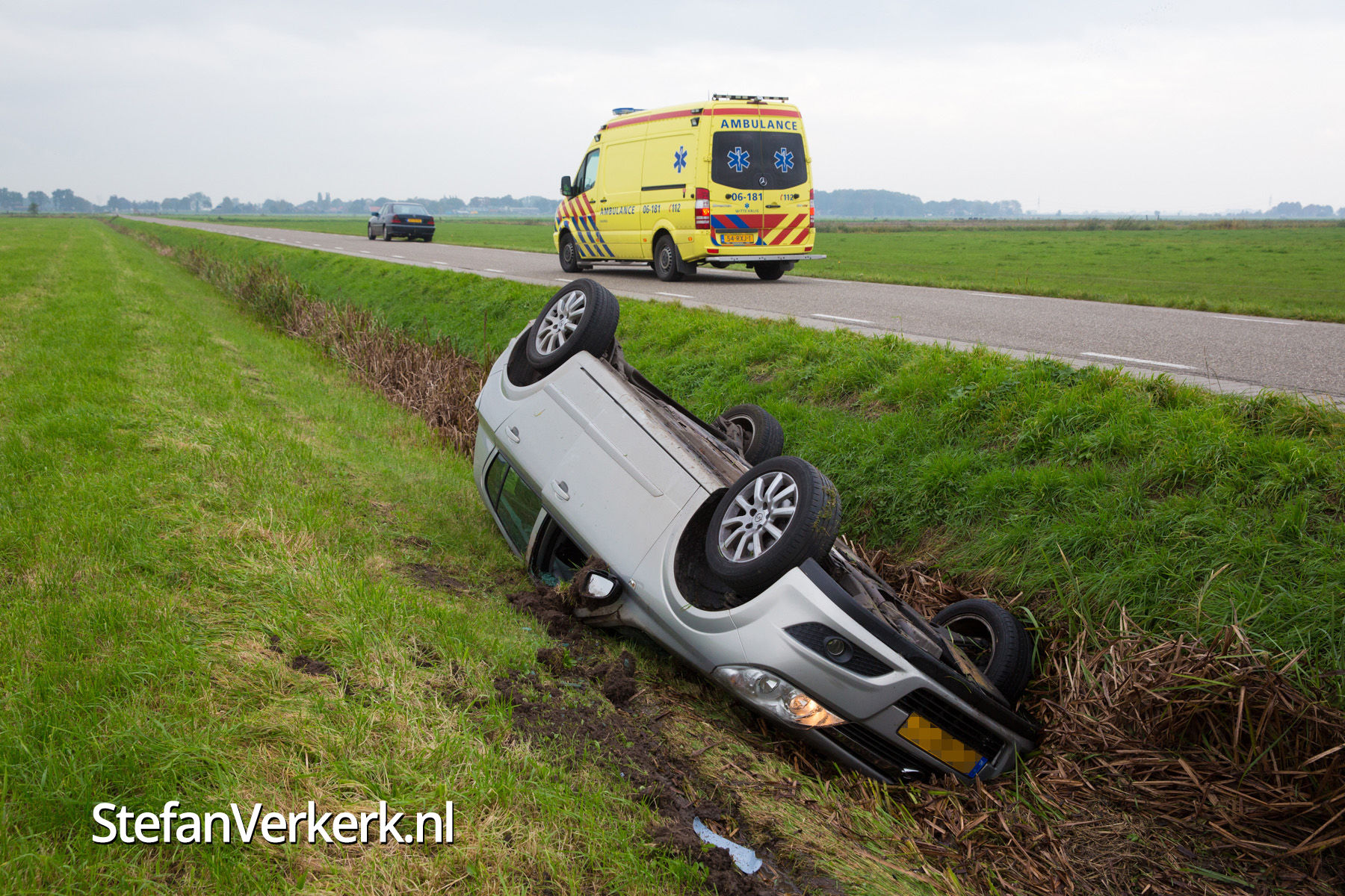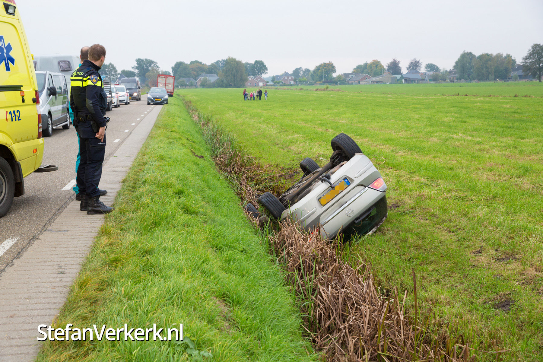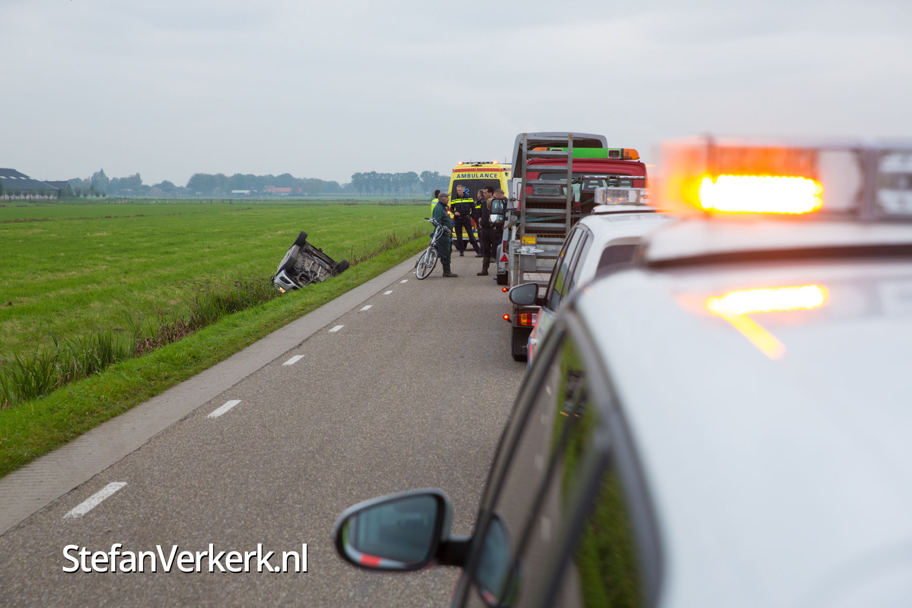 Foto's: Auto op de kop in de sloot Oosterweg Oldebroek