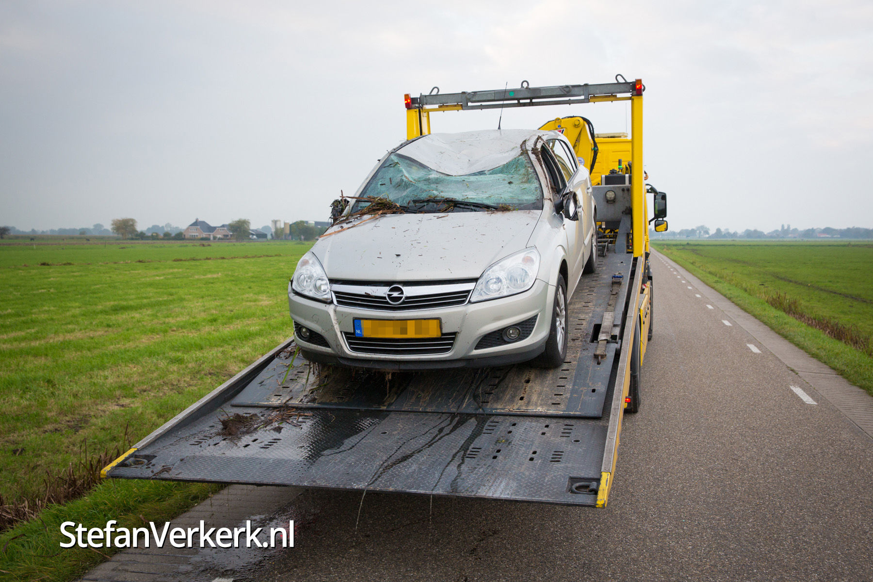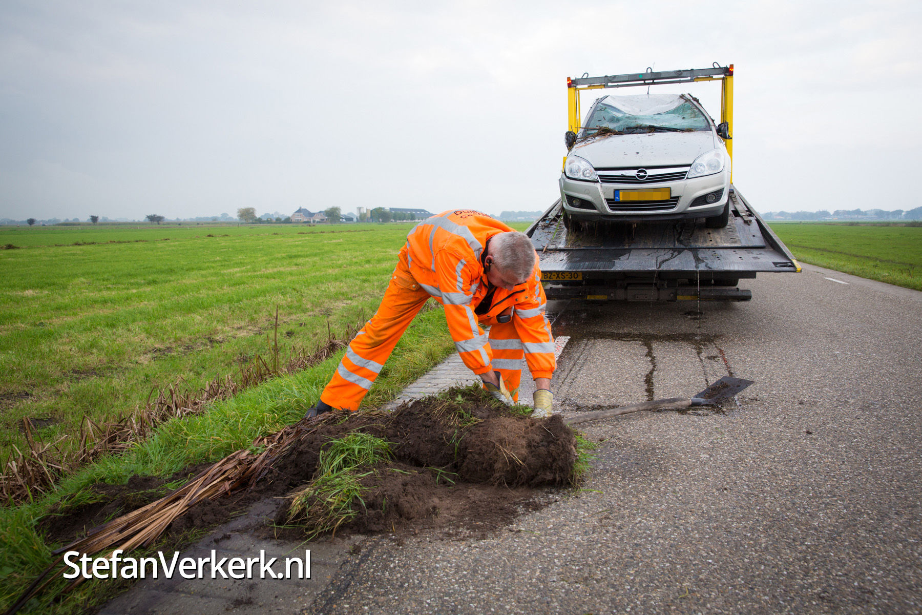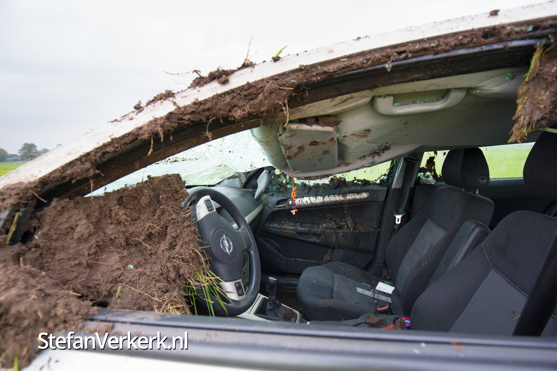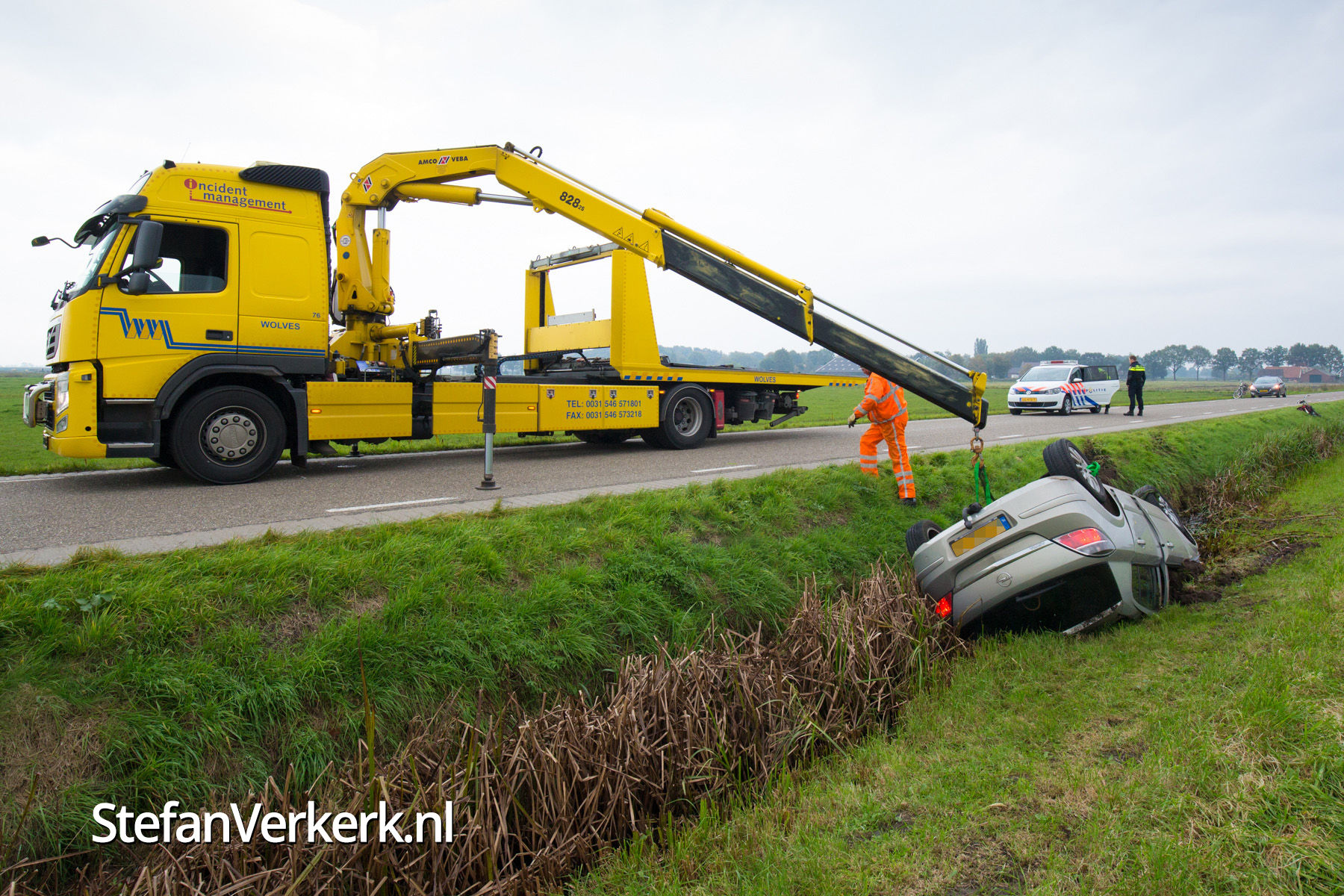 Foto's: Auto op de kop in de sloot Oosterweg Oldebroek