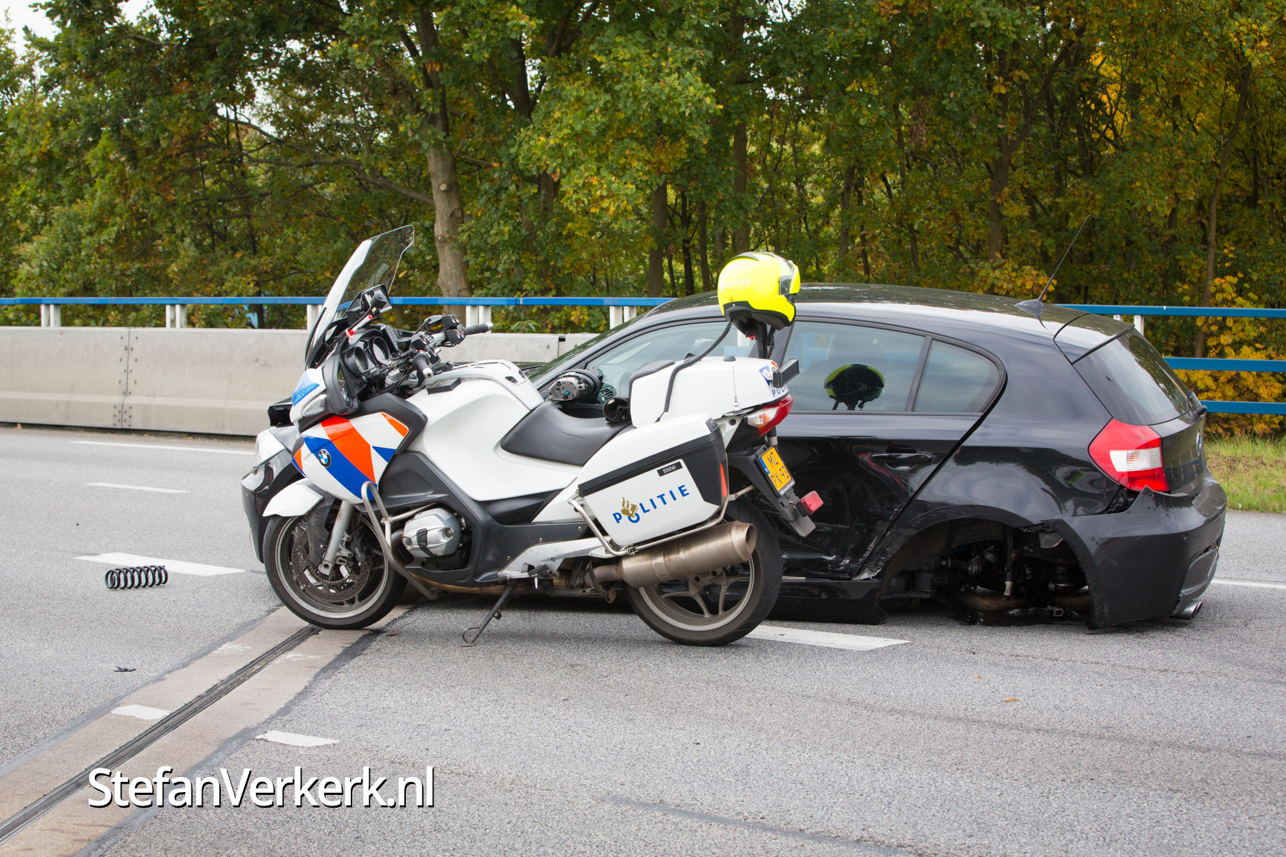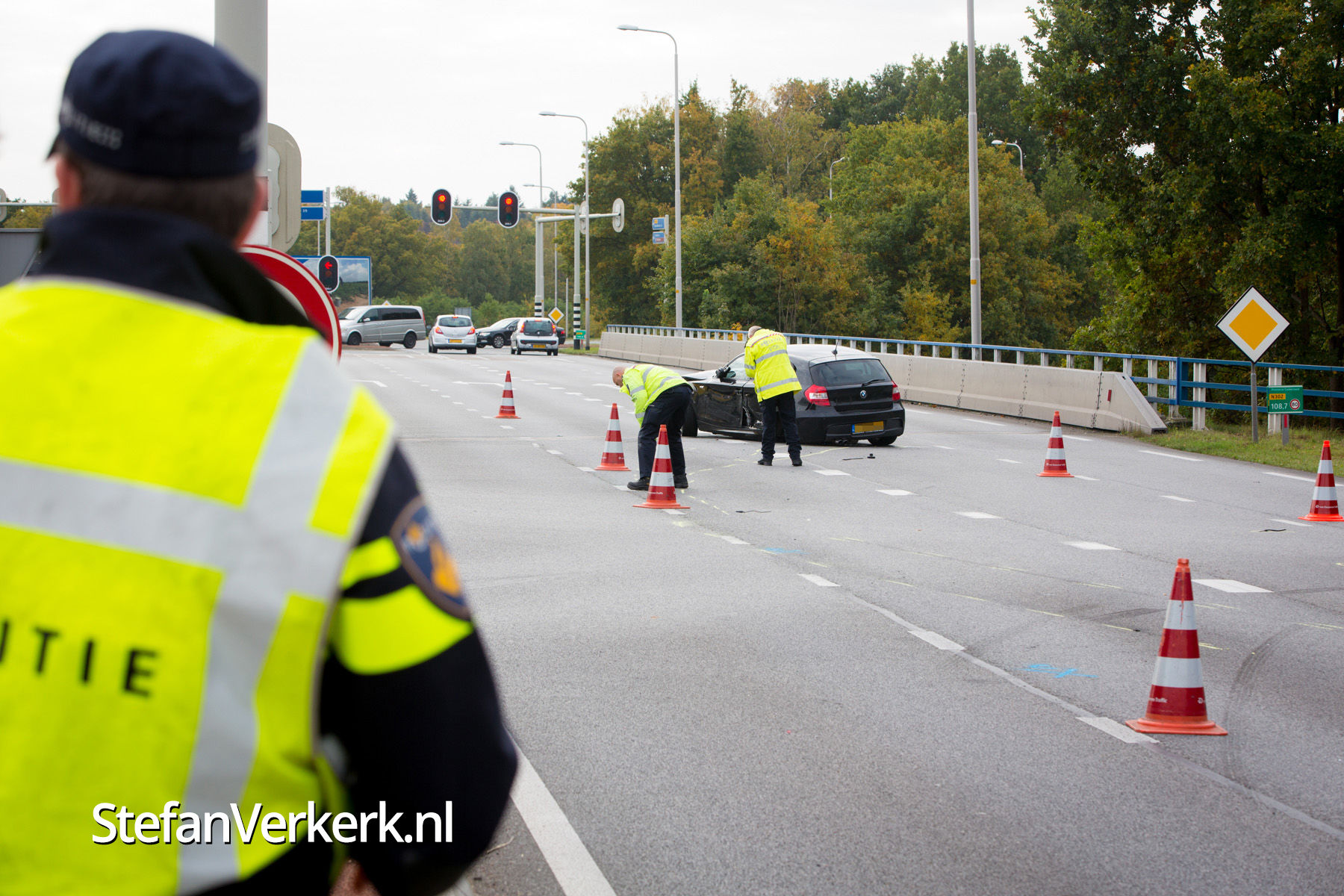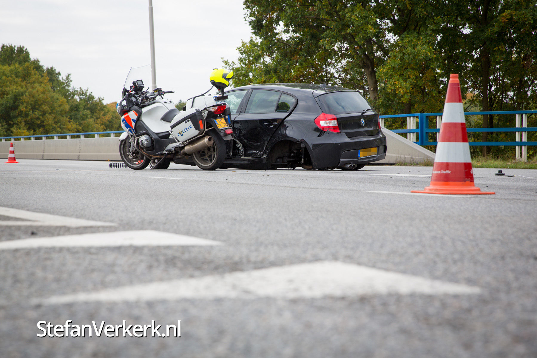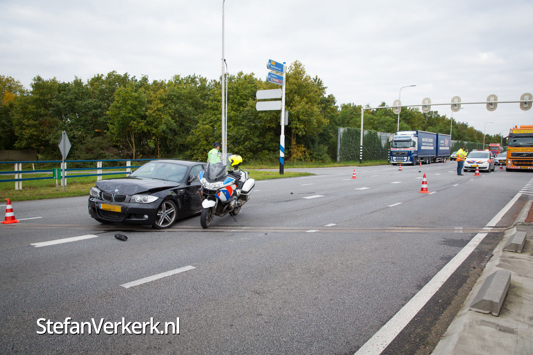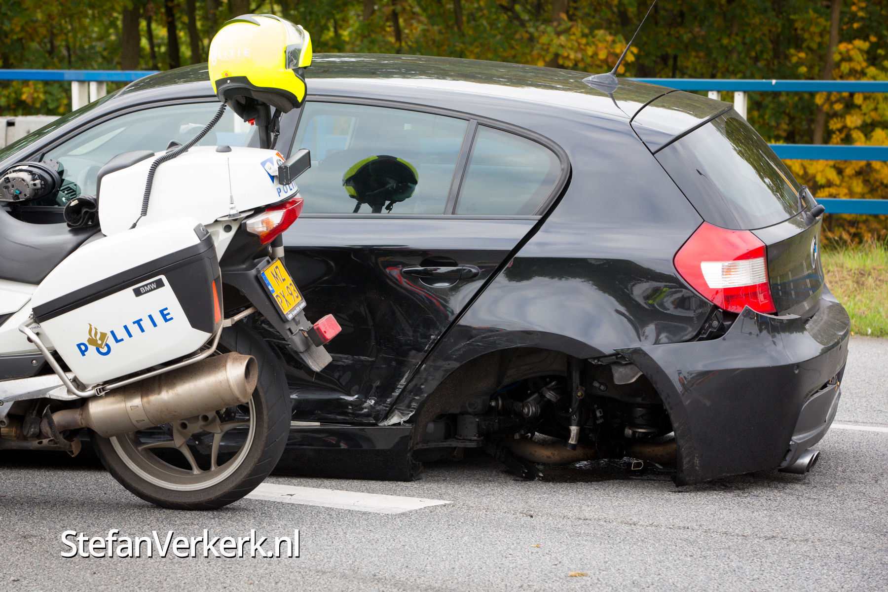 Foto's: Politieachtervolging eindigt in crash op N302 Harderwijk