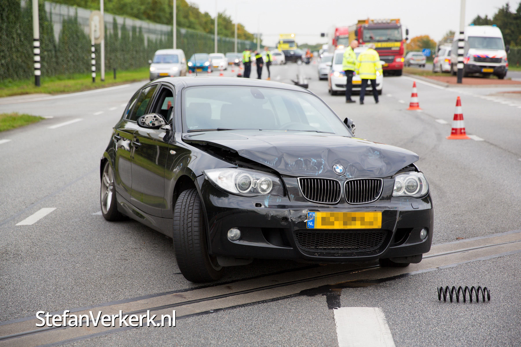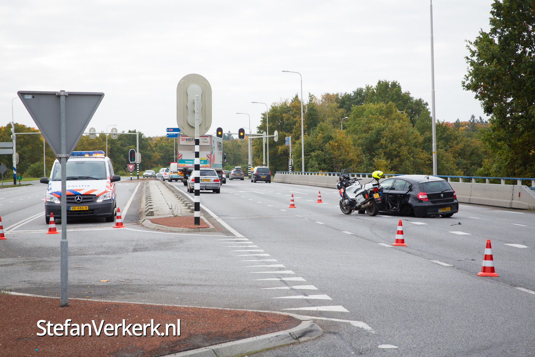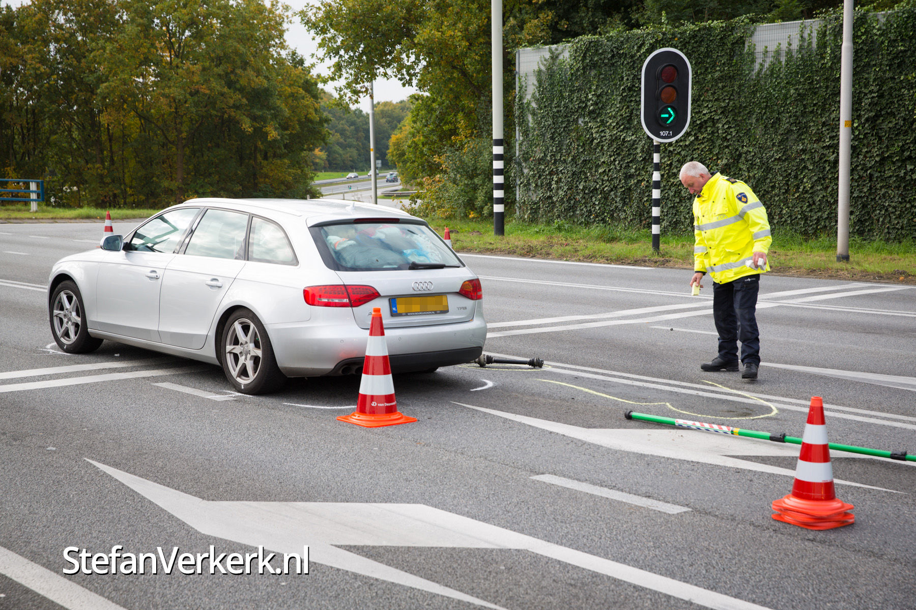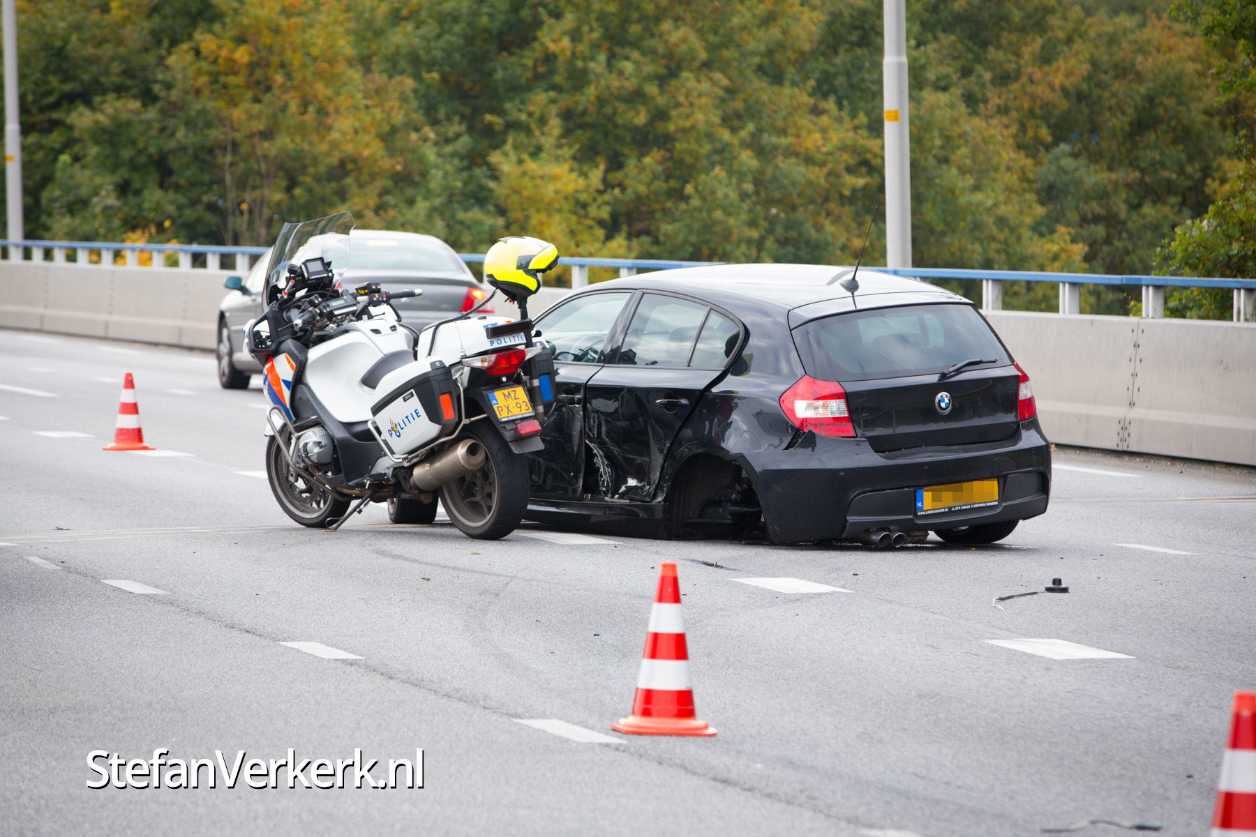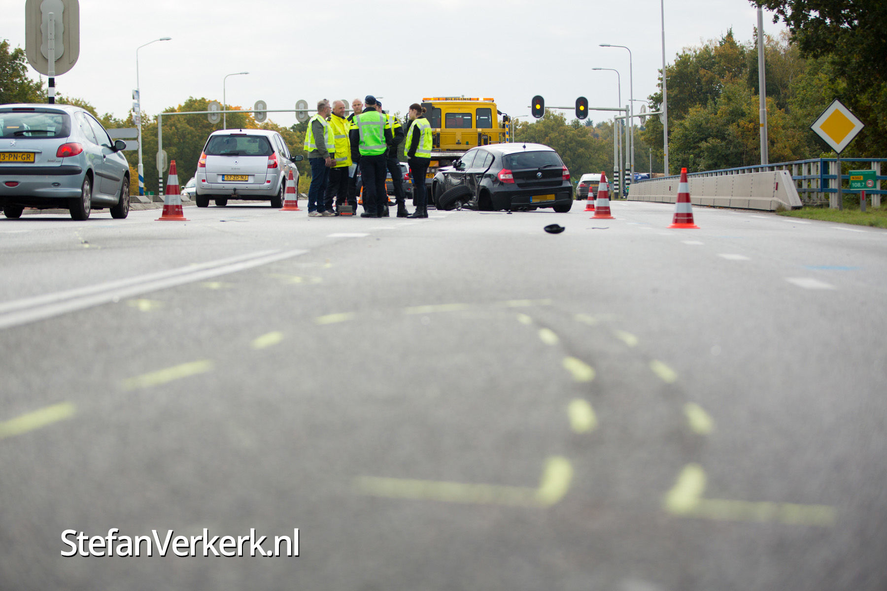 Foto's: Politieachtervolging eindigt in crash op N302 Harderwijk