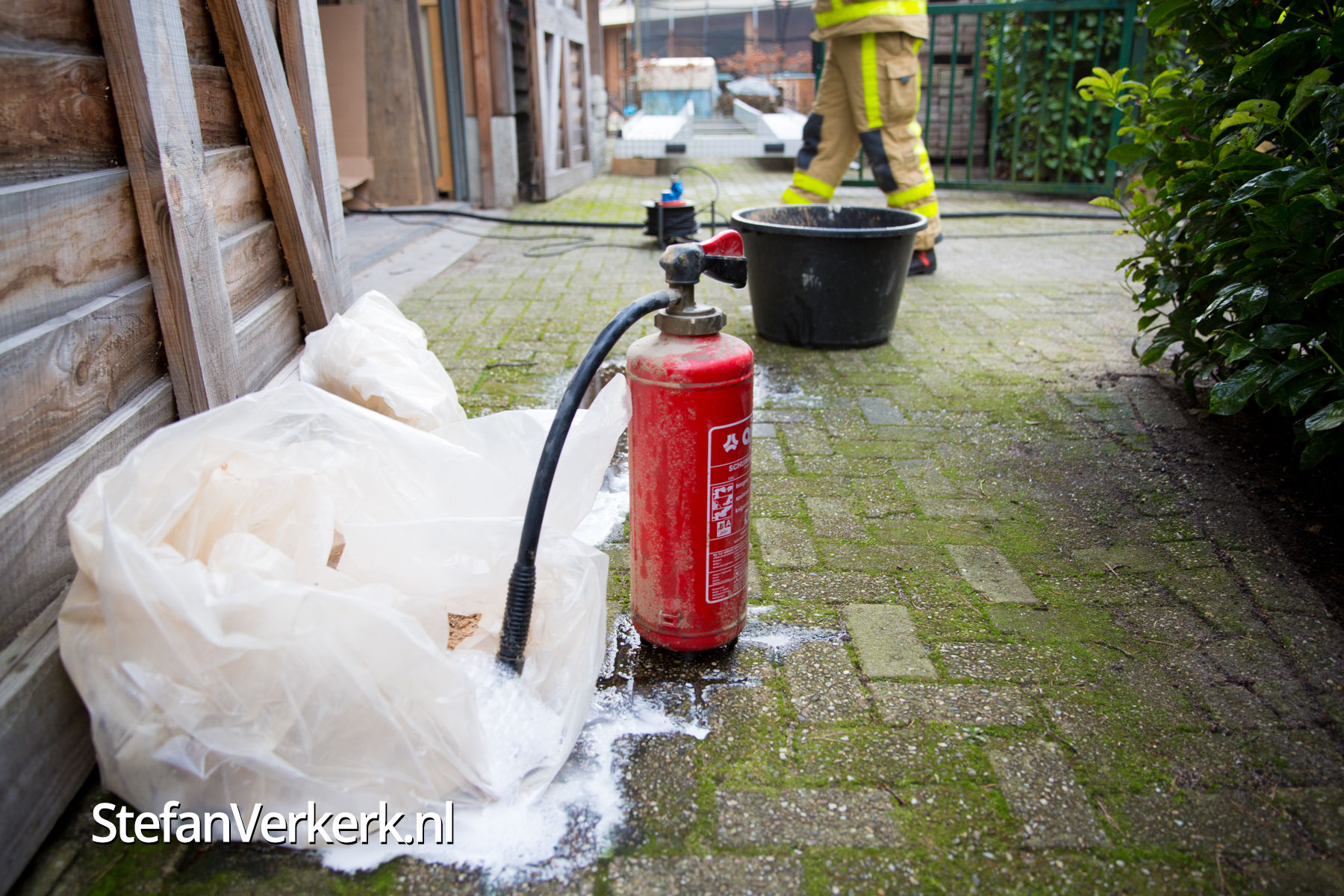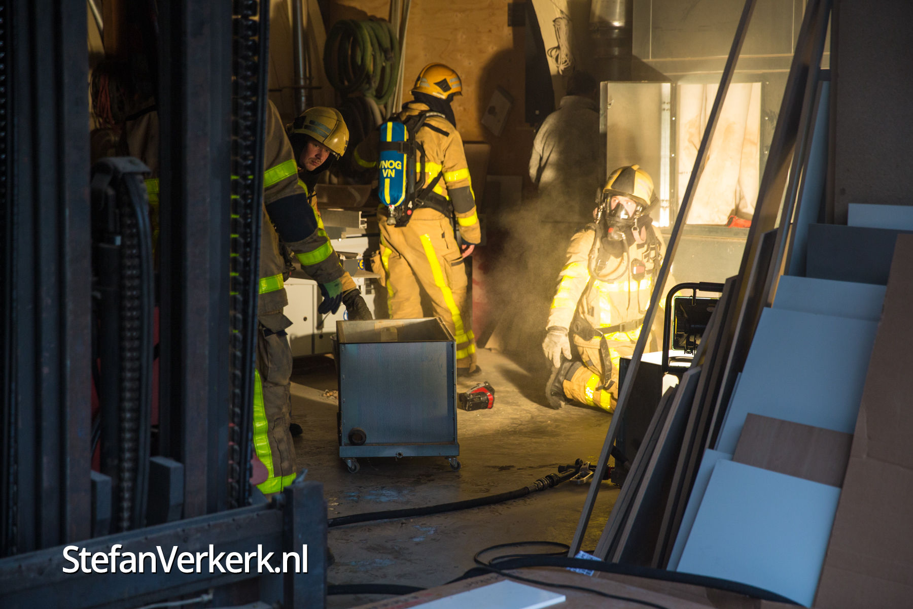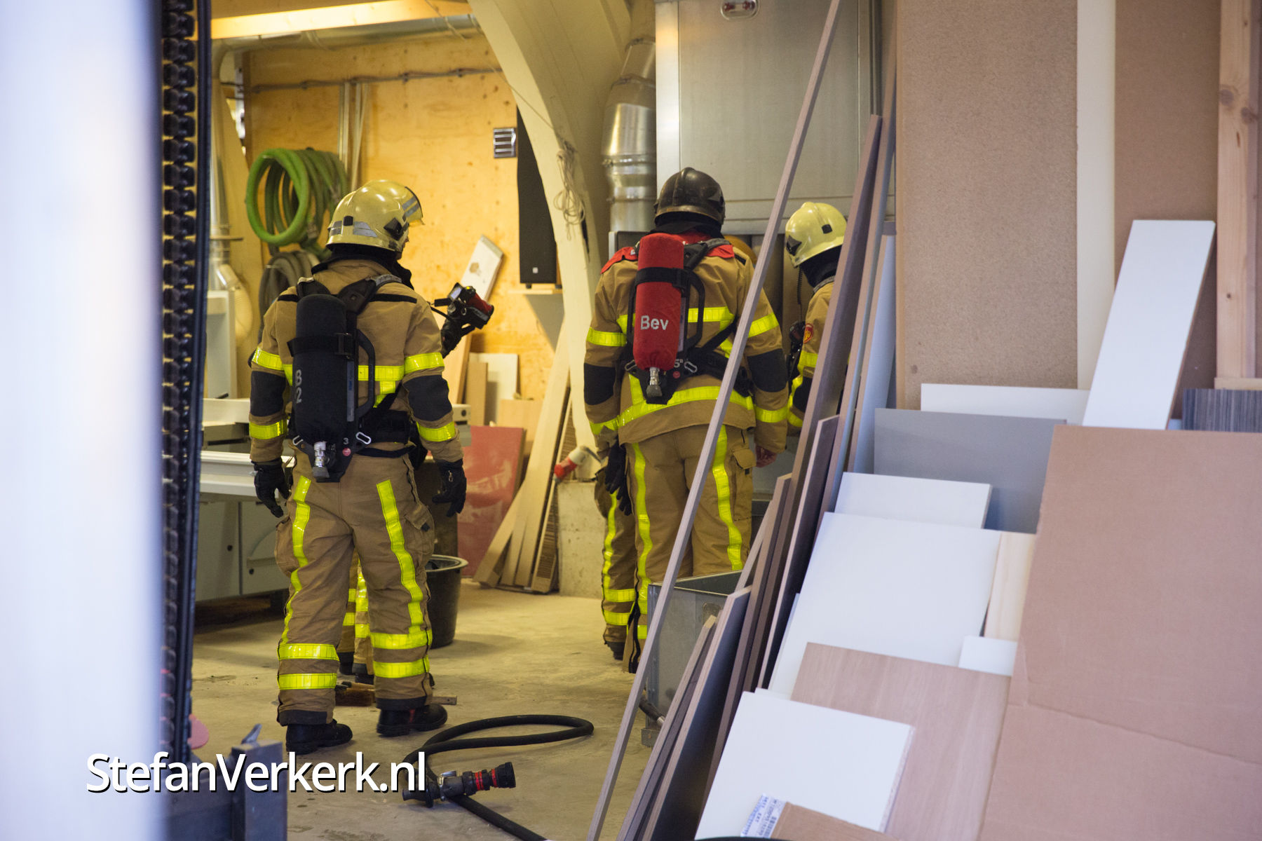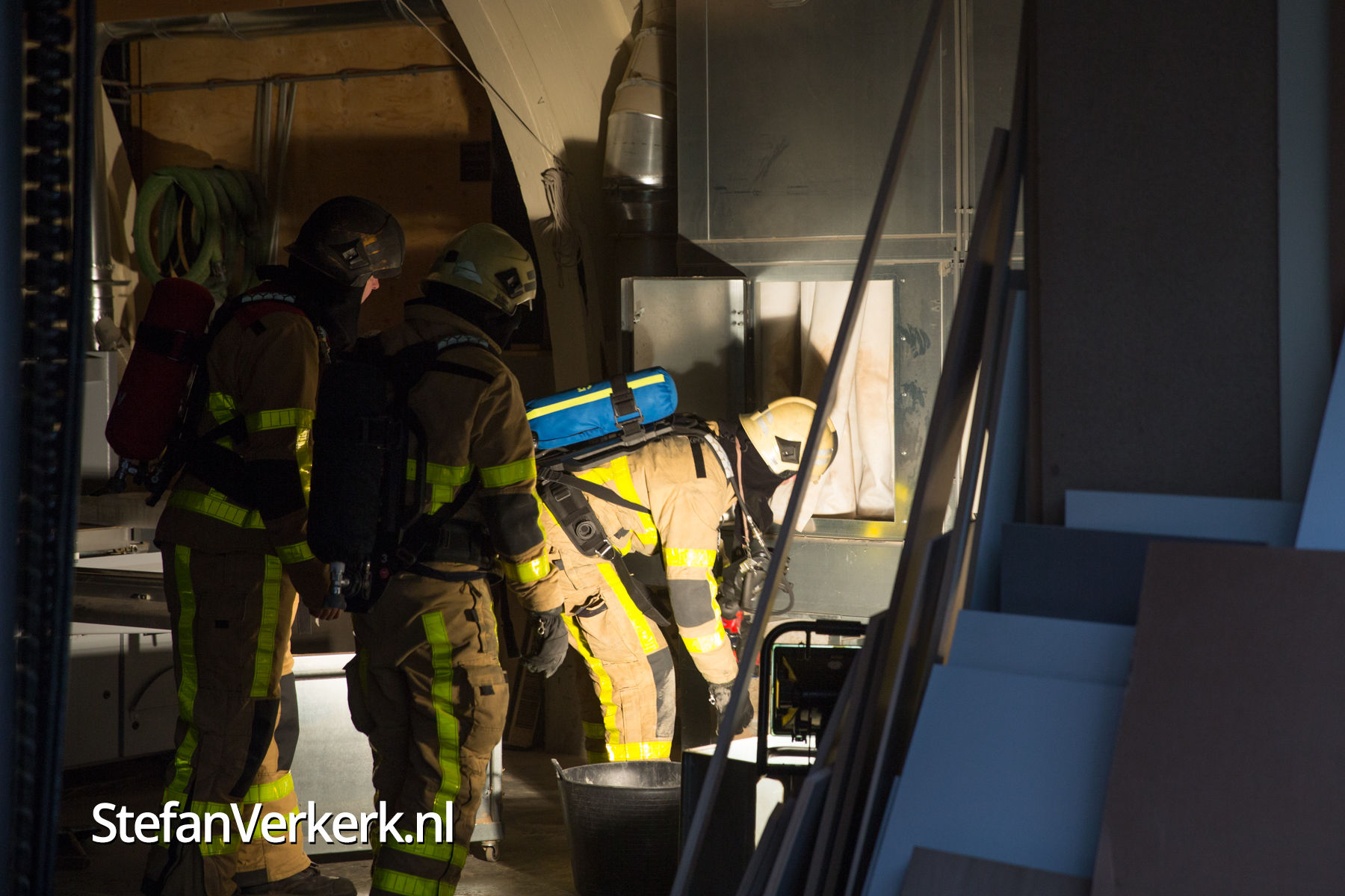 Foto's: Smeulend hout in afzuiginstallatie houtzagerij Prins Mauritslaan Wezep