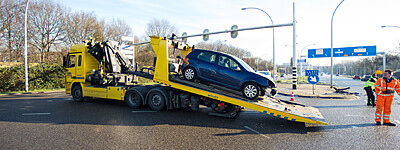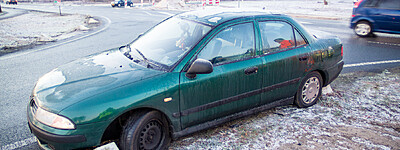 Auto vast tussen bermblokken oprit A28 R 't Harde