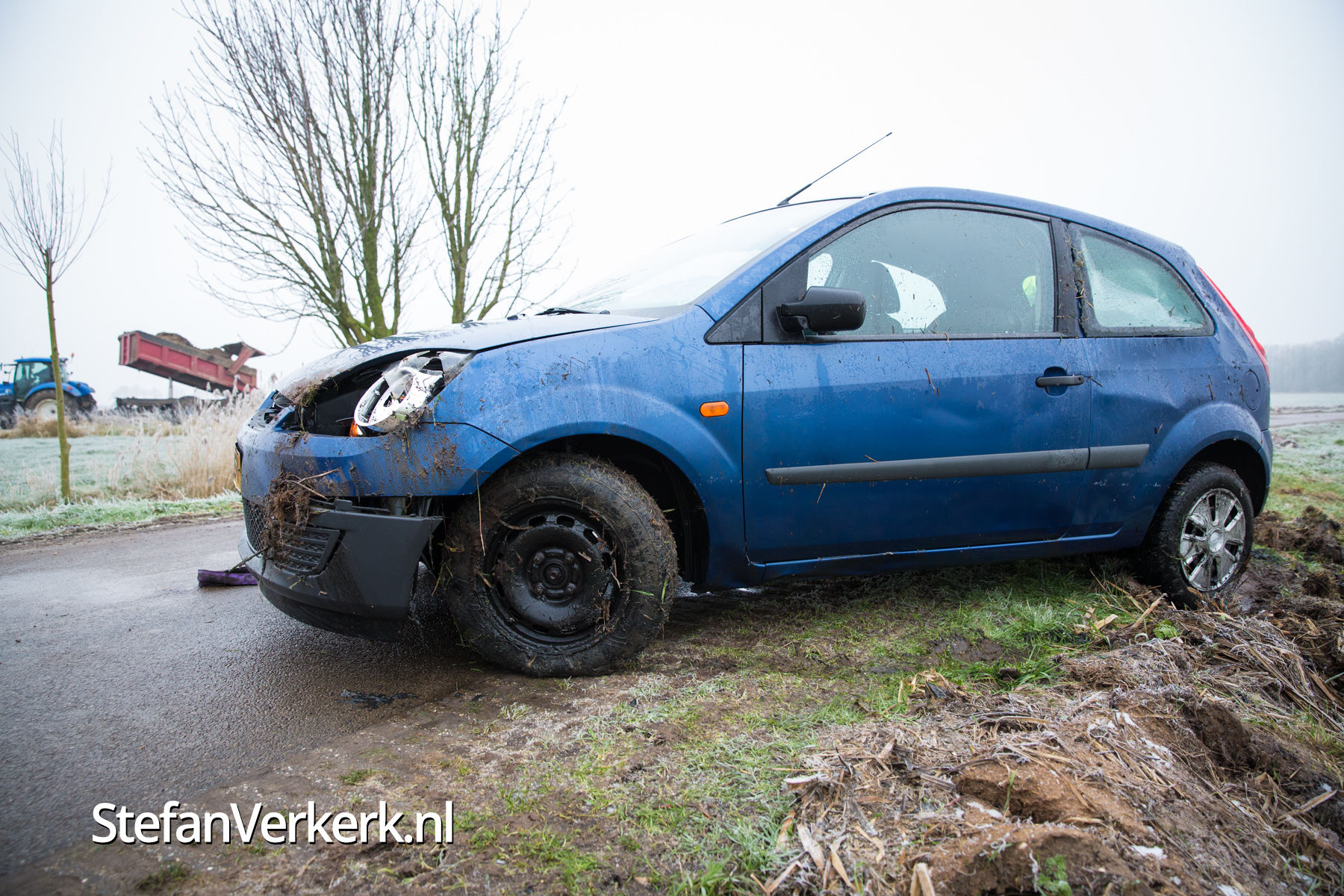Foto's: Auto van de weg door gladheid Kavelweg Heerde
