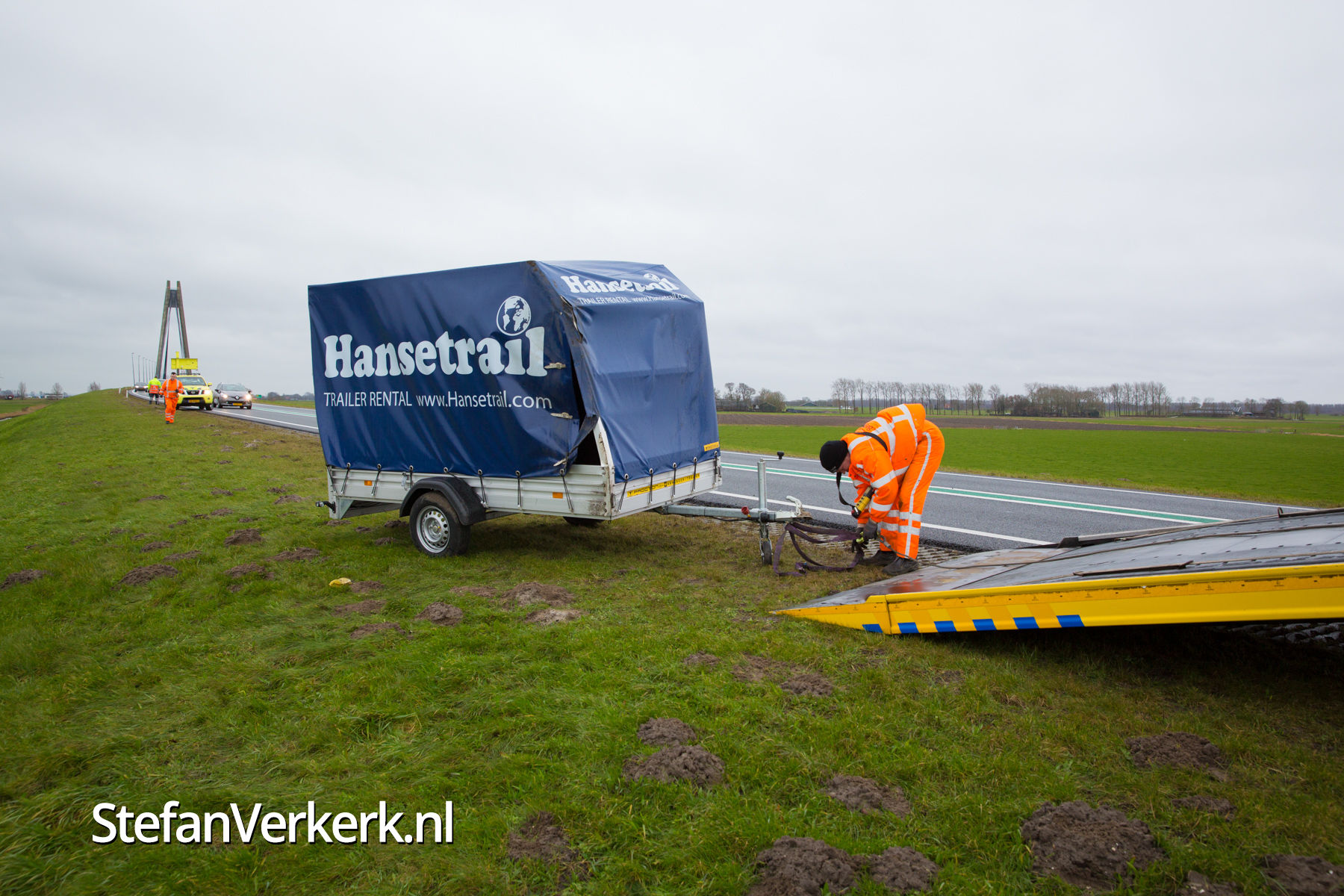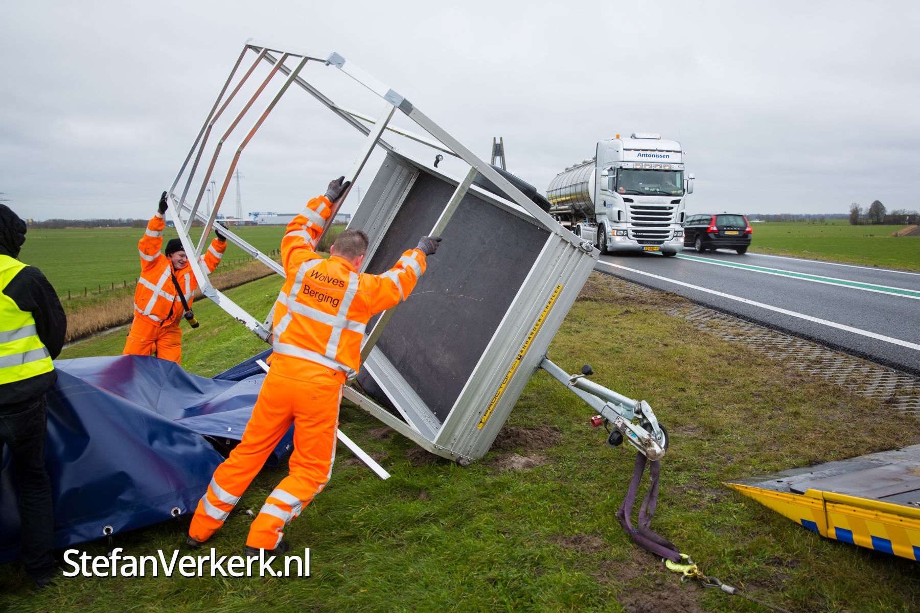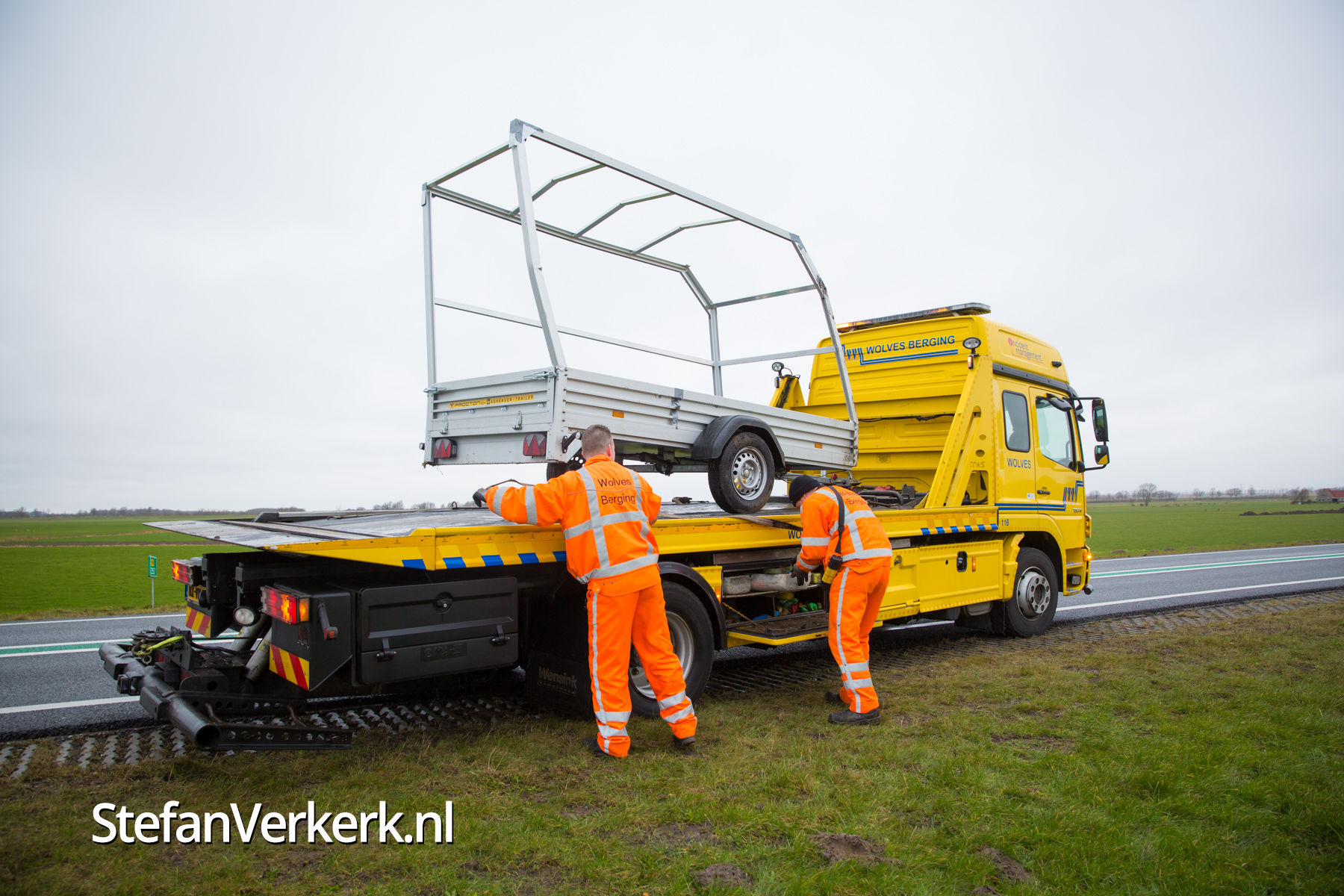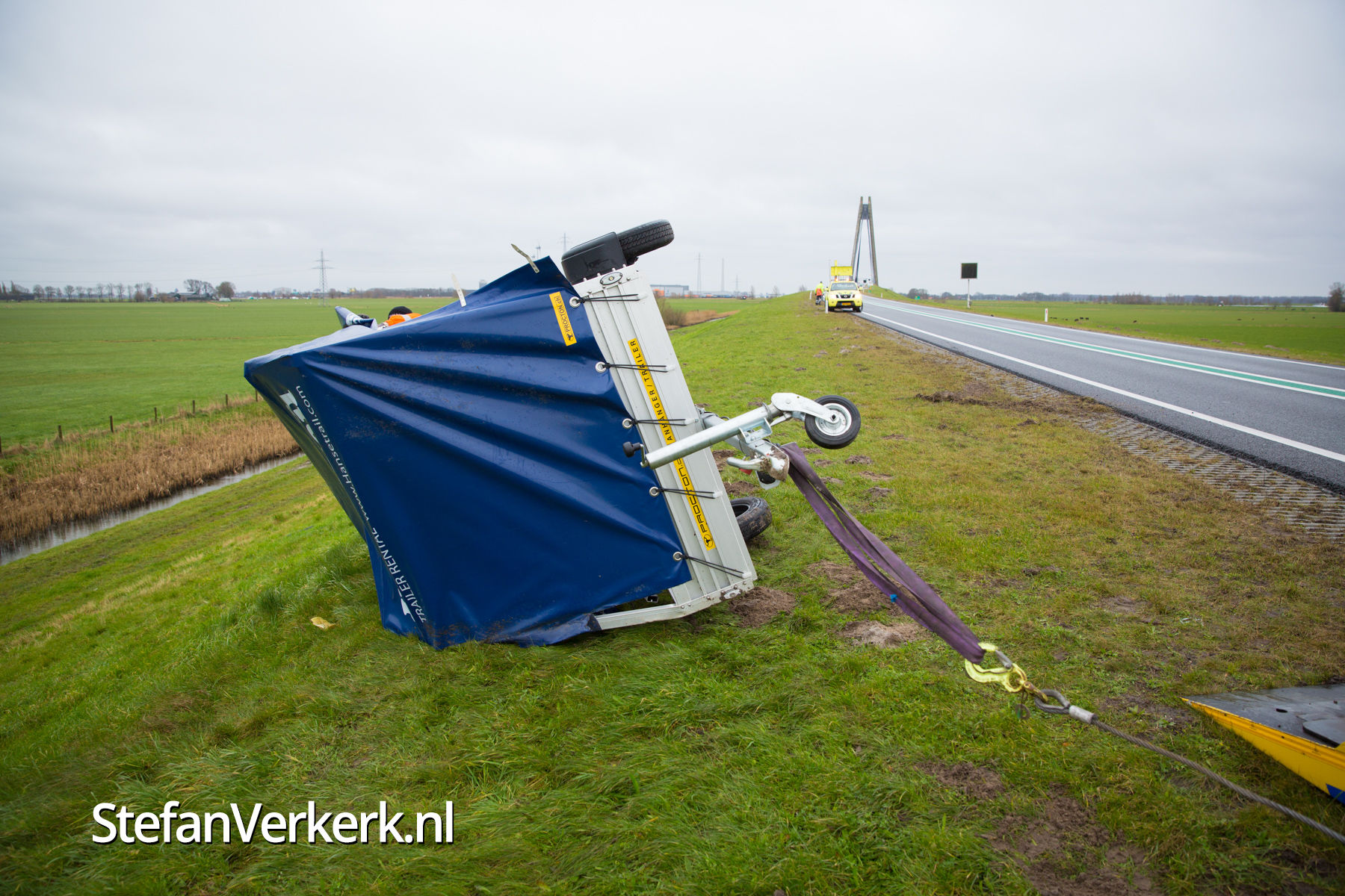Foto's: Aanhanger gekanteld door harde wind op N50 bij Kampen