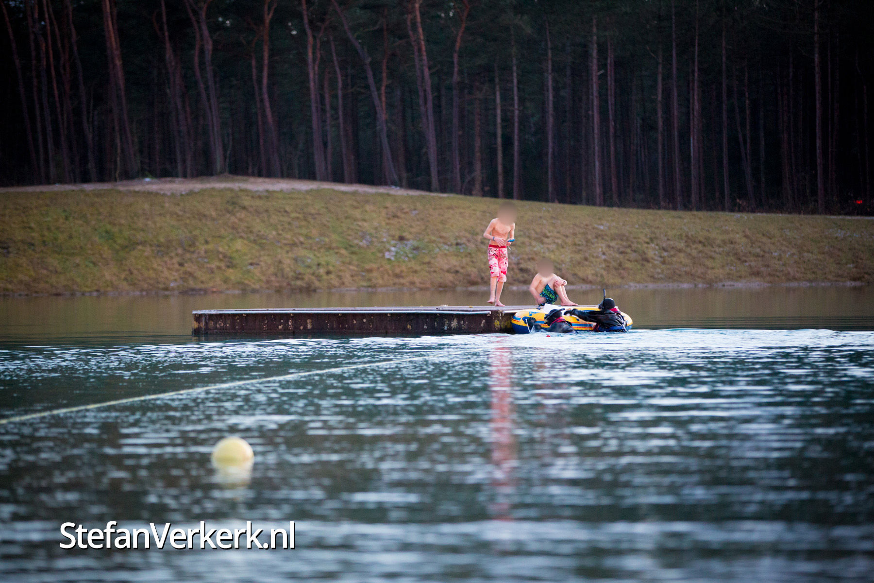 Foto's: Jongens vast op vlot Zandenplas Nunspeet