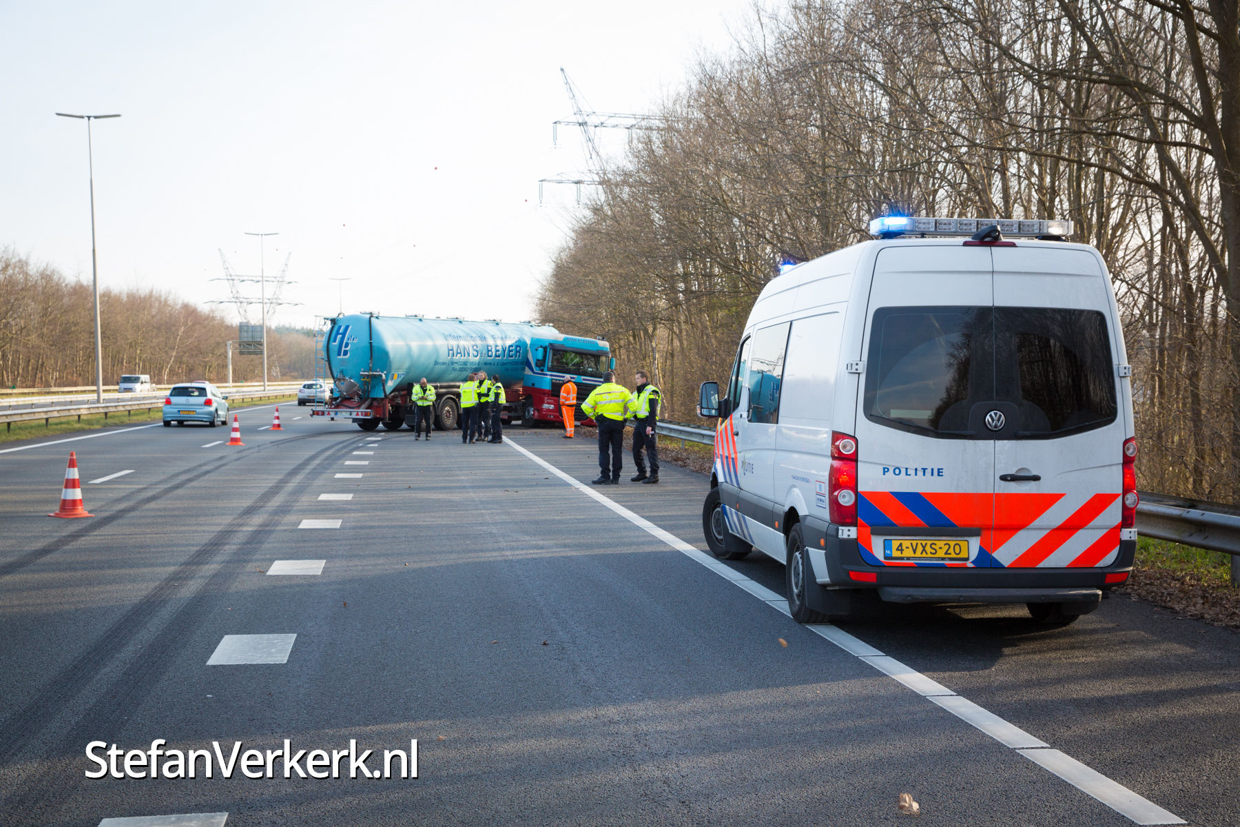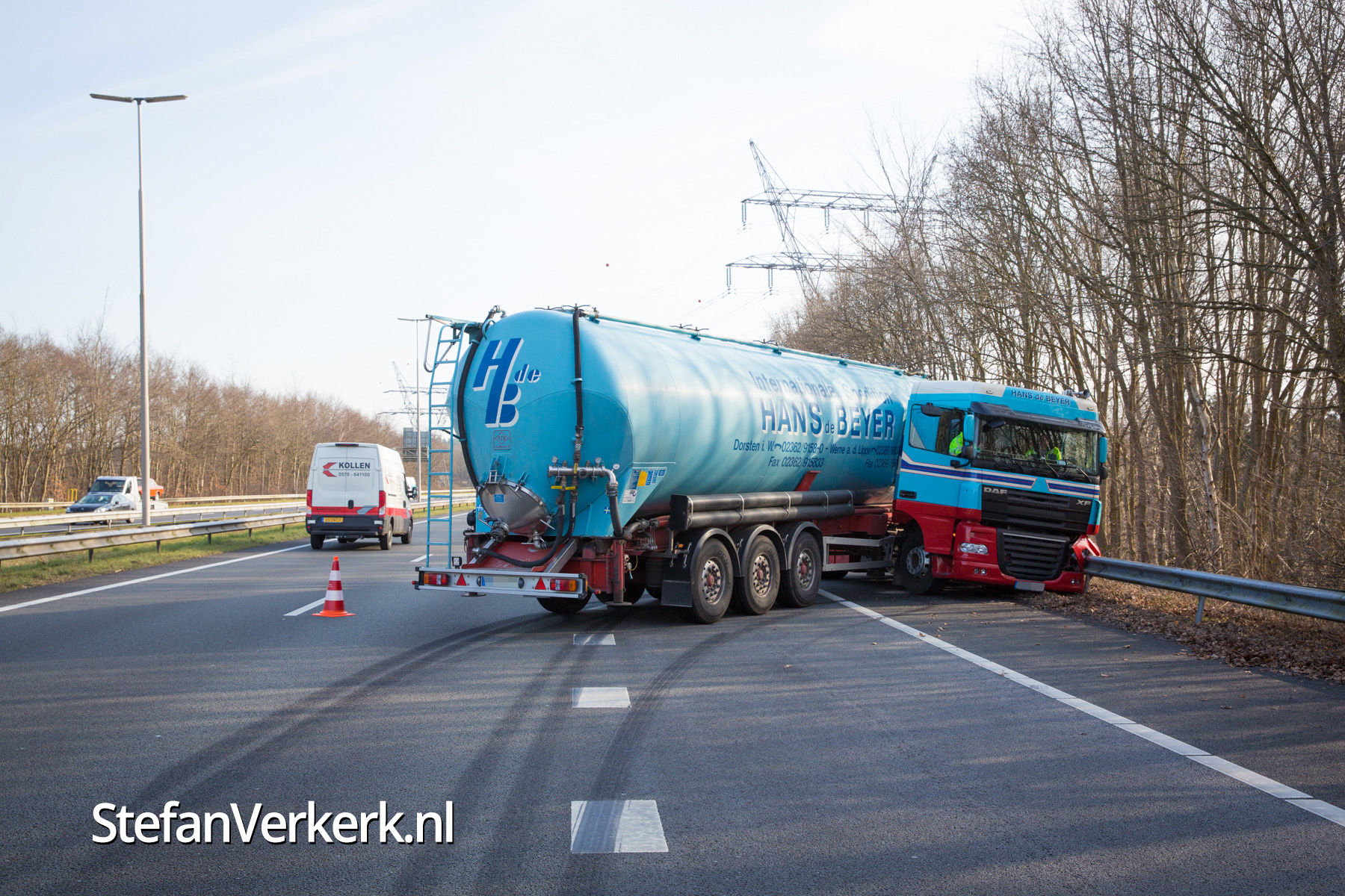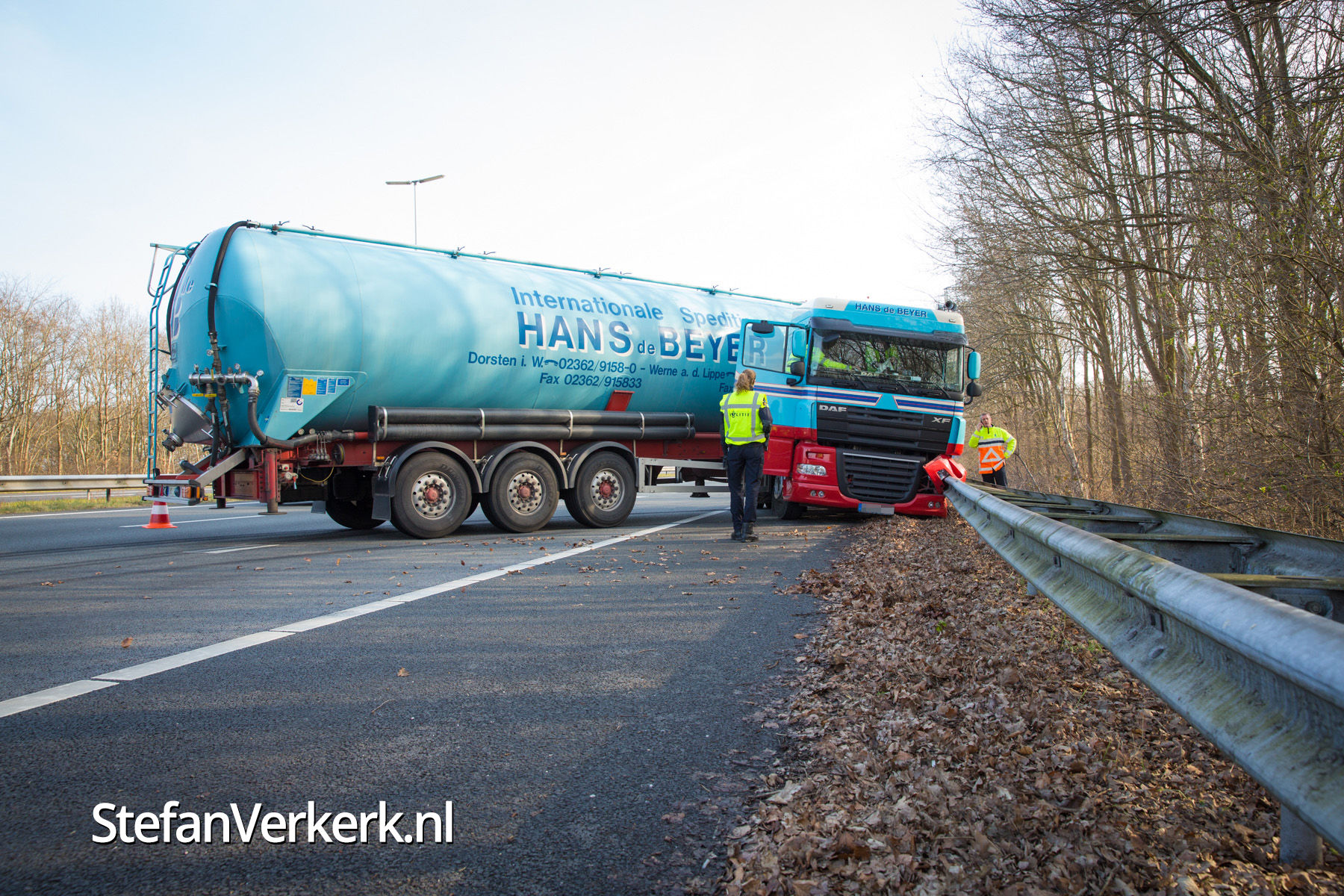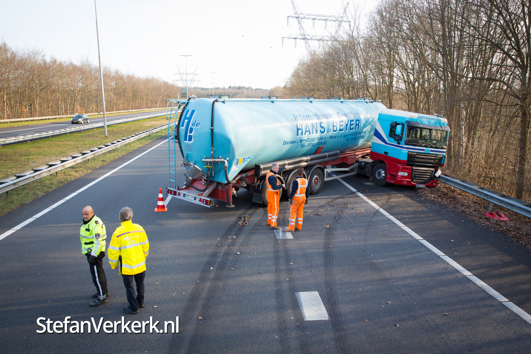 Foto's: Vrachtwagen geschaard op de A50 bij Hattem