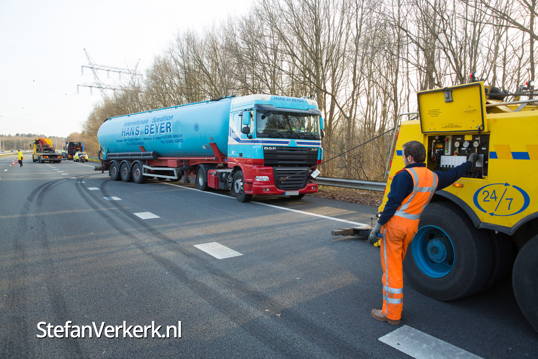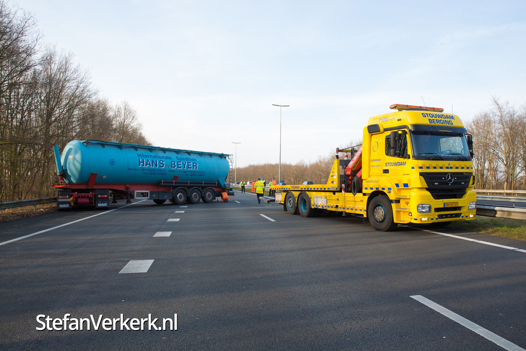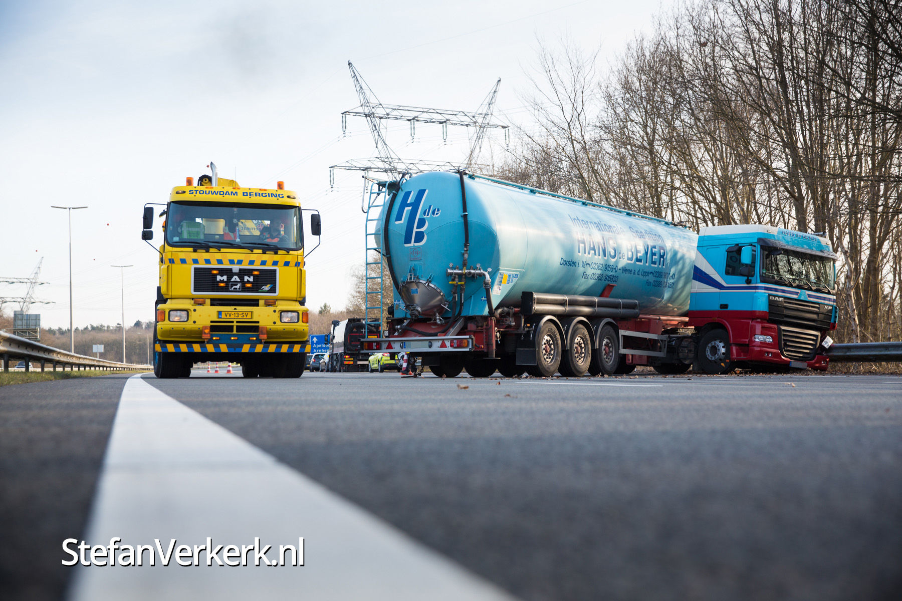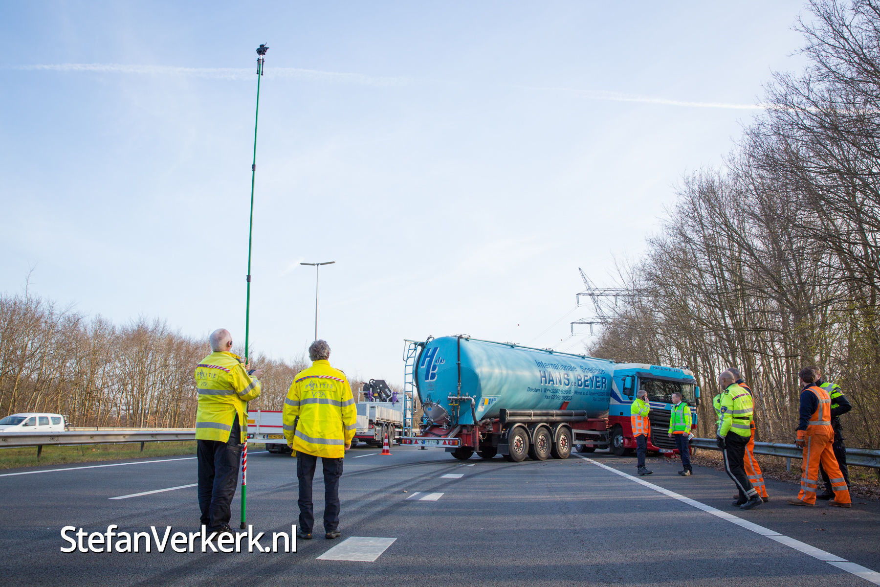 Foto's: Vrachtwagen geschaard op de A50 bij Hattem