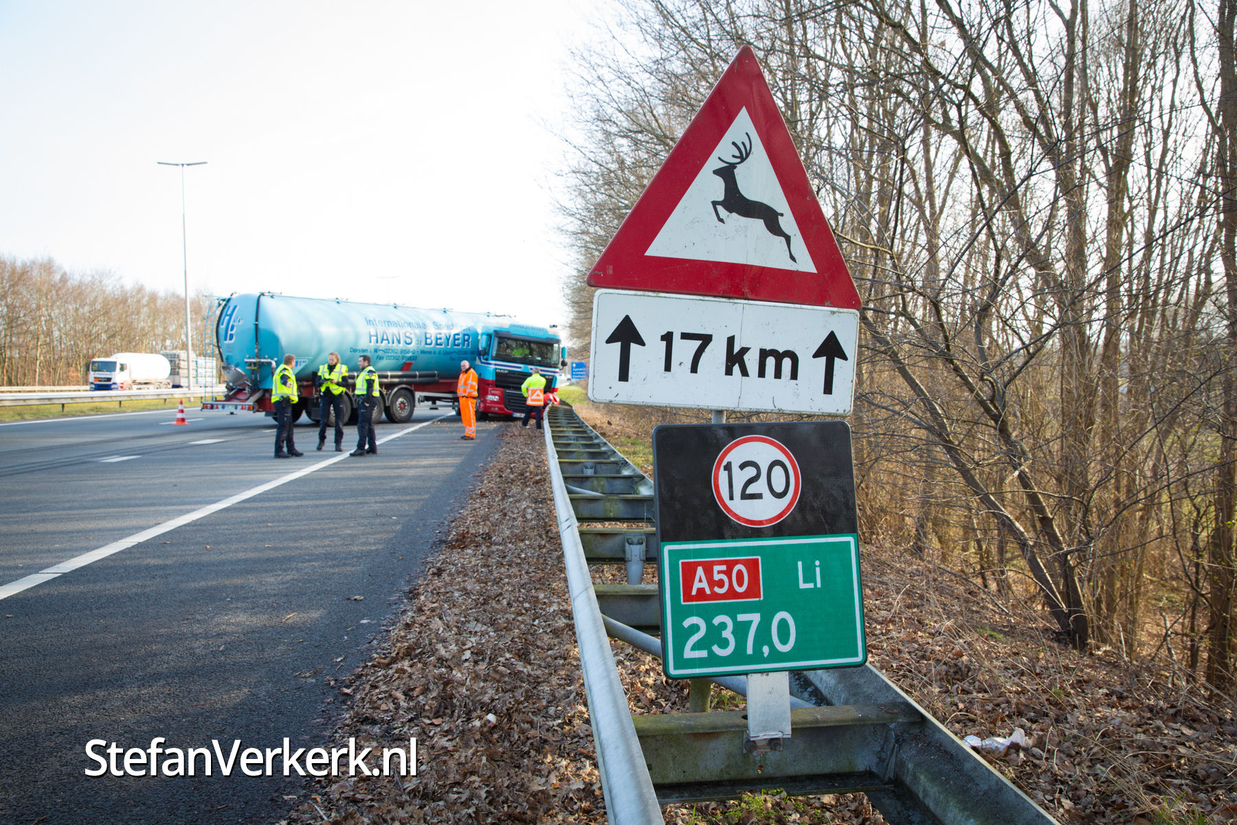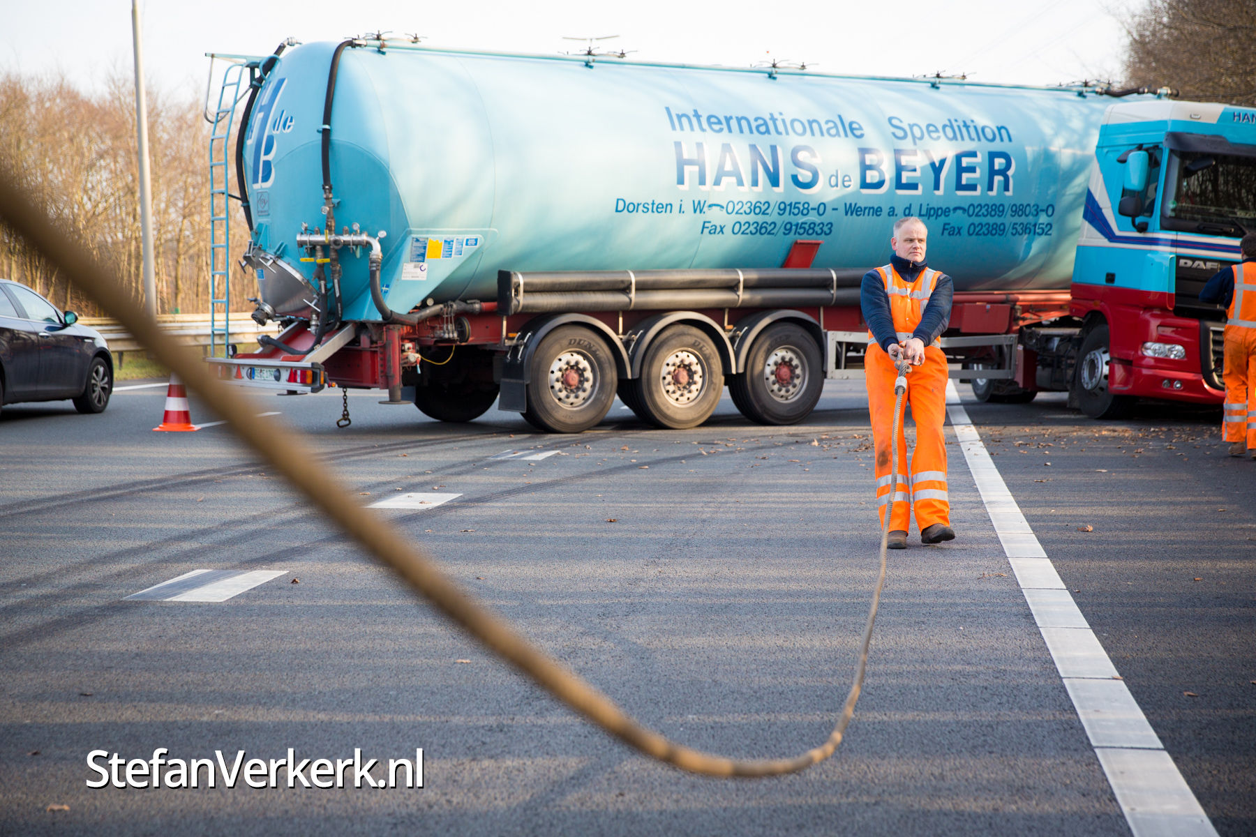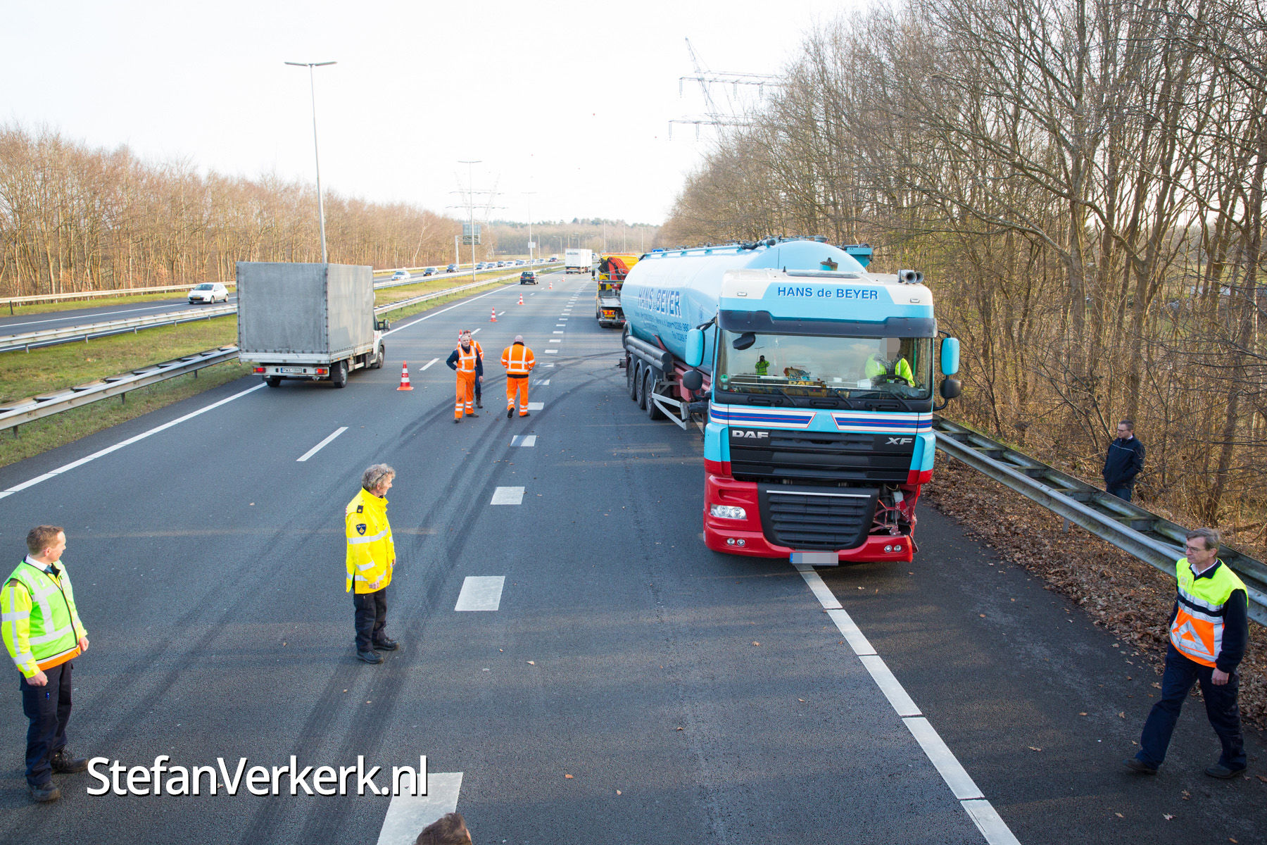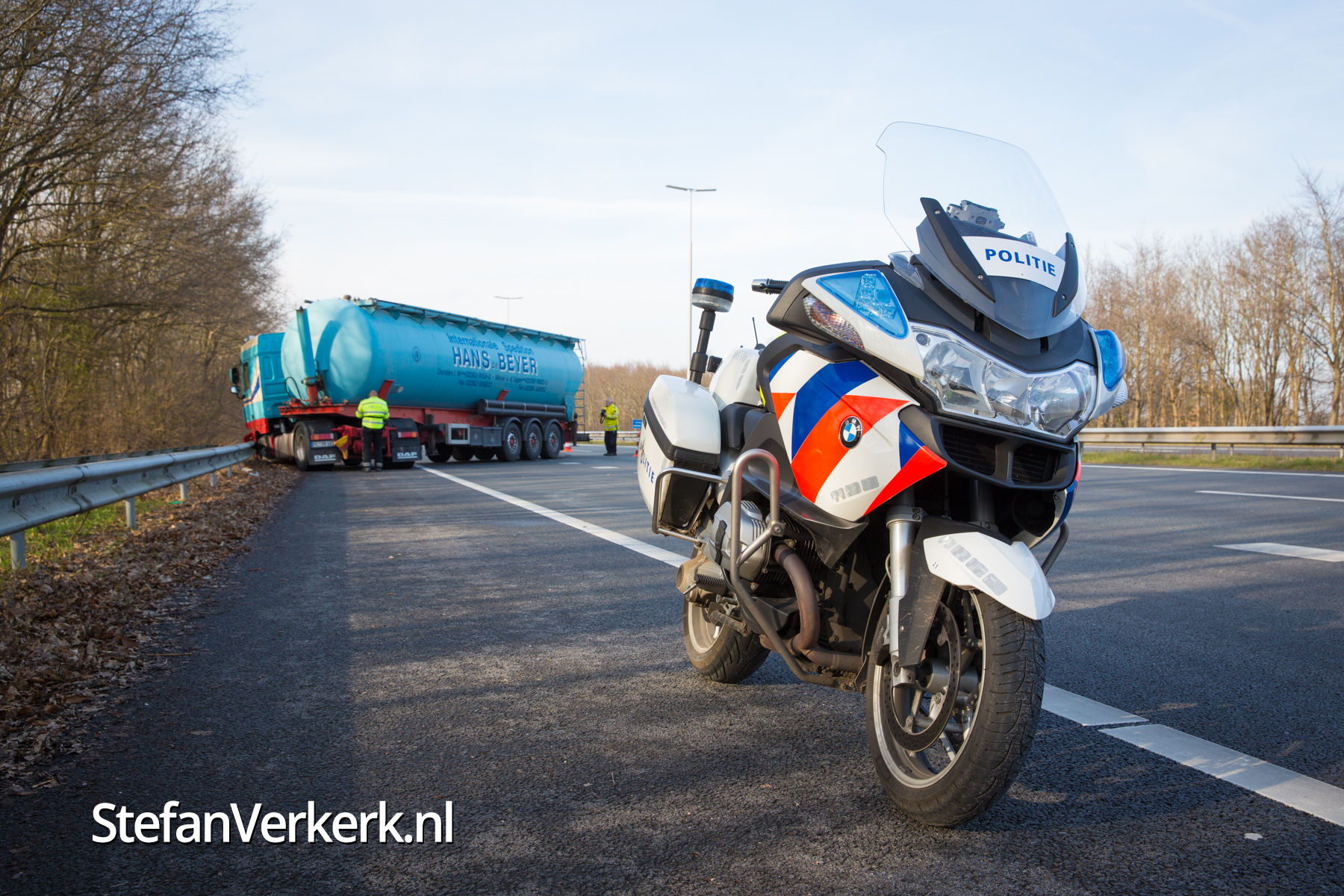 Foto's: Vrachtwagen geschaard op de A50 bij Hattem
