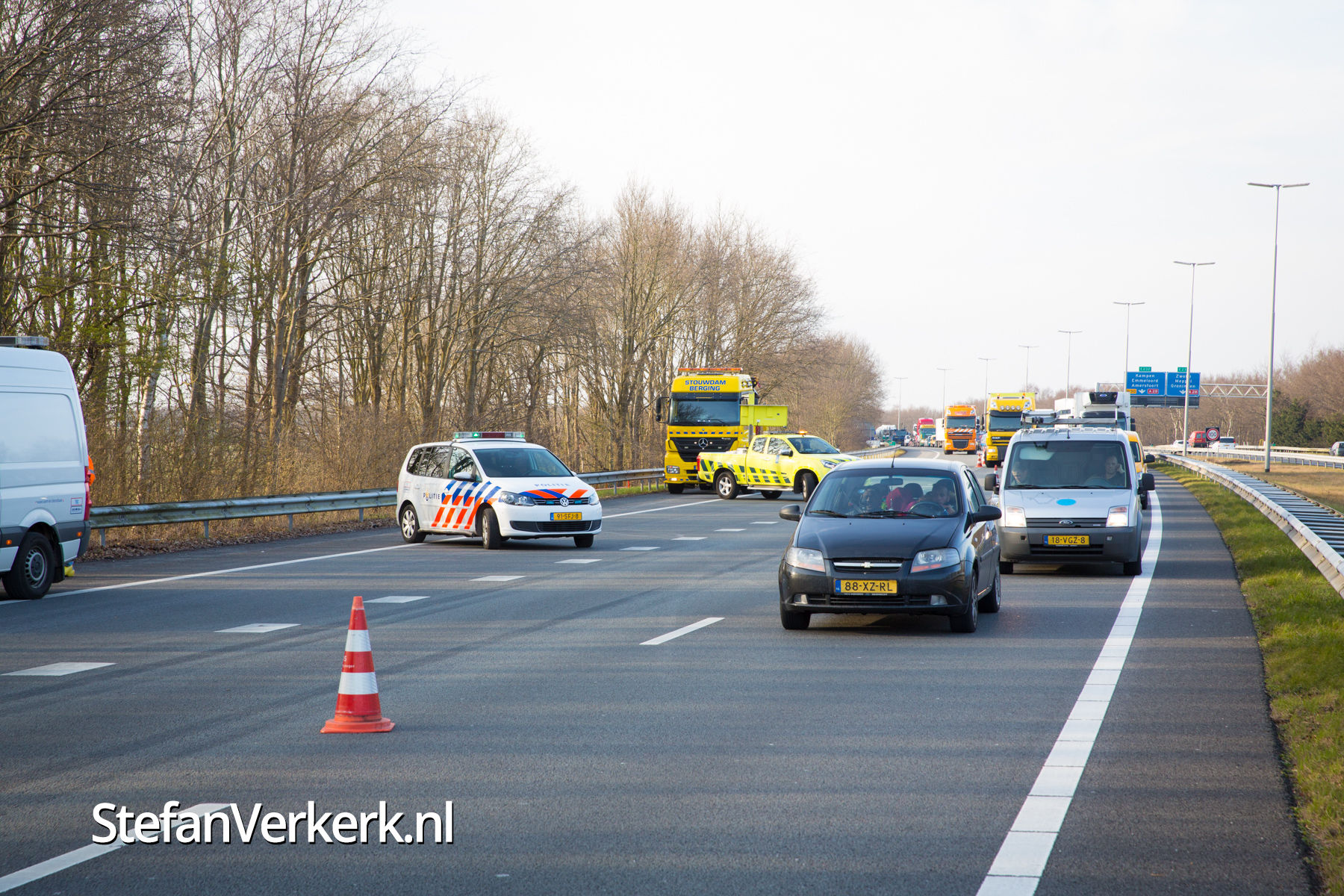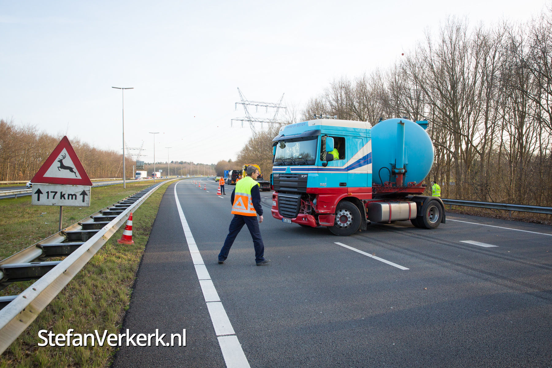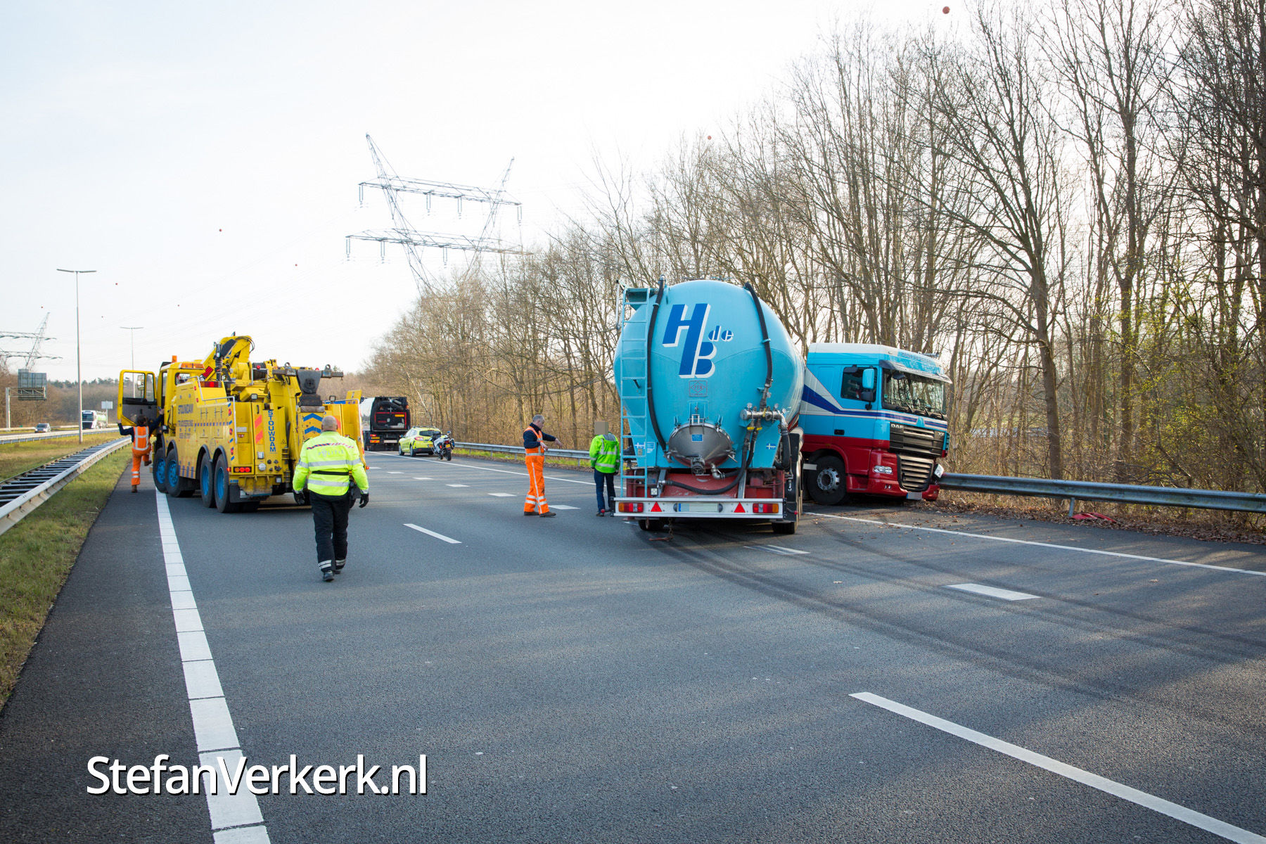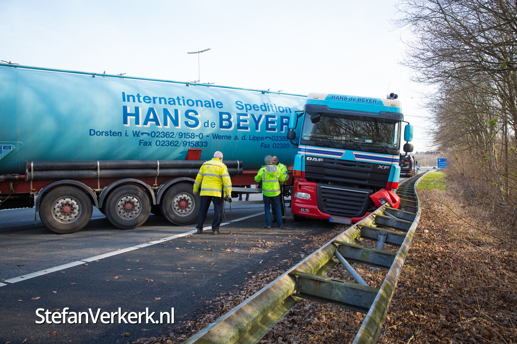 Foto's: Vrachtwagen geschaard op de A50 bij Hattem