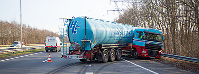 Vrachtwagen geschaard op de A50 bij Hattem