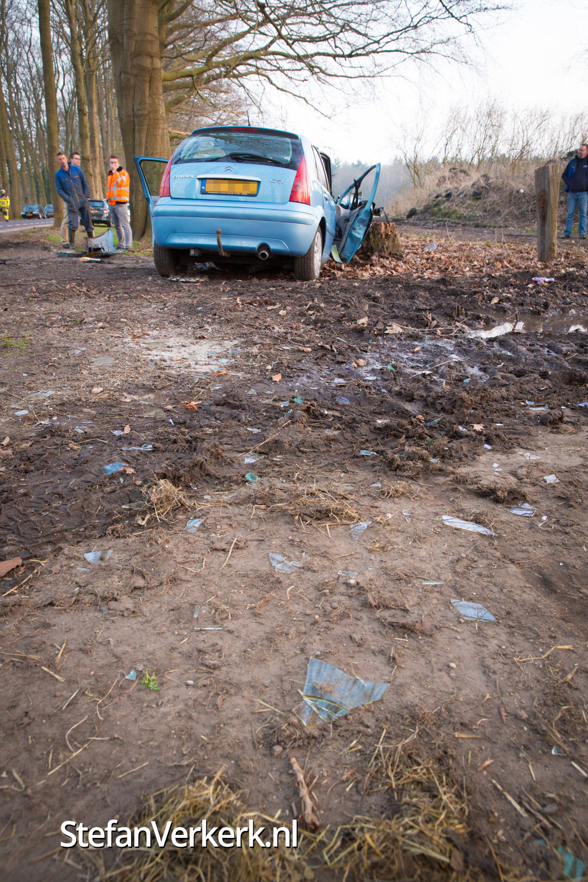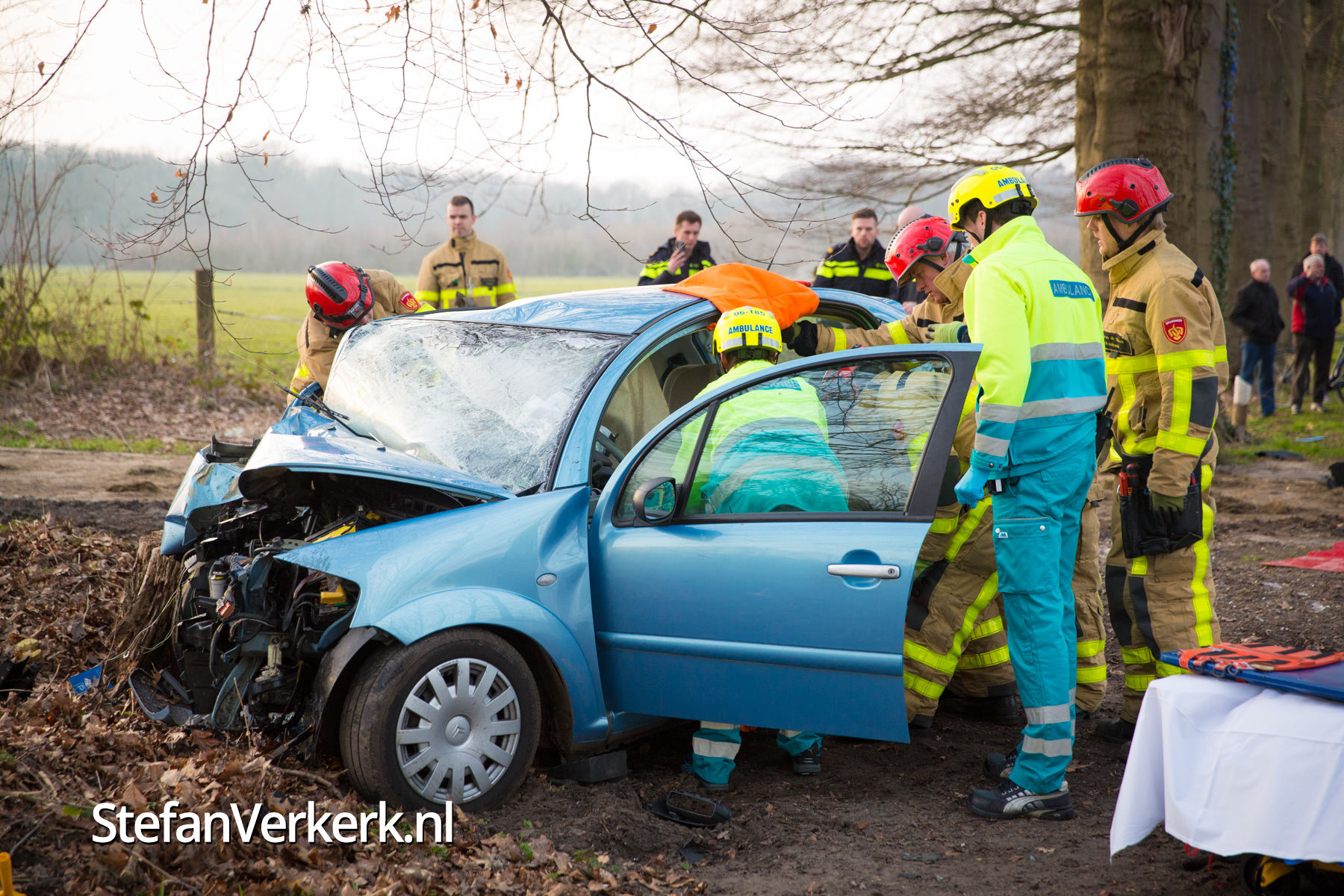 Foto's: Auto botst tegen boom bij ongeval Laanzichtsweg Oldebroek