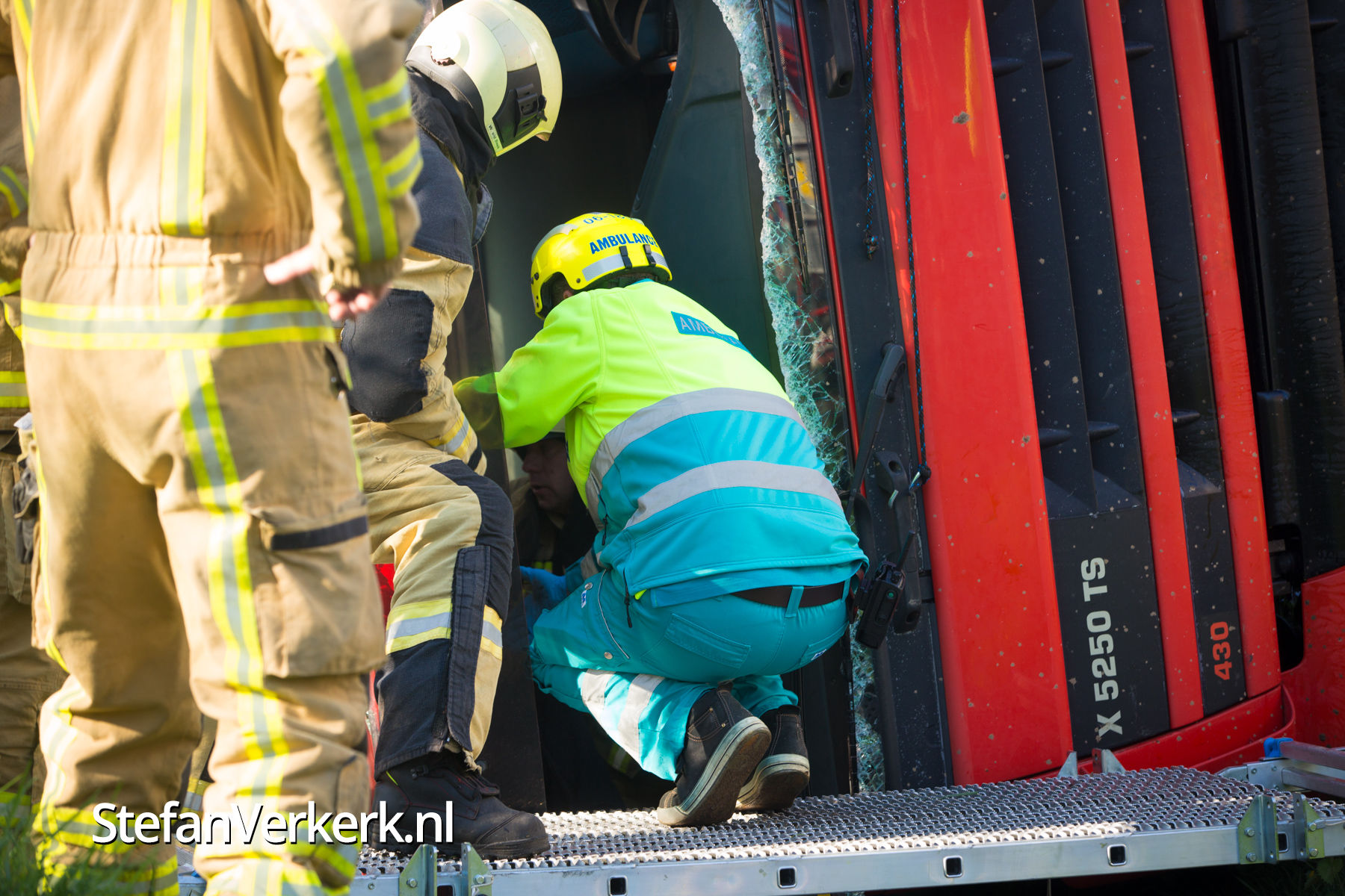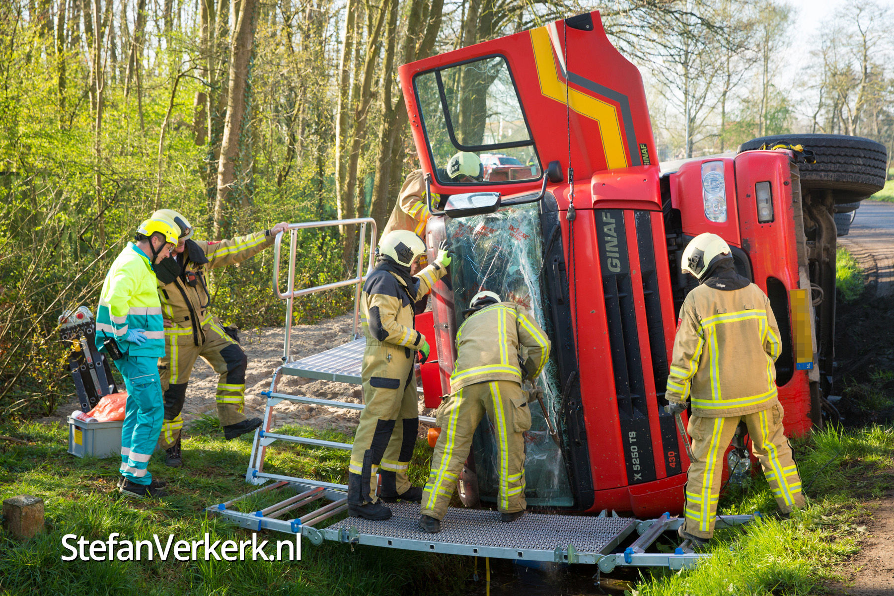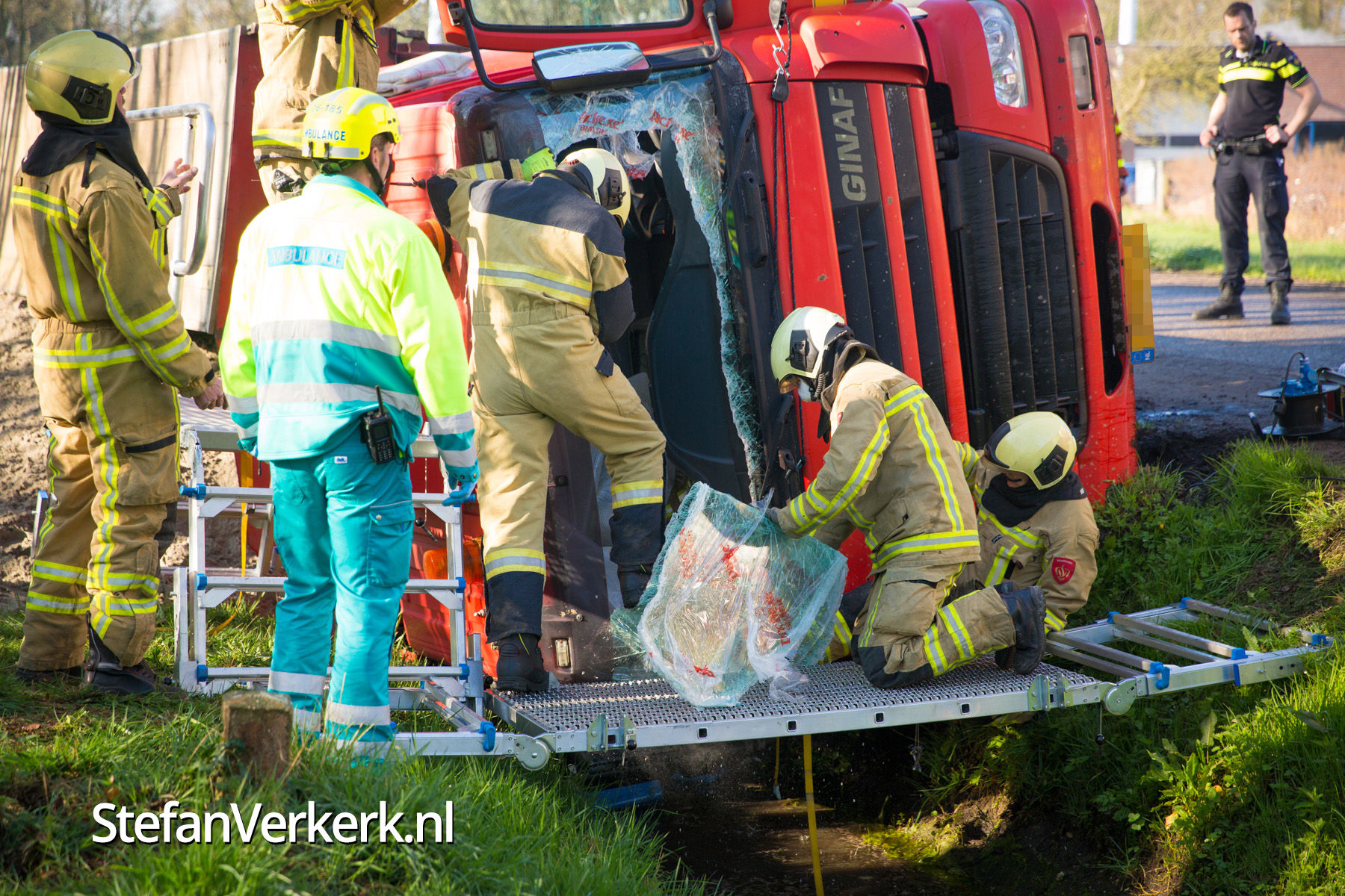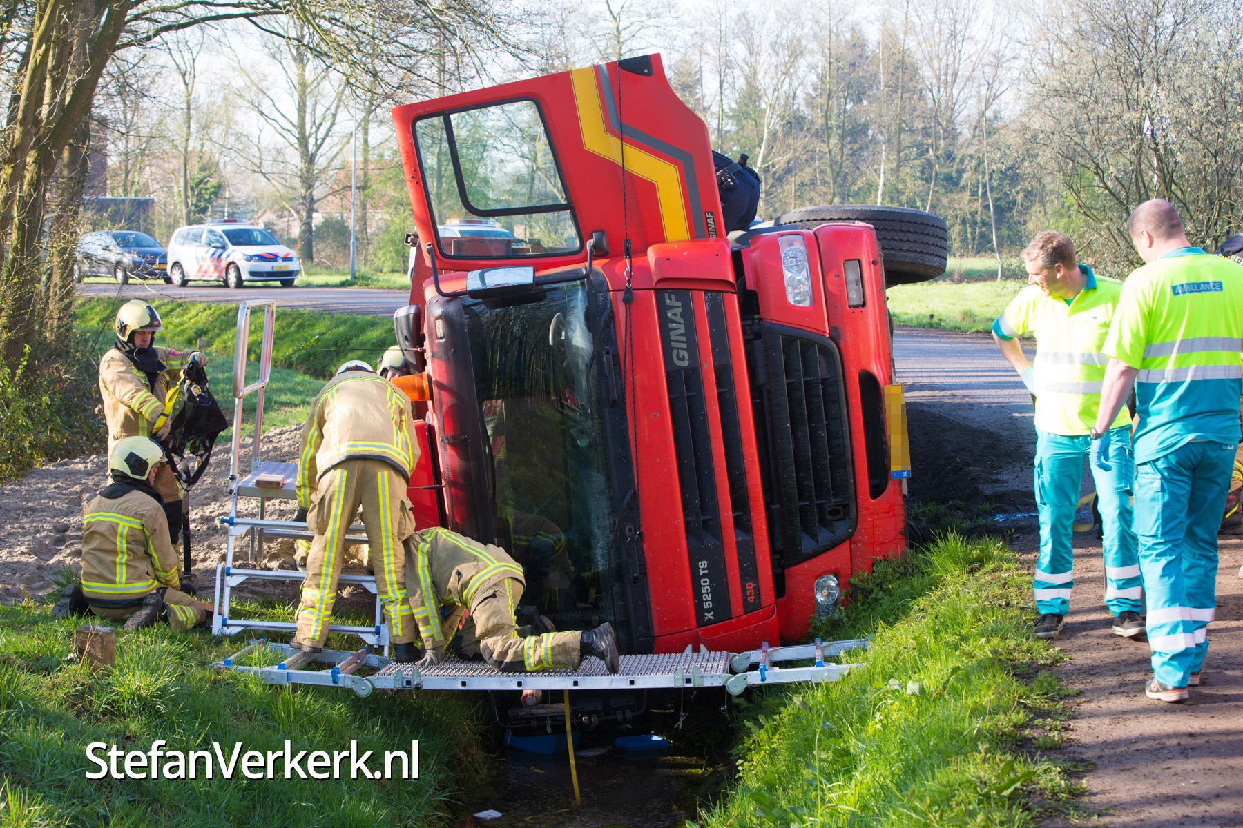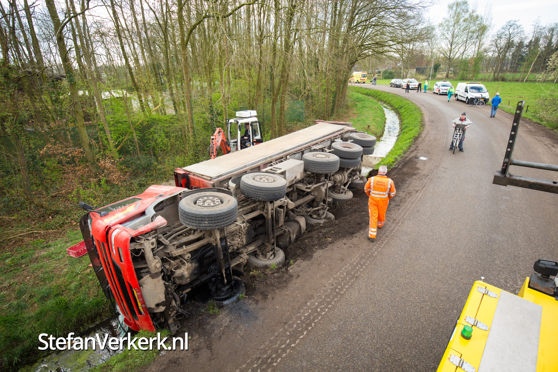 Foto's: Gekantelde vrachtwagen in sloot Zwarteweg Heerde
