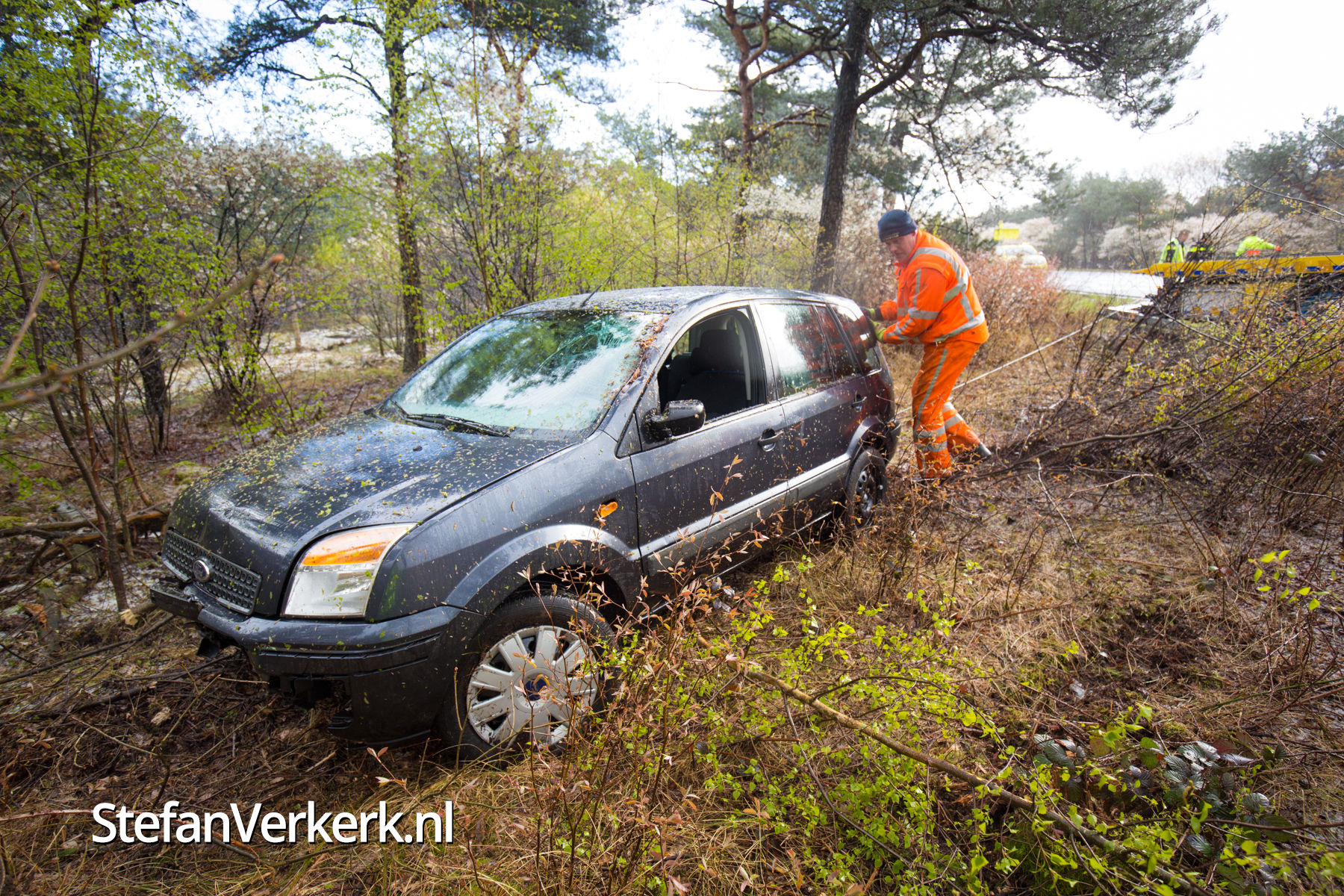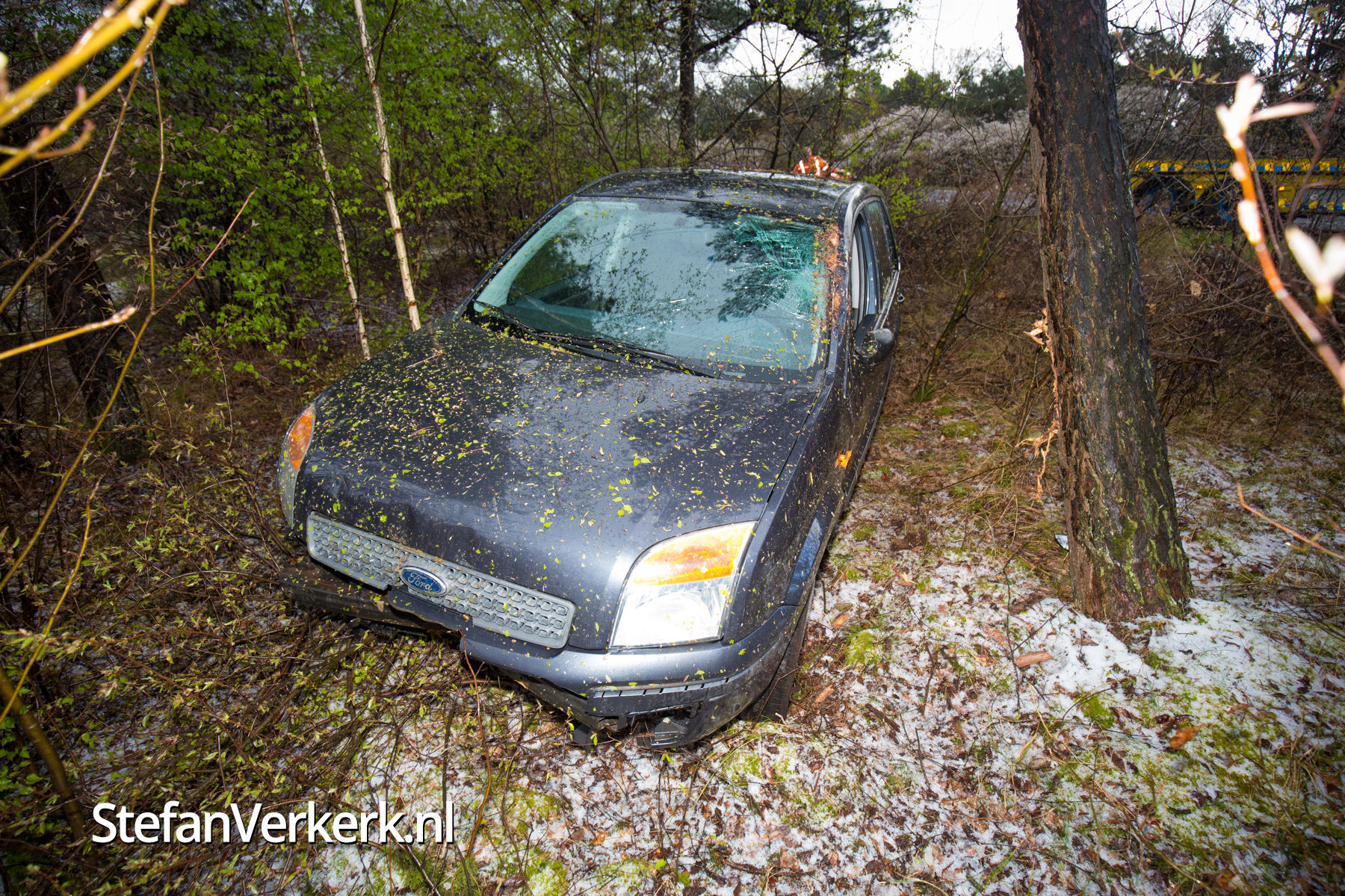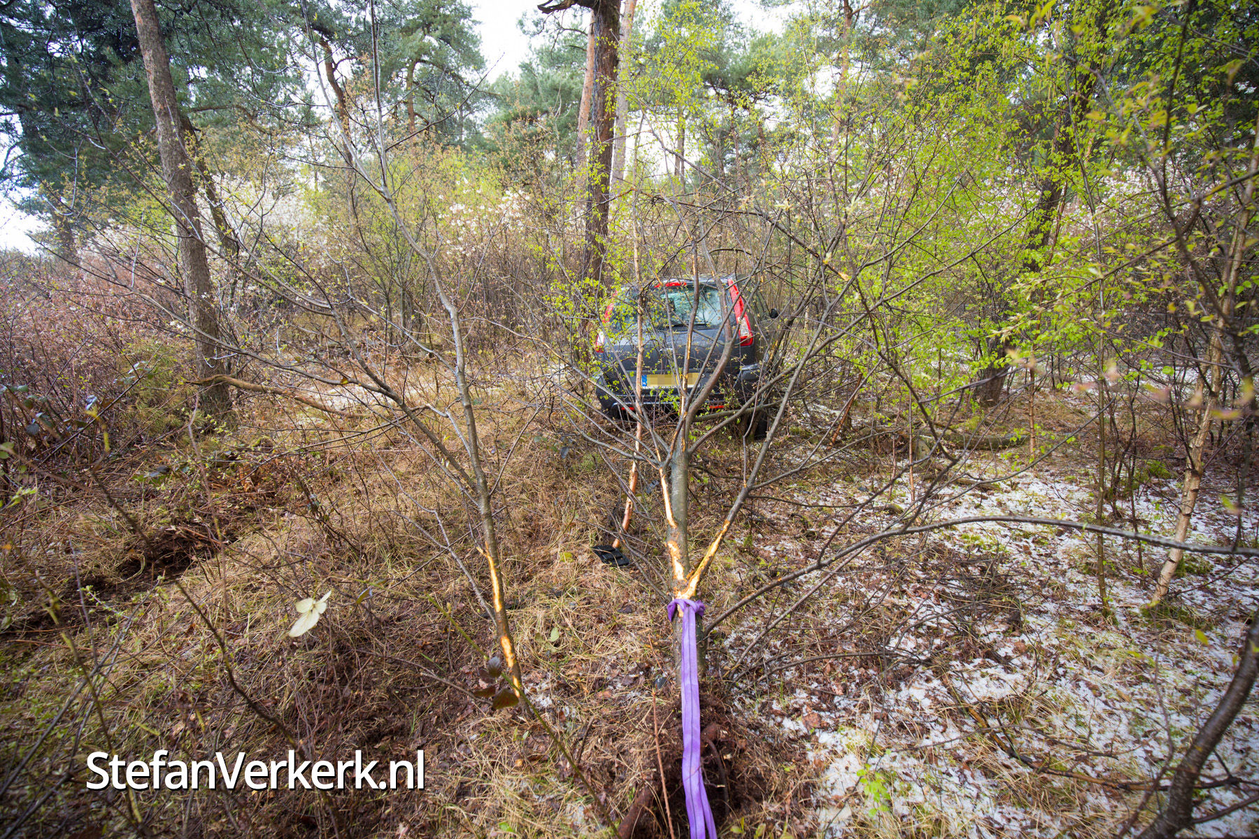 Auto tussen de bomen A50 L 233,7 thv Wapenveld