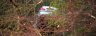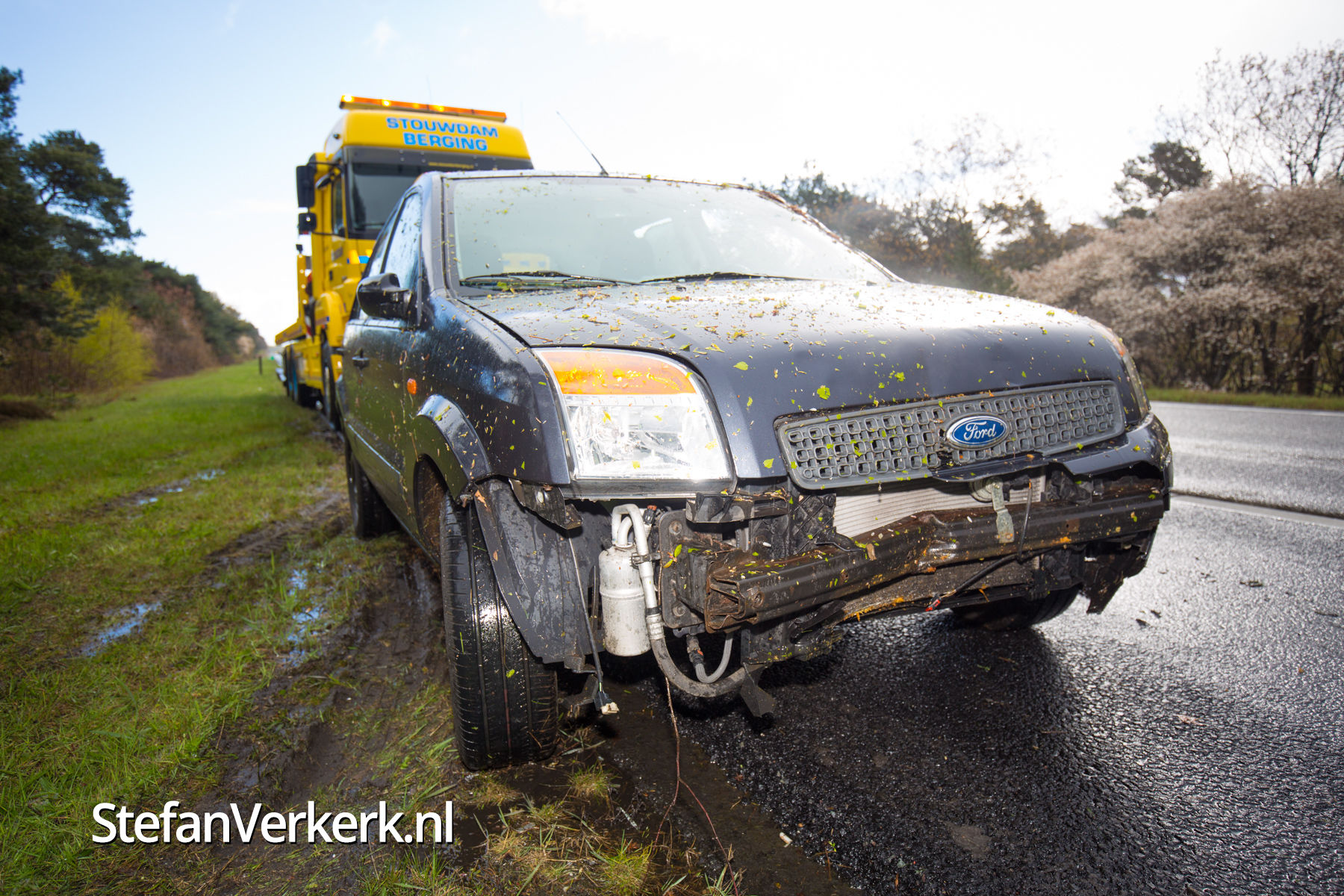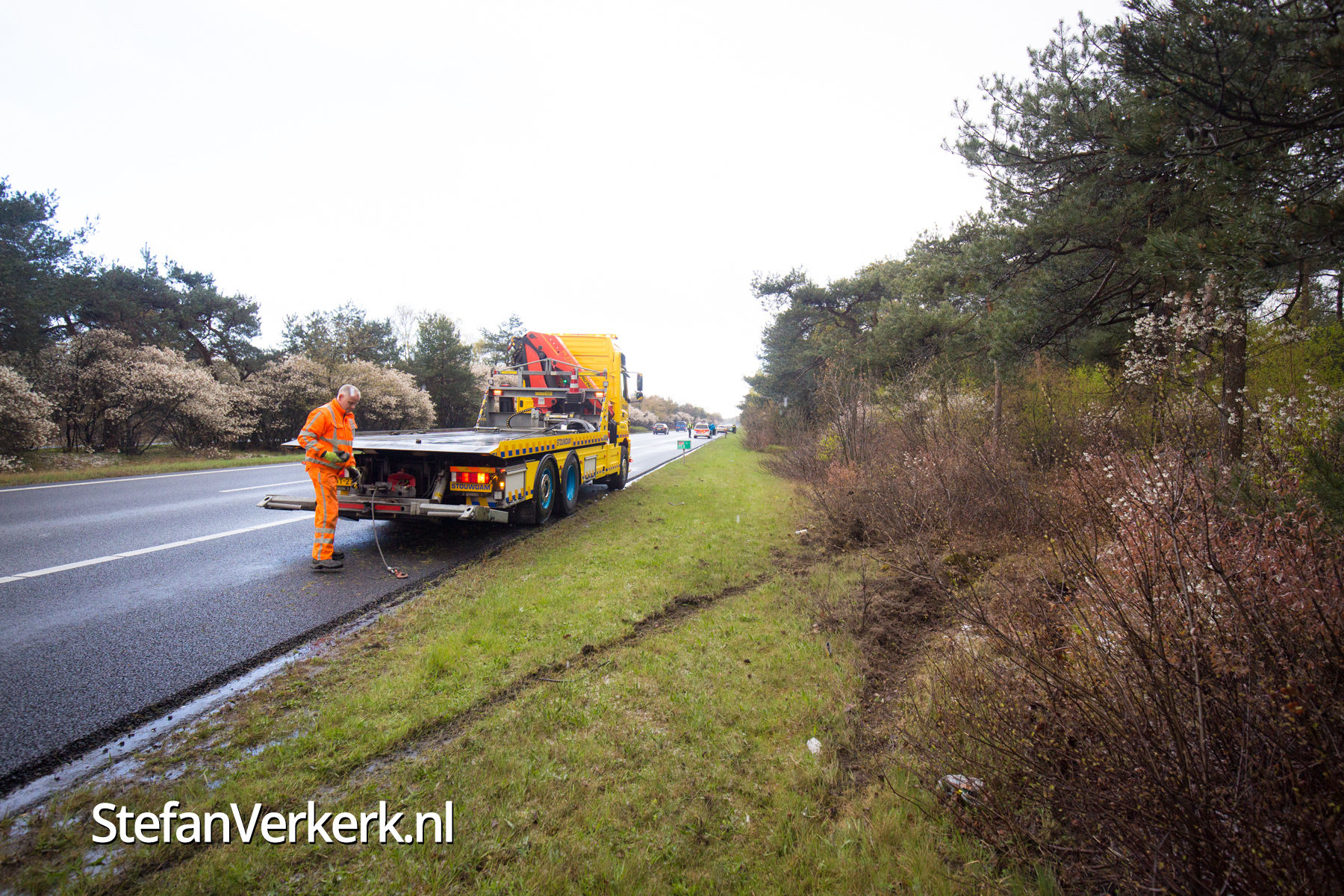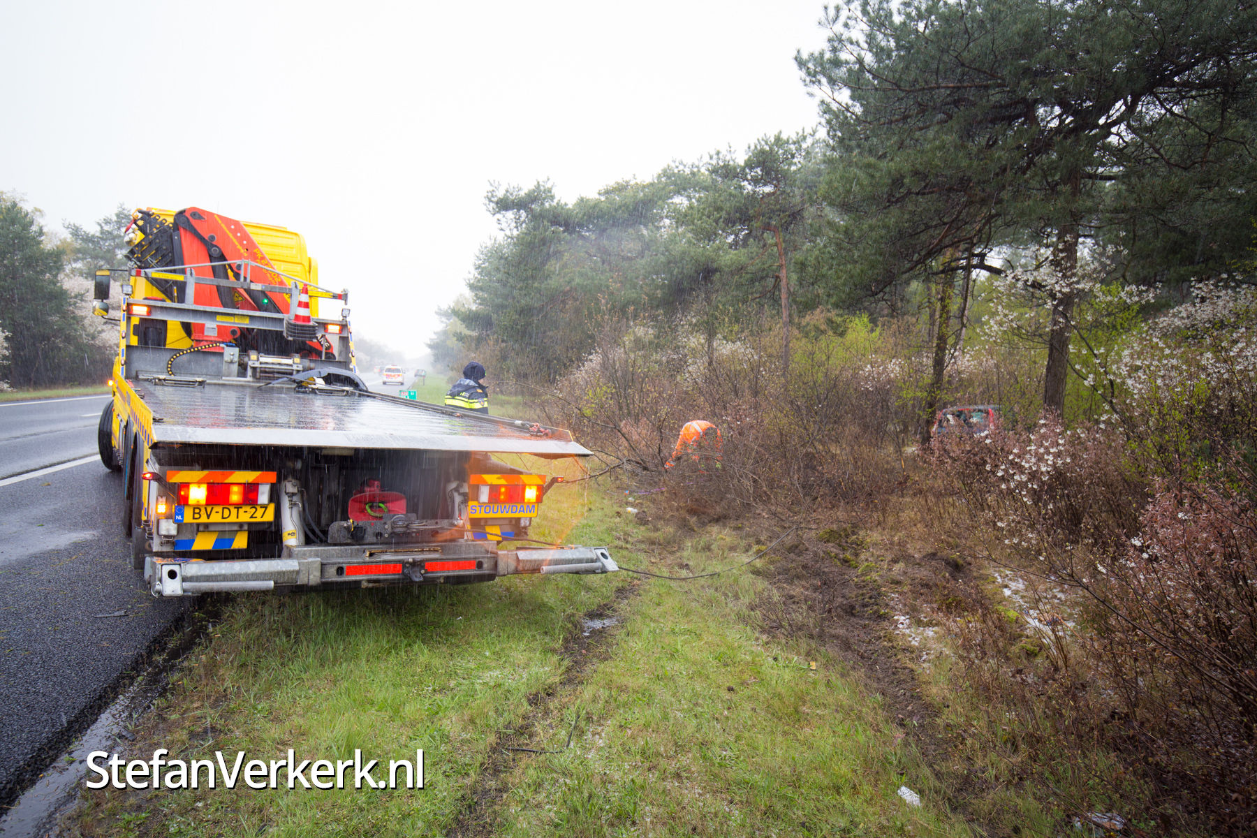 Auto tussen de bomen A50 L 233,7 thv Wapenveld