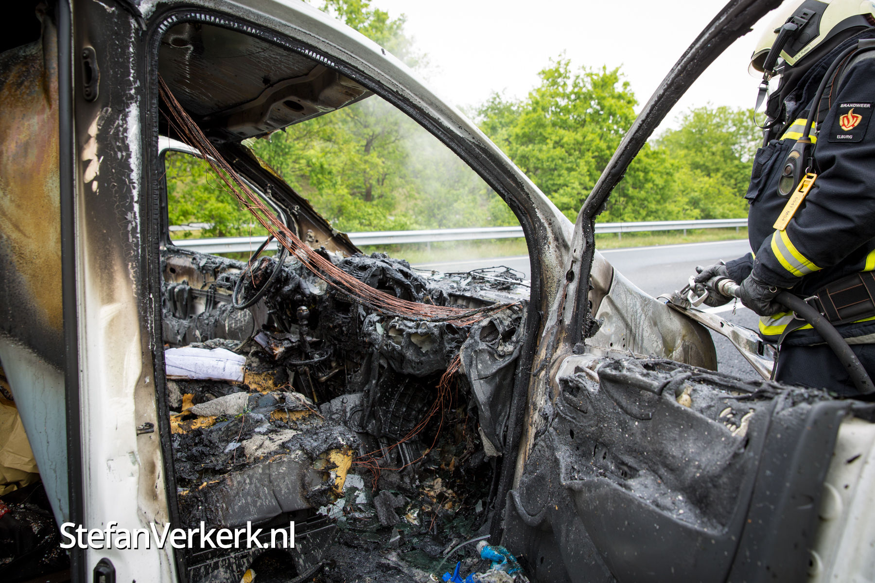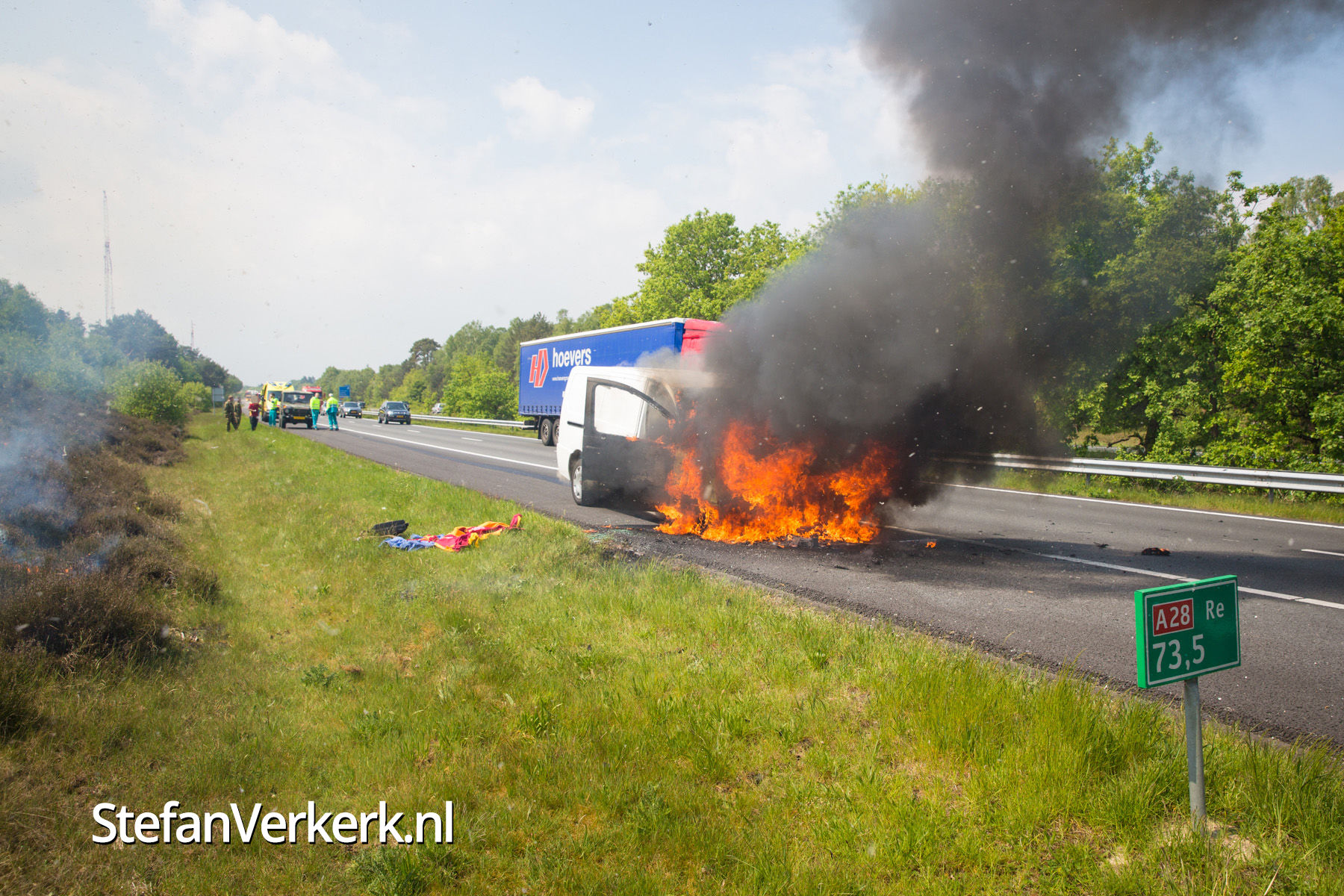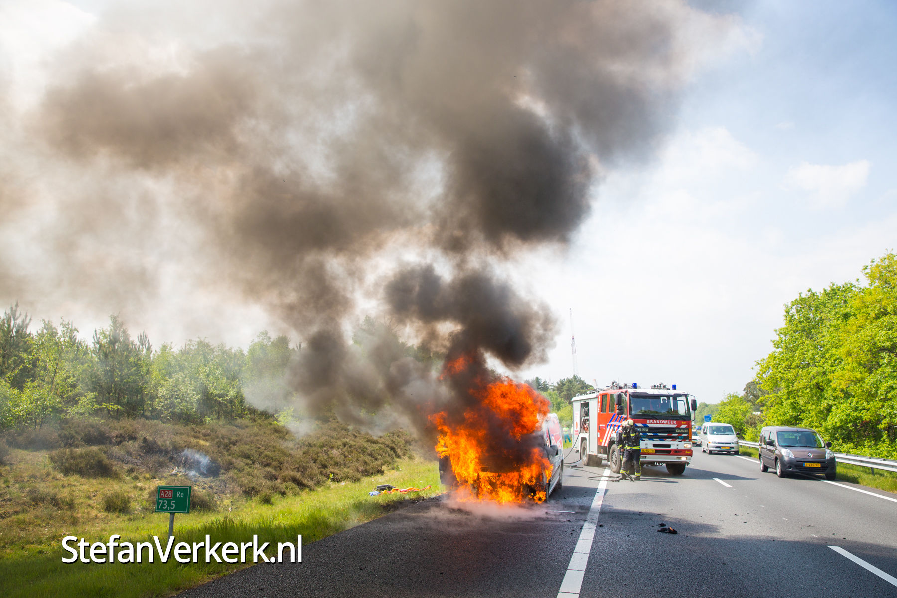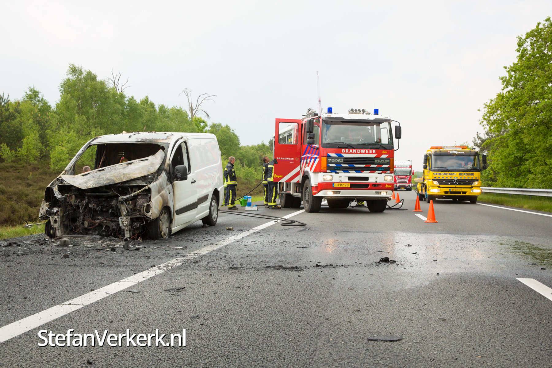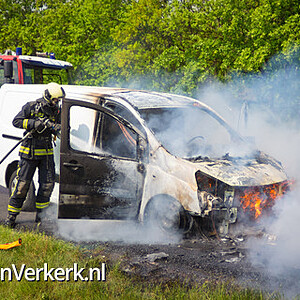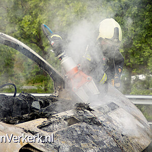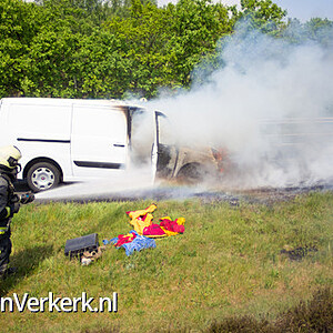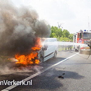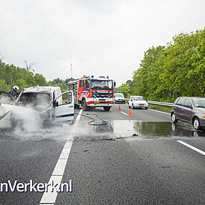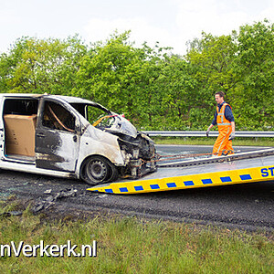 Foto's: Bestelbus uitgebrand op de A28 bij 't Harde