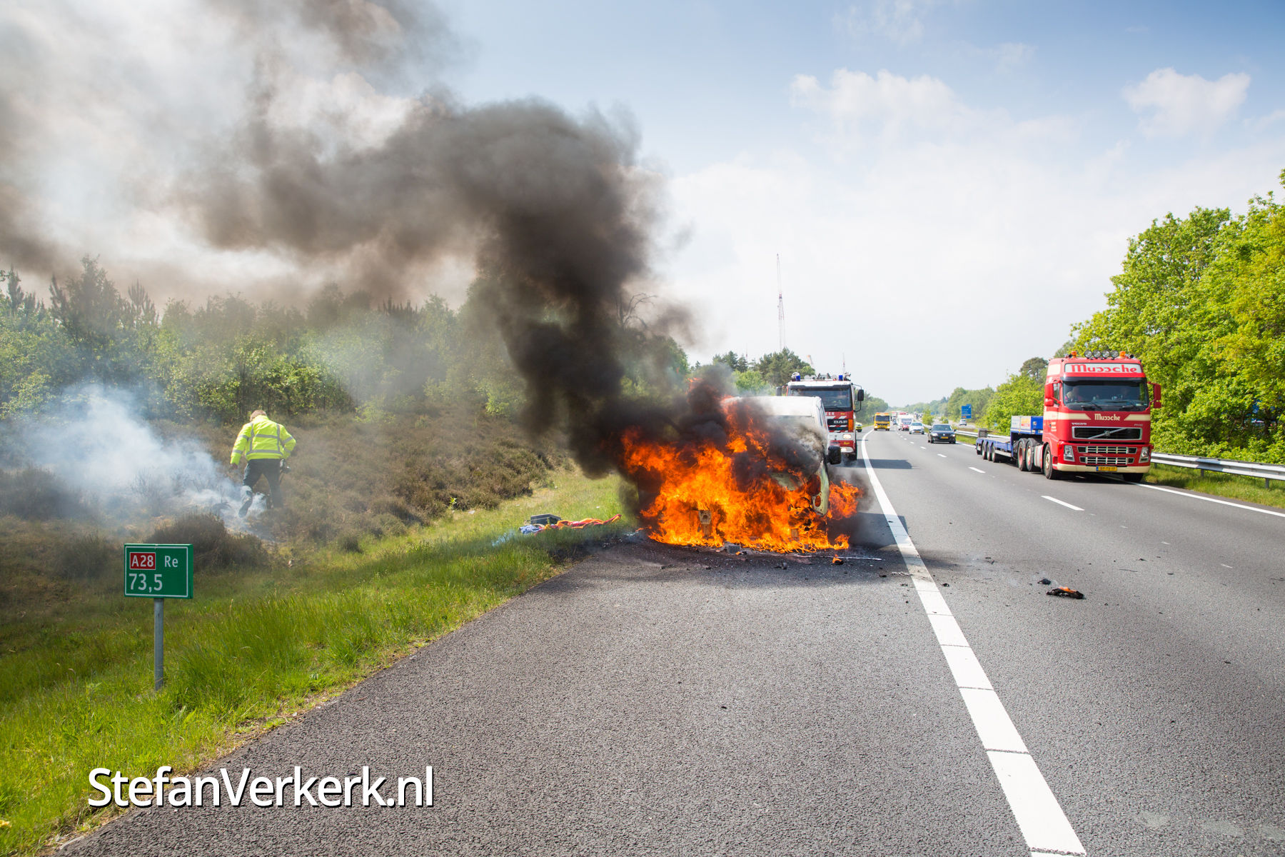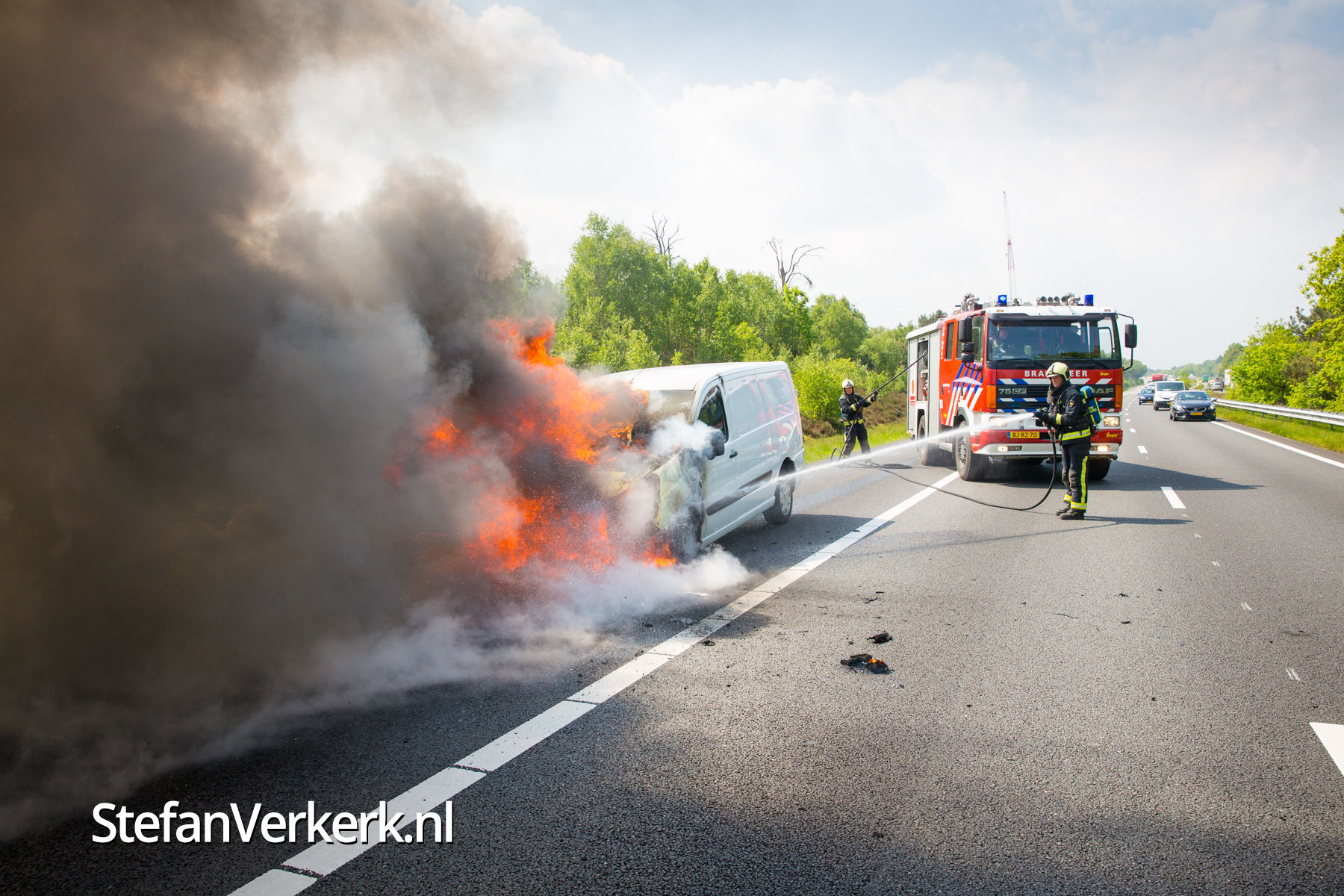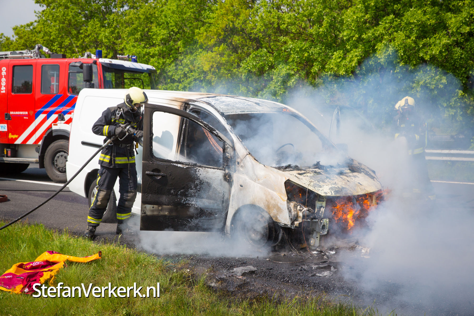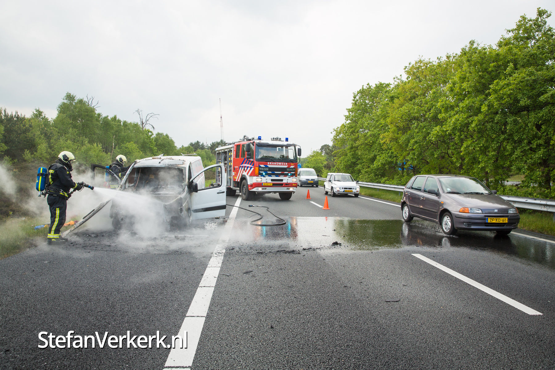 Foto's: Bestelbus uitgebrand op de A28 bij 't Harde