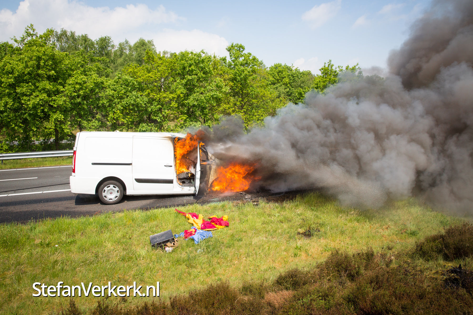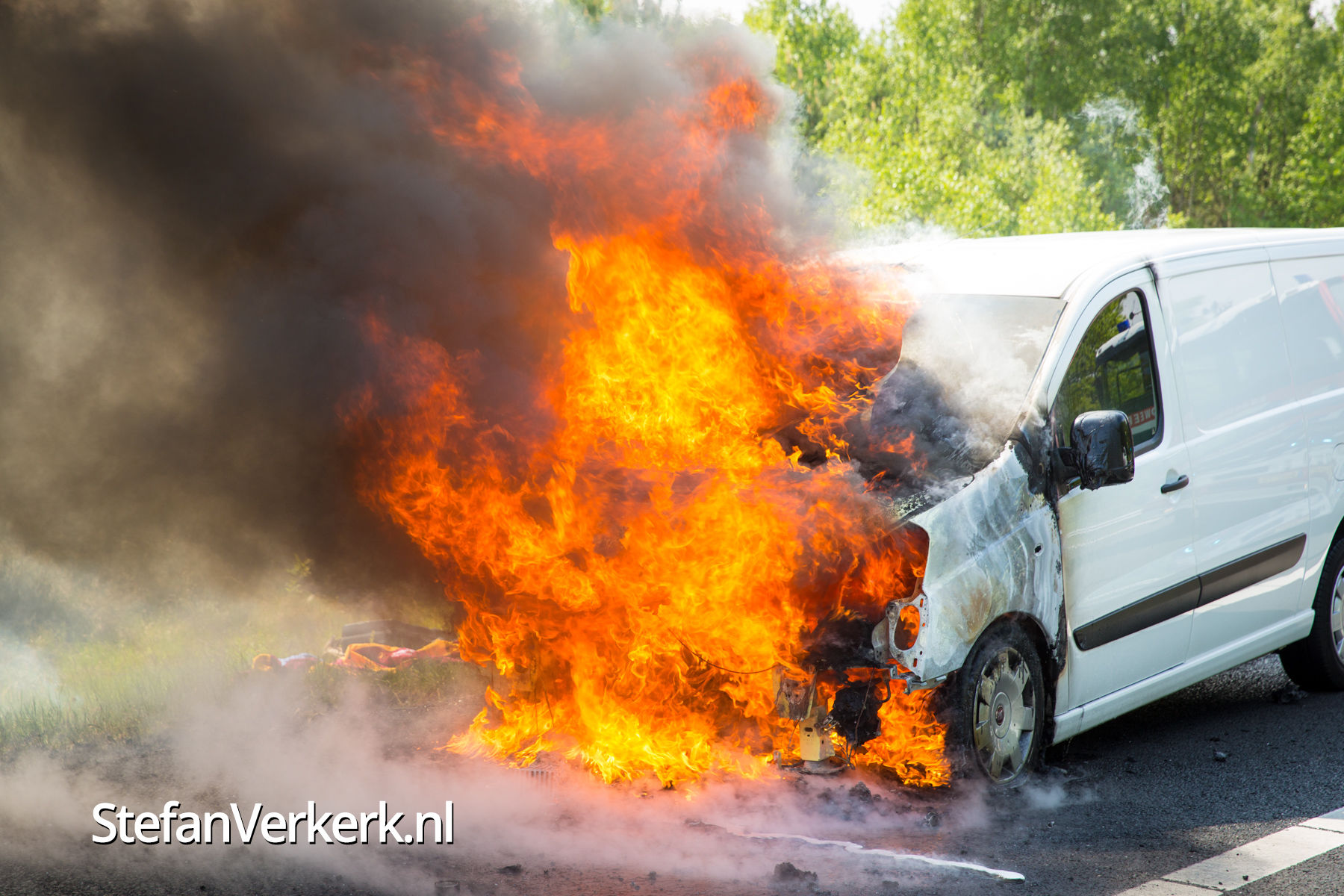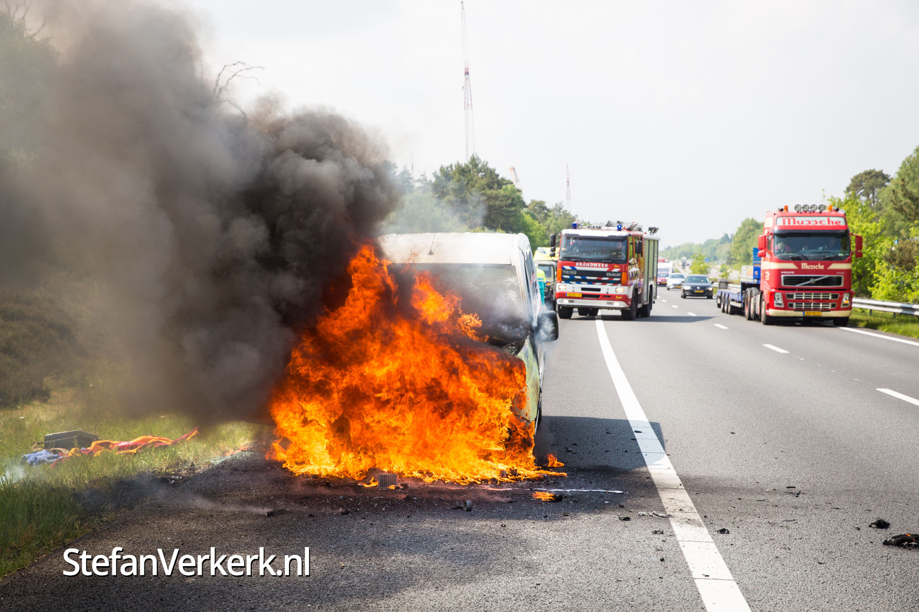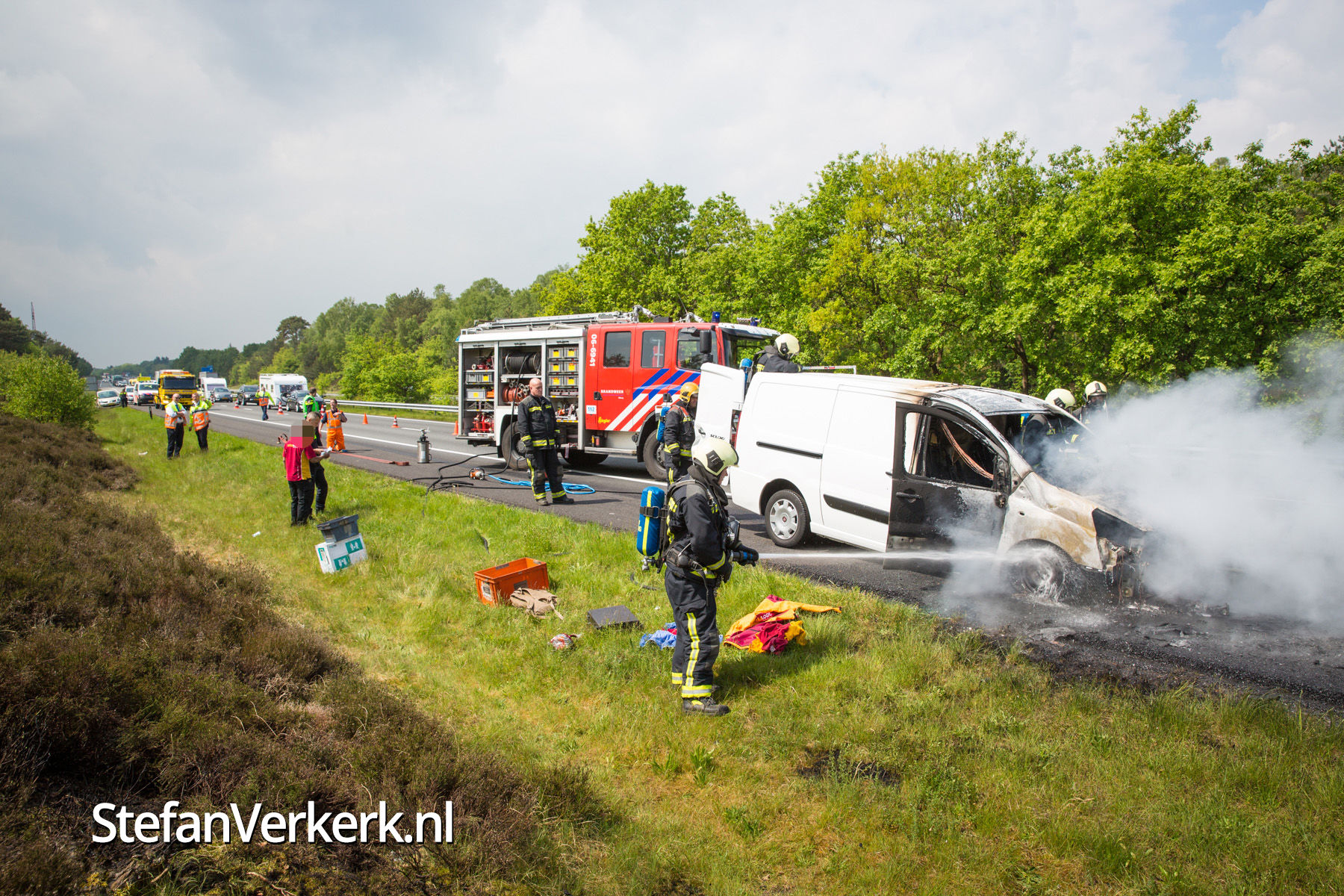 Foto's: Bestelbus uitgebrand op de A28 bij 't Harde