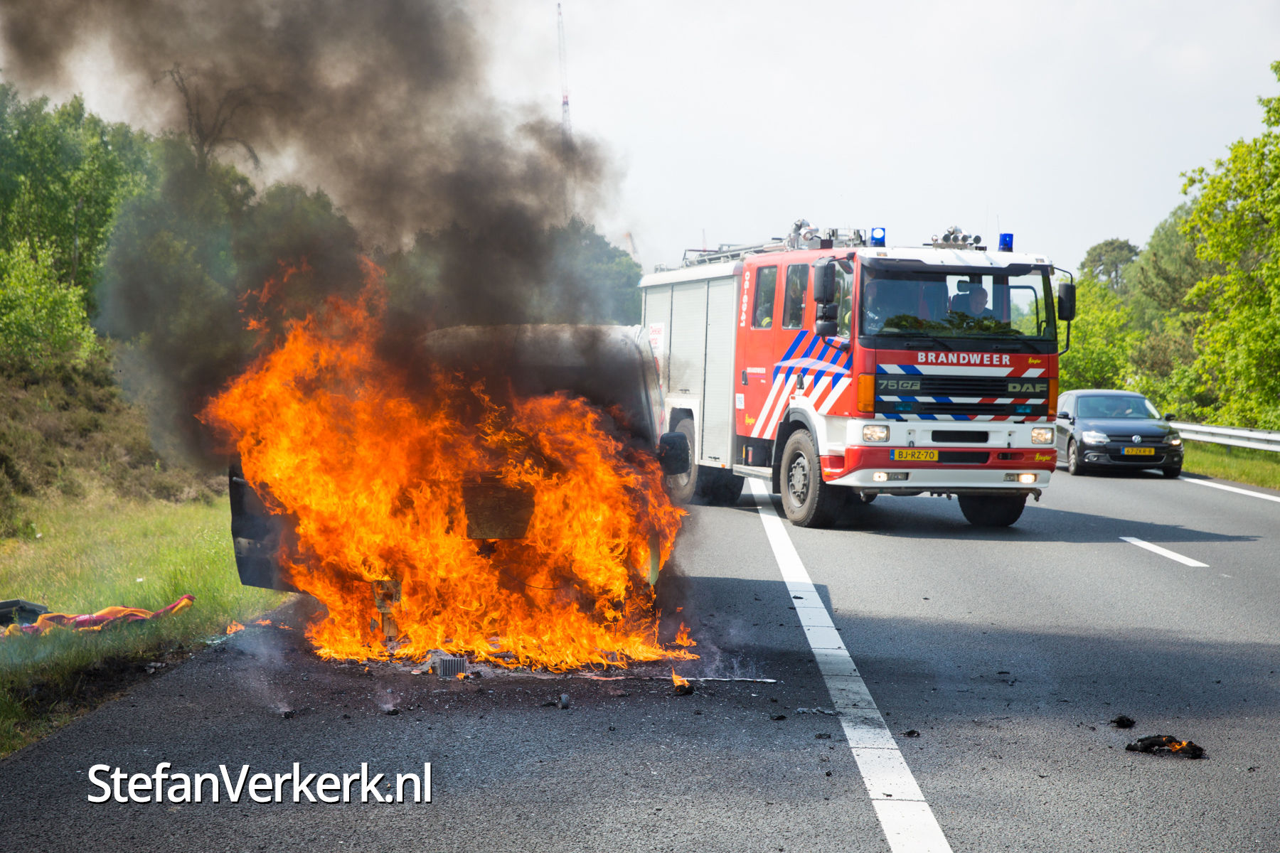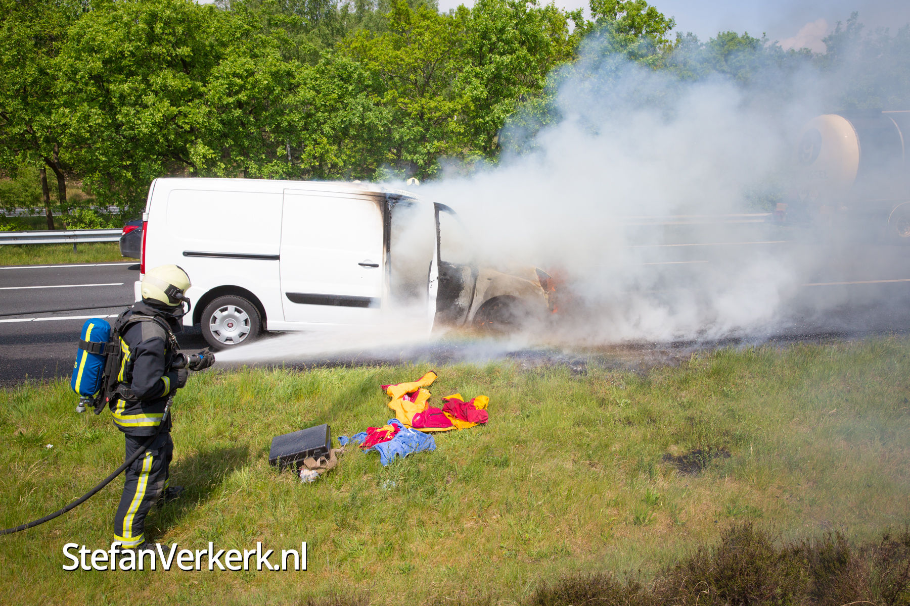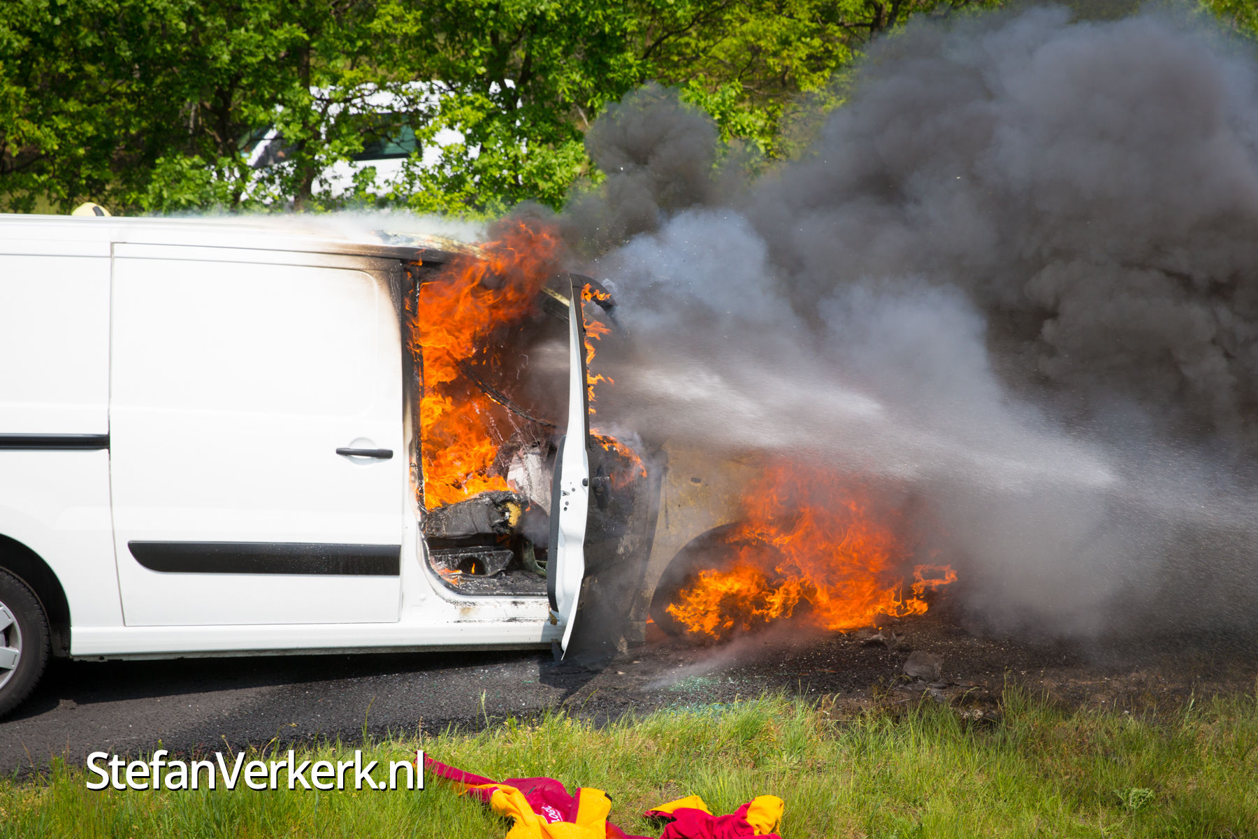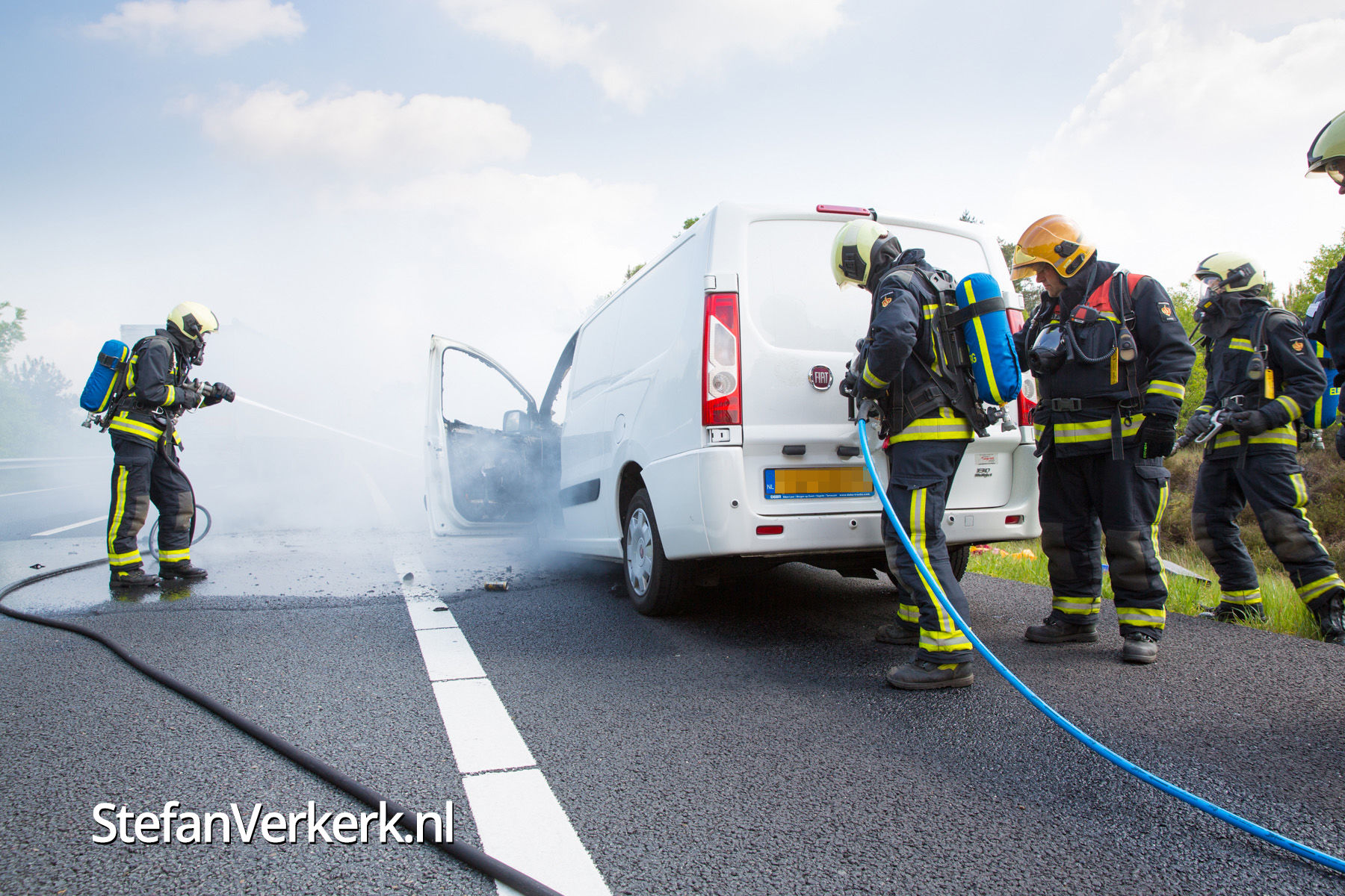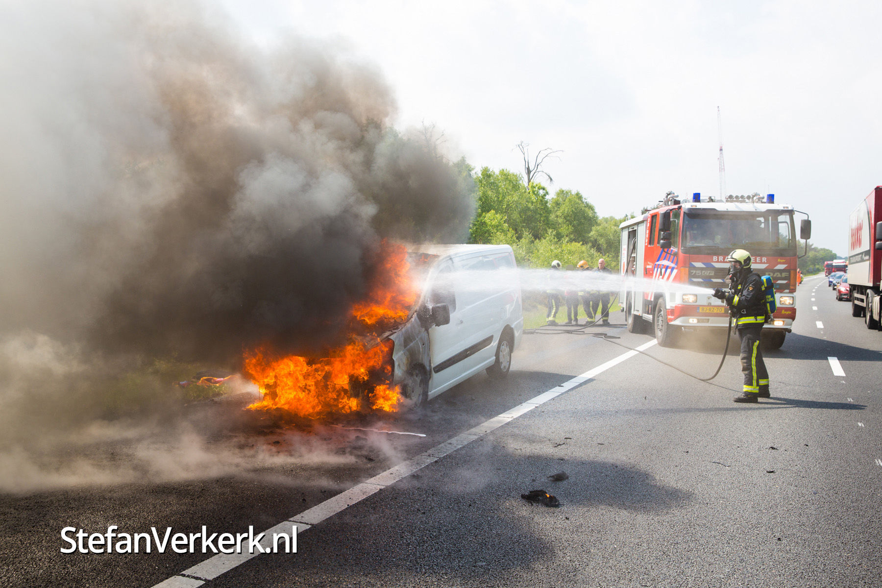 Foto's: Bestelbus uitgebrand op de A28 bij 't Harde