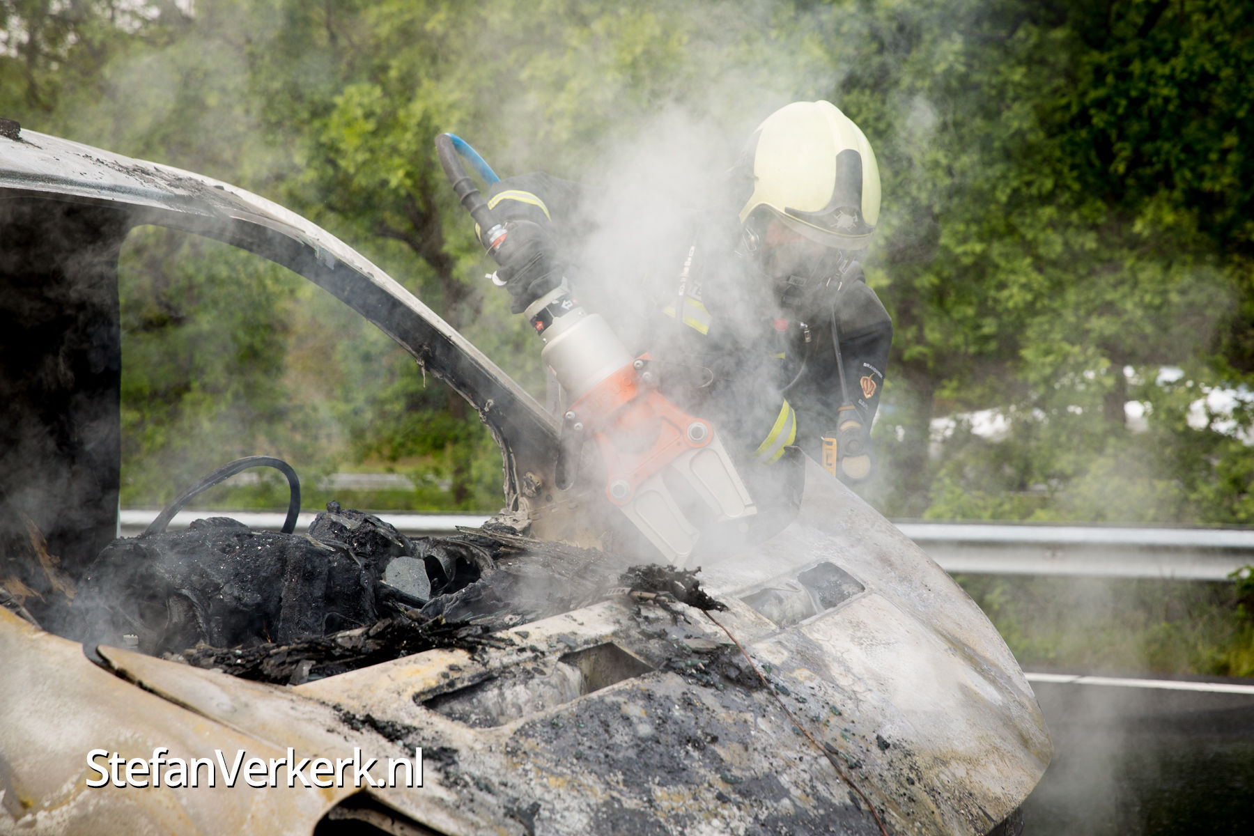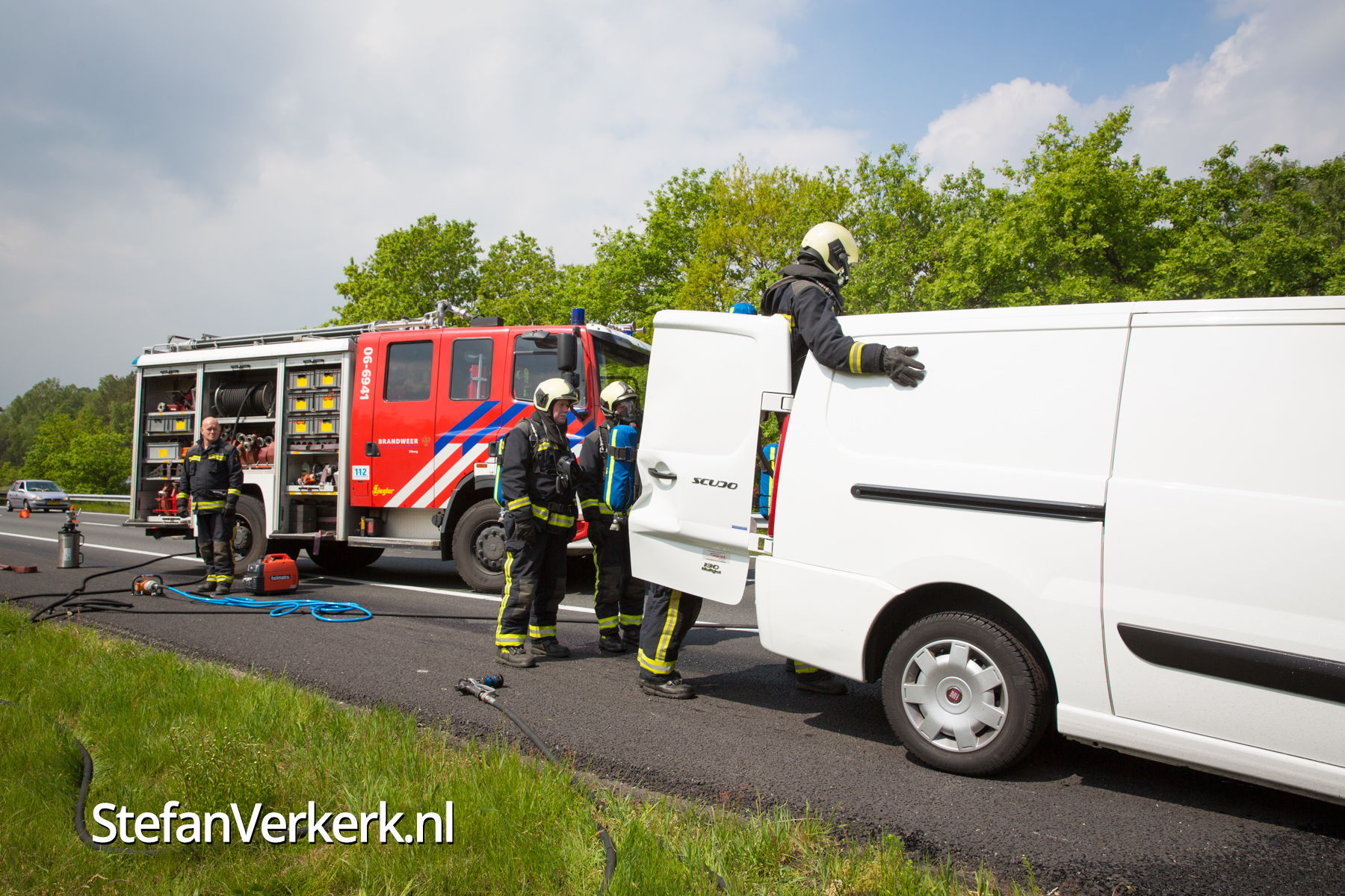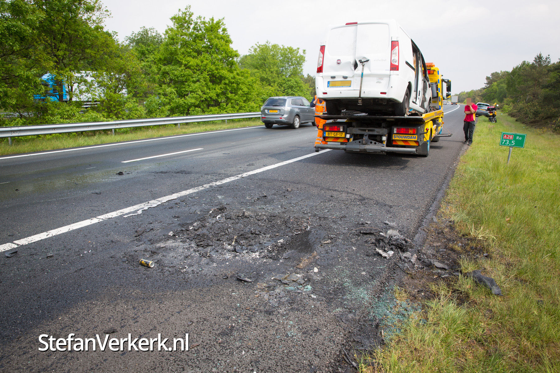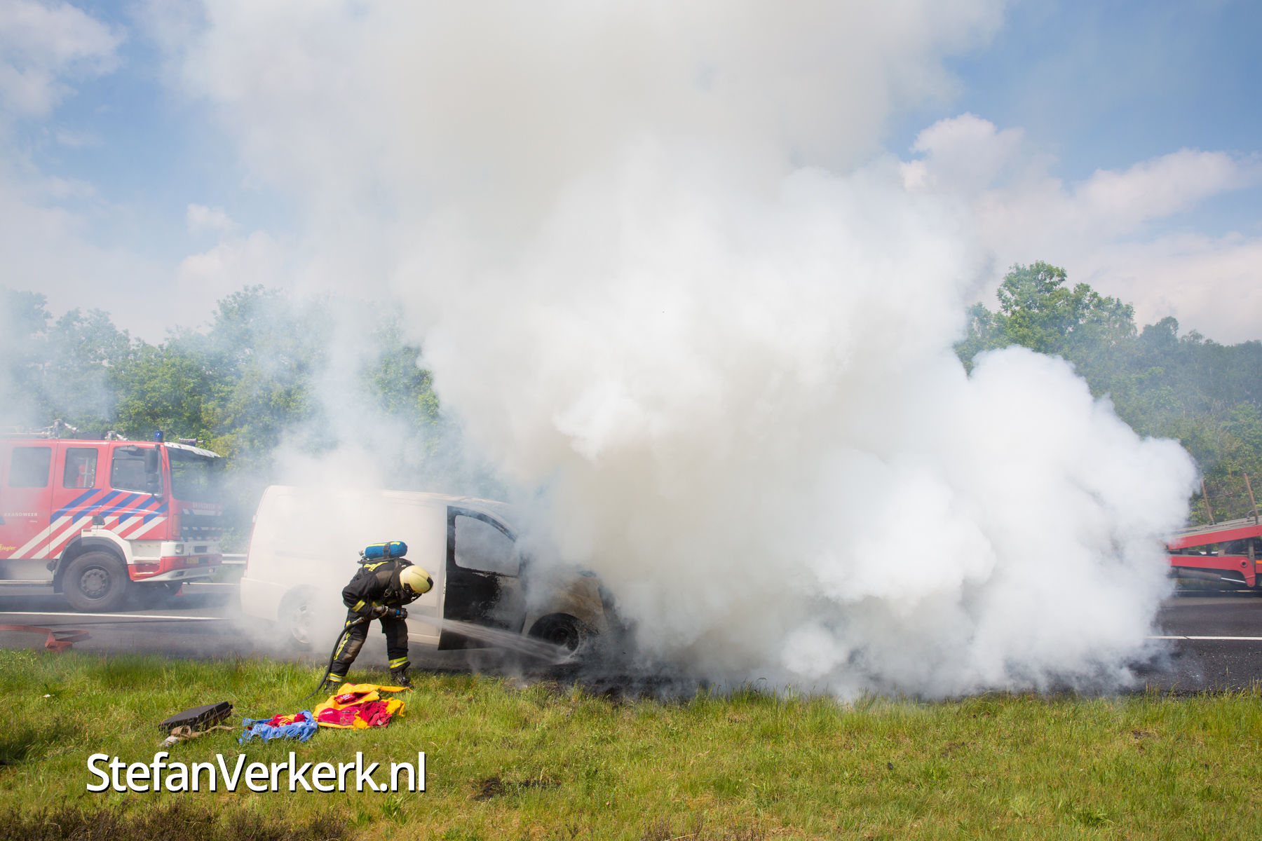 Foto's: Bestelbus uitgebrand op de A28 bij 't Harde