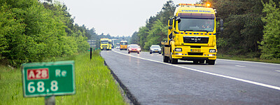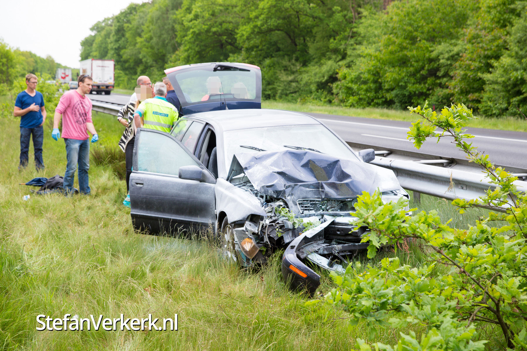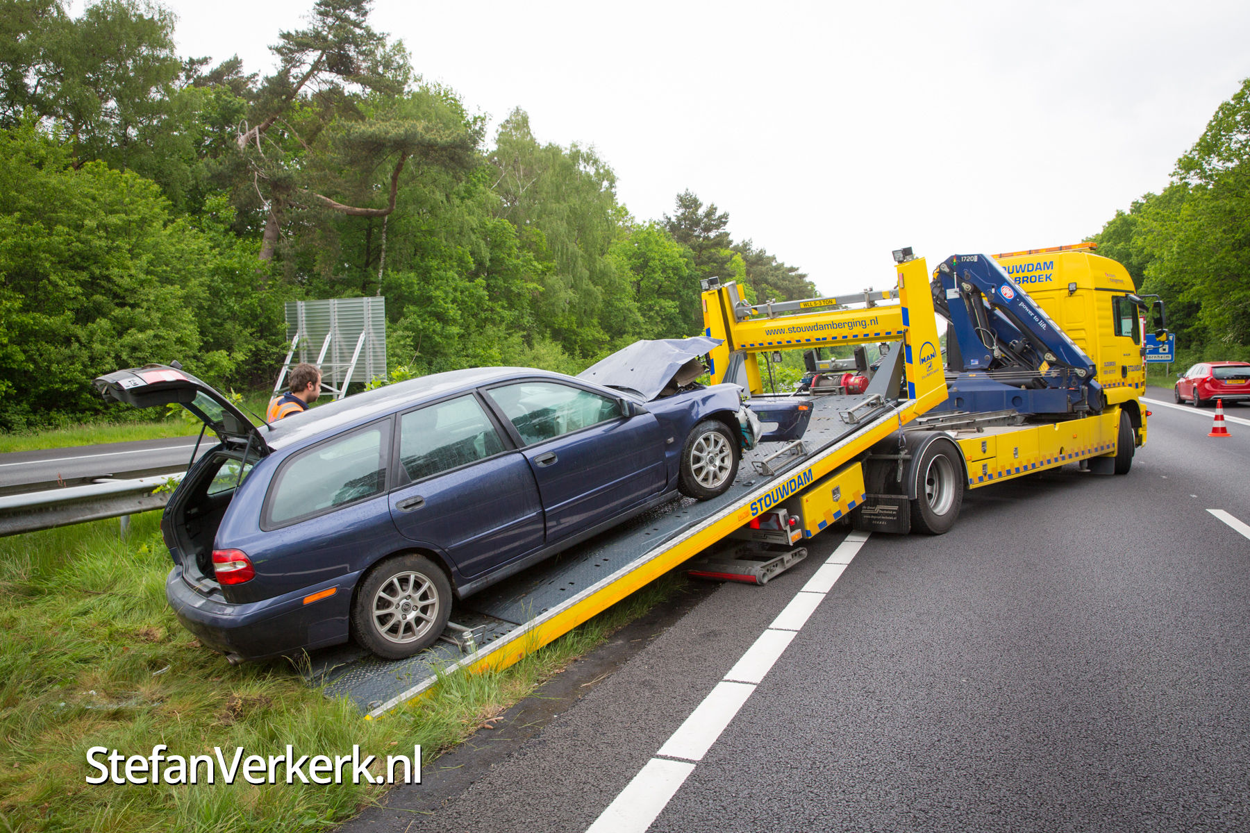 Auto uit berm getakeld met telescoopkraan A28 R 68,8 't Harde