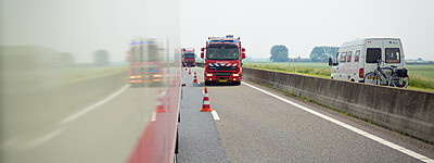 Vrachtwagen met vastgelopen remmen N50 L 245,7 Kamperveen